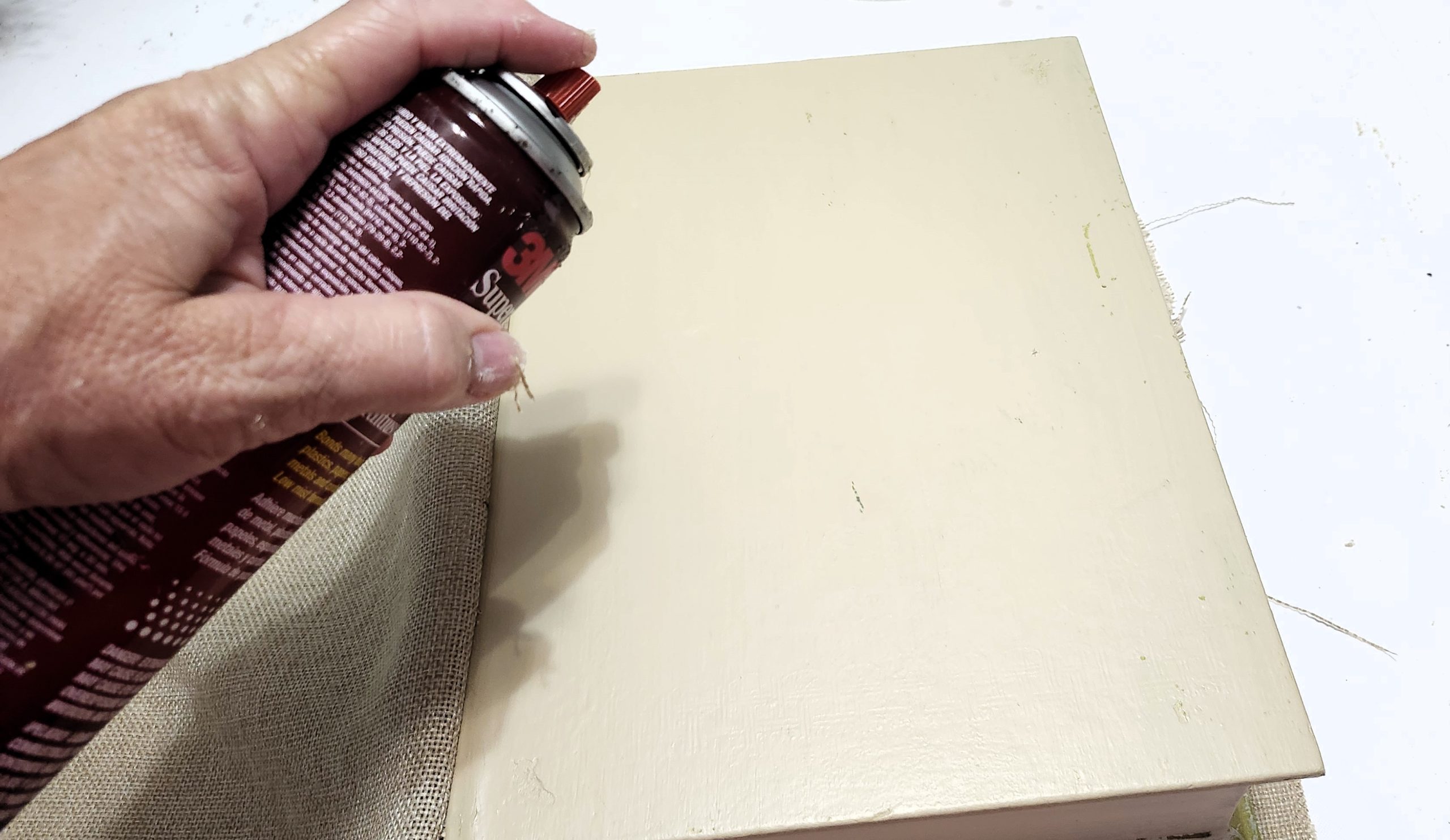 Next, I did each side of the cover. Sprayed the adhesive, let sit and apply material.