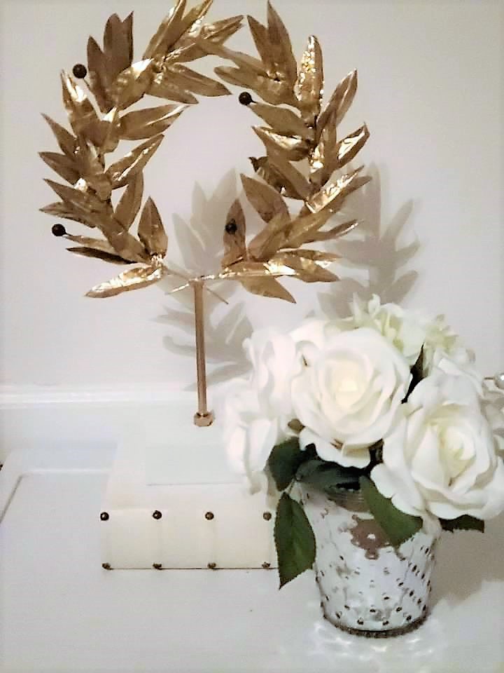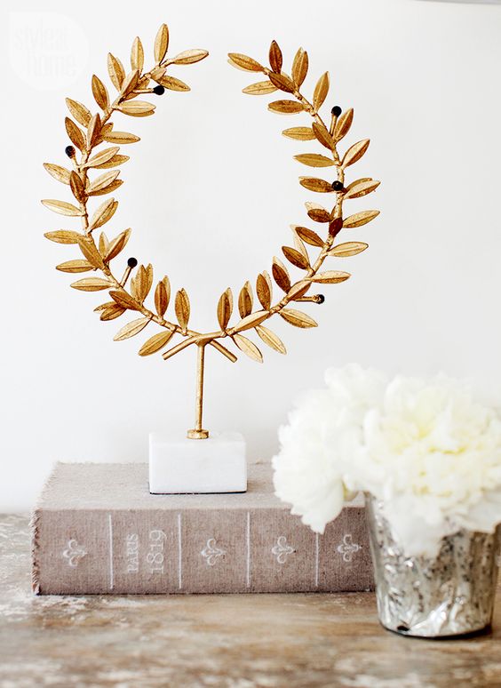 I have a plan for this wreath in my craft room. The symbol of the Kotinos Wreath is victory. After getting my craft room completed it will be a victory for me. ha! Since I wouldn’t dare pay that much for the piece I will make it. I would be happy with a knock off just as well. So here is how I am going to make my Kotinos wreath.