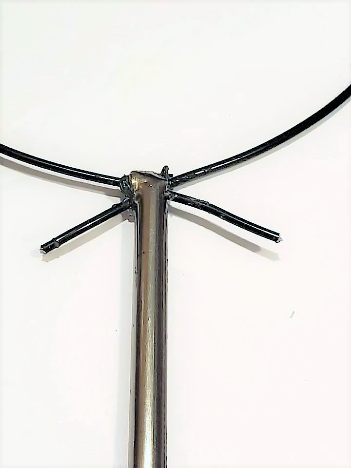 I placed some E6000 into the notch and slipped the wreath into the notch. I bent down the top of the antenna to form a closure. Genius…. 🙂