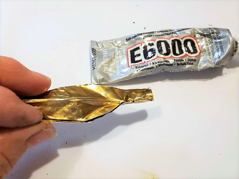 So let’s break it down. I purchased a package of foil baking sheets for a $1.00, I had the piece of wood, piece of radio antenna, gold spray paint, hot glue, E6000 and the bolt. Pretty good. The inspirational piece is $325.00. I can handle mine not being an authentic piece.