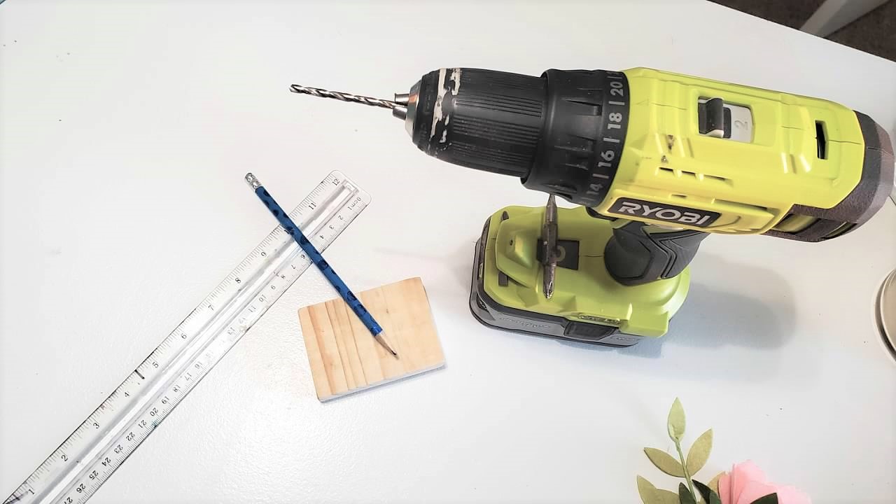 I saved all of the baby shower flowers with the same colors as the birthday party.  I grabbed a couple along with a wood piece cut at 2½” x ½” x 3½”.