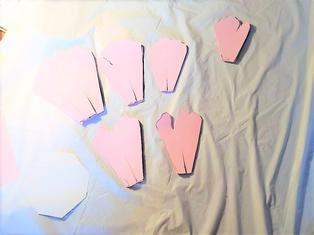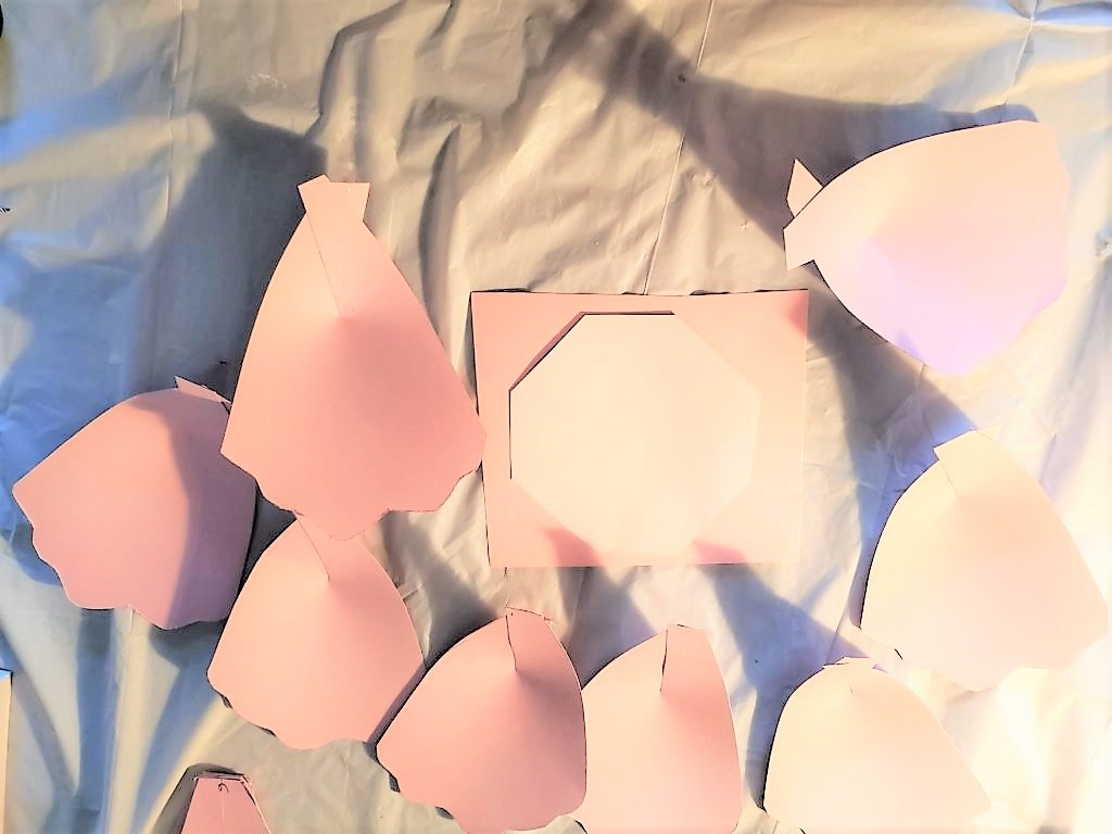 Taking the 8 petals of pattern #1 and glue down to each side of the octagon.