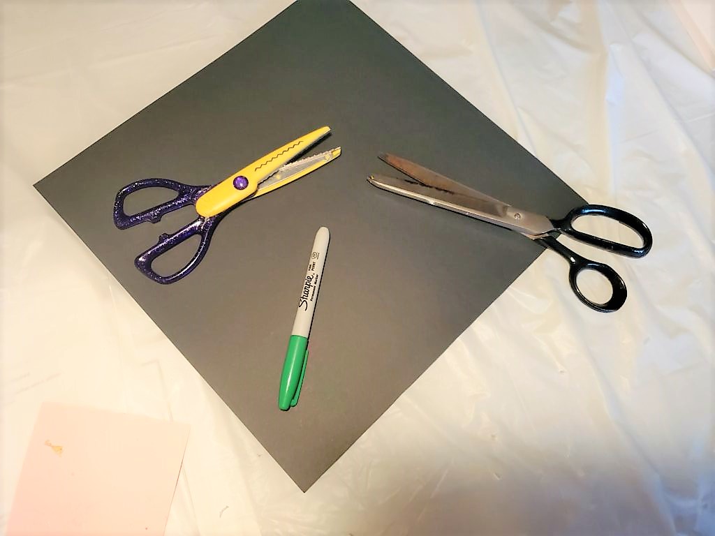 - Taking one 12×12 evergreen scrapbook paper, a pair of scissors, pen or pencil and a zigzag pair of scissors.