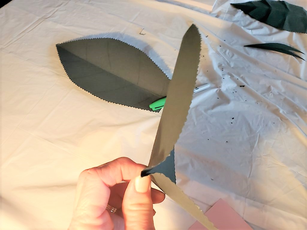 To get your leaf to have the indentations, we will be folding the lines we just made. This is how I did my leaf. I folded from the center of the leaf to the edge. I did not fold down straight across.
