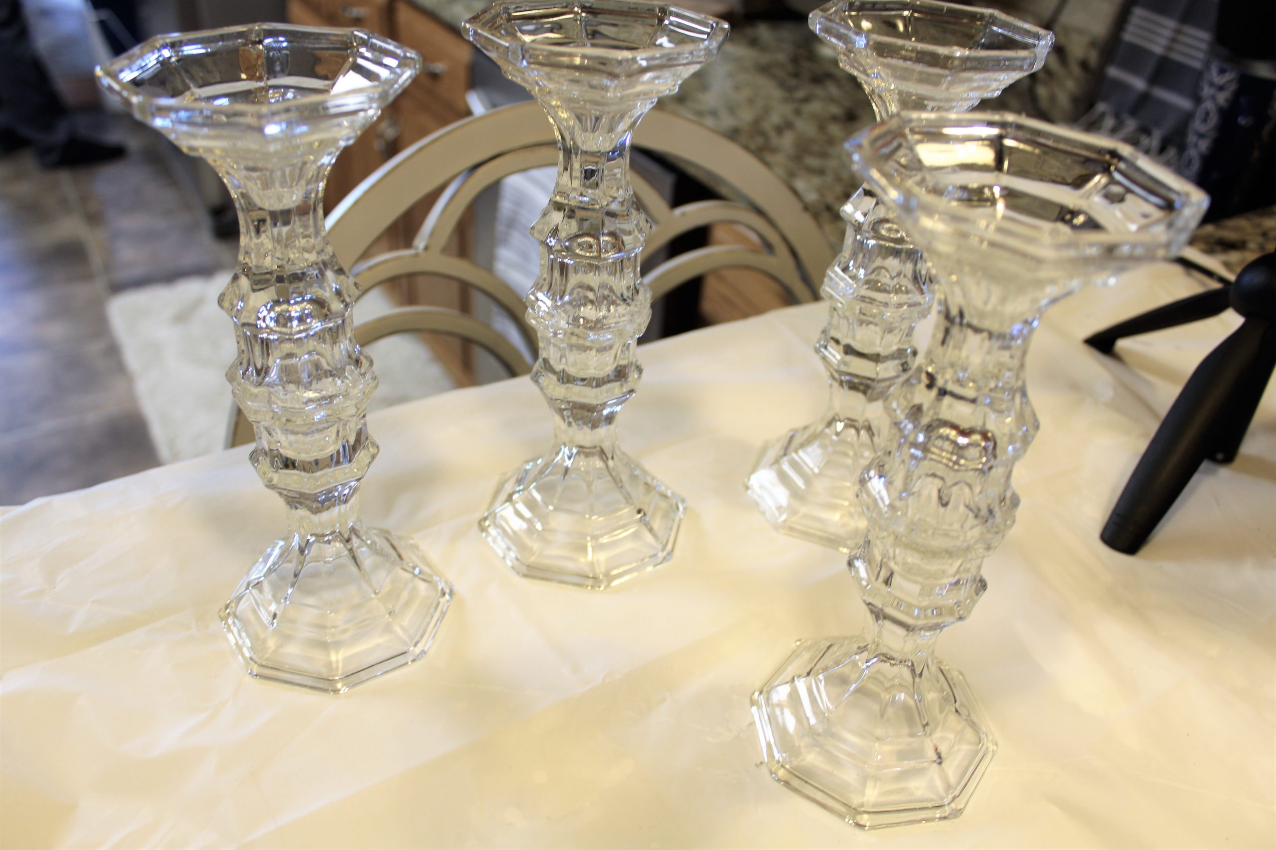 For each DIY candelabra it cost a little over $4. I will be working on a picture frame on a pedestal next, I am so excited to take you along while I make the shower decorations.