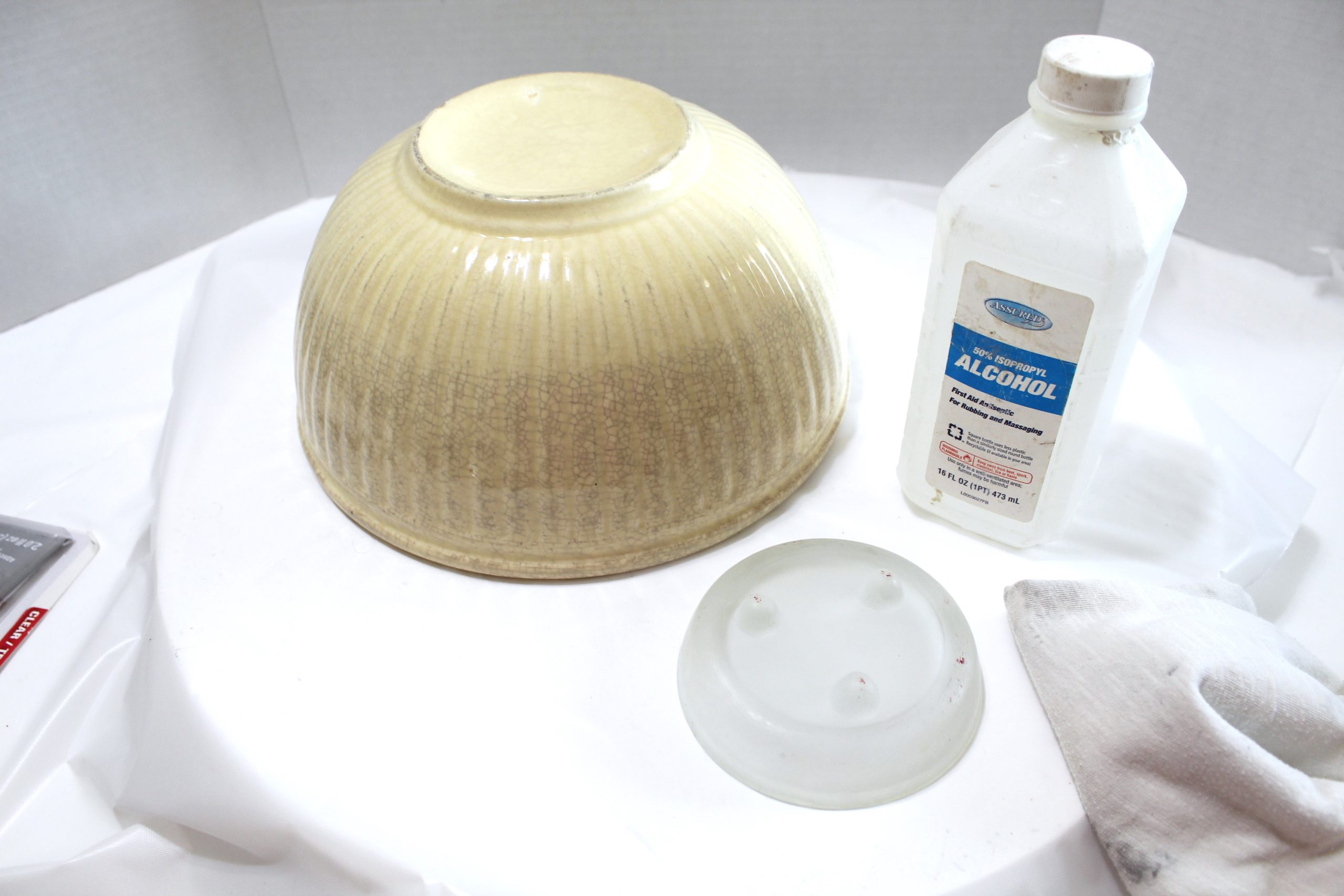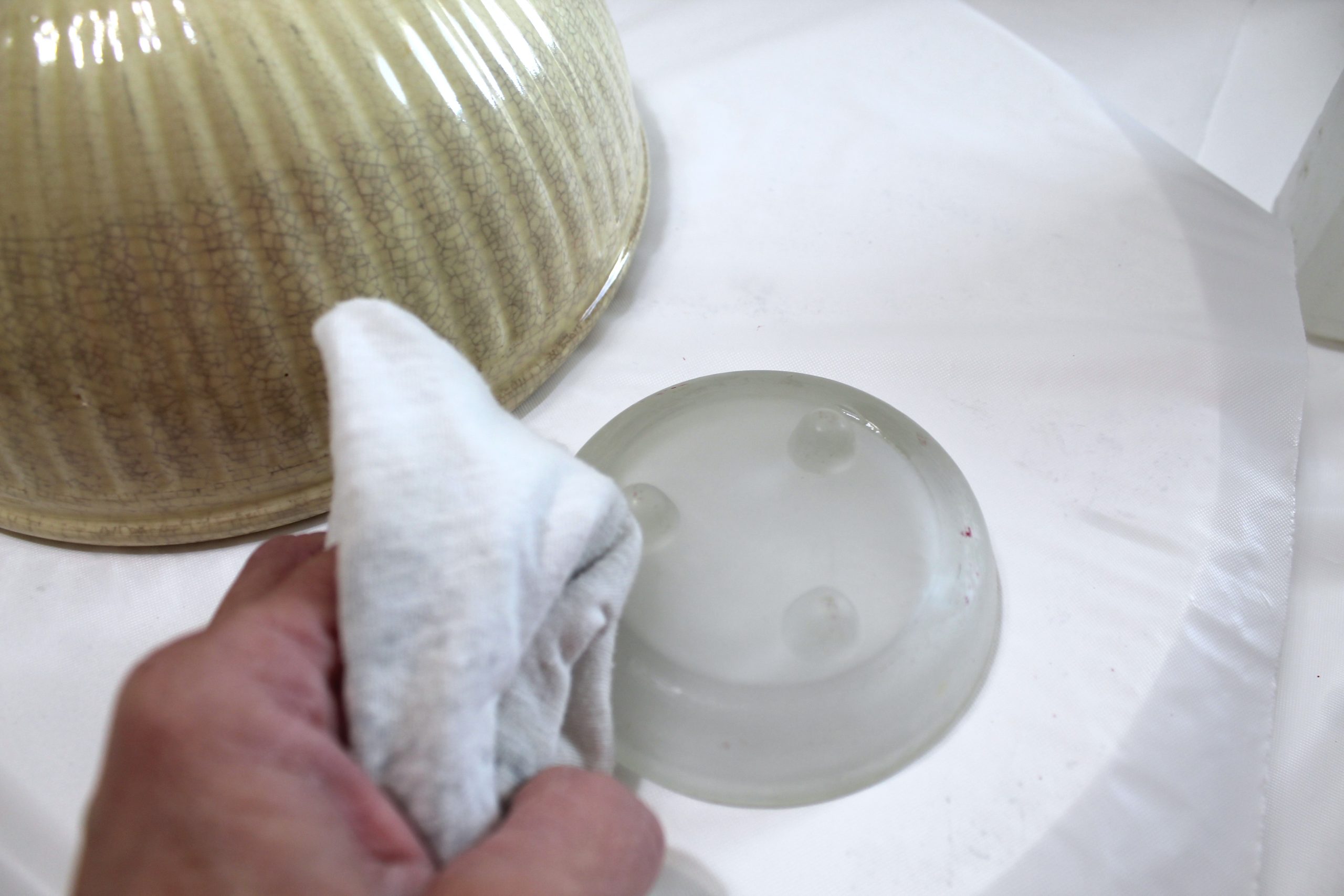 Cleaning the bottom of my bowl and the bottom of my candle stand with alcohol, making sure it is clean from any dust and dirt.
