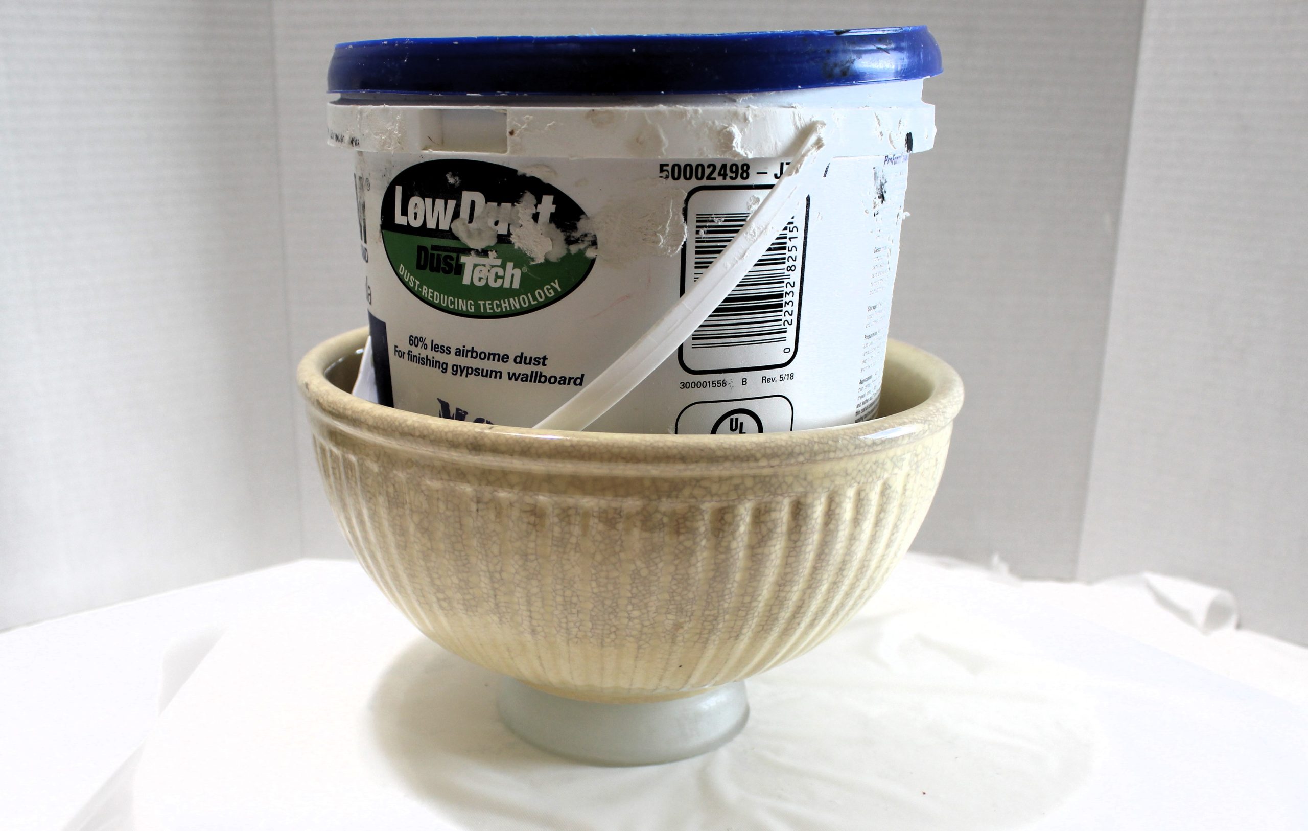Painting it upside down first, turning it carefully over and painting the rest of the bowl, one coat of the joint compound mixture.