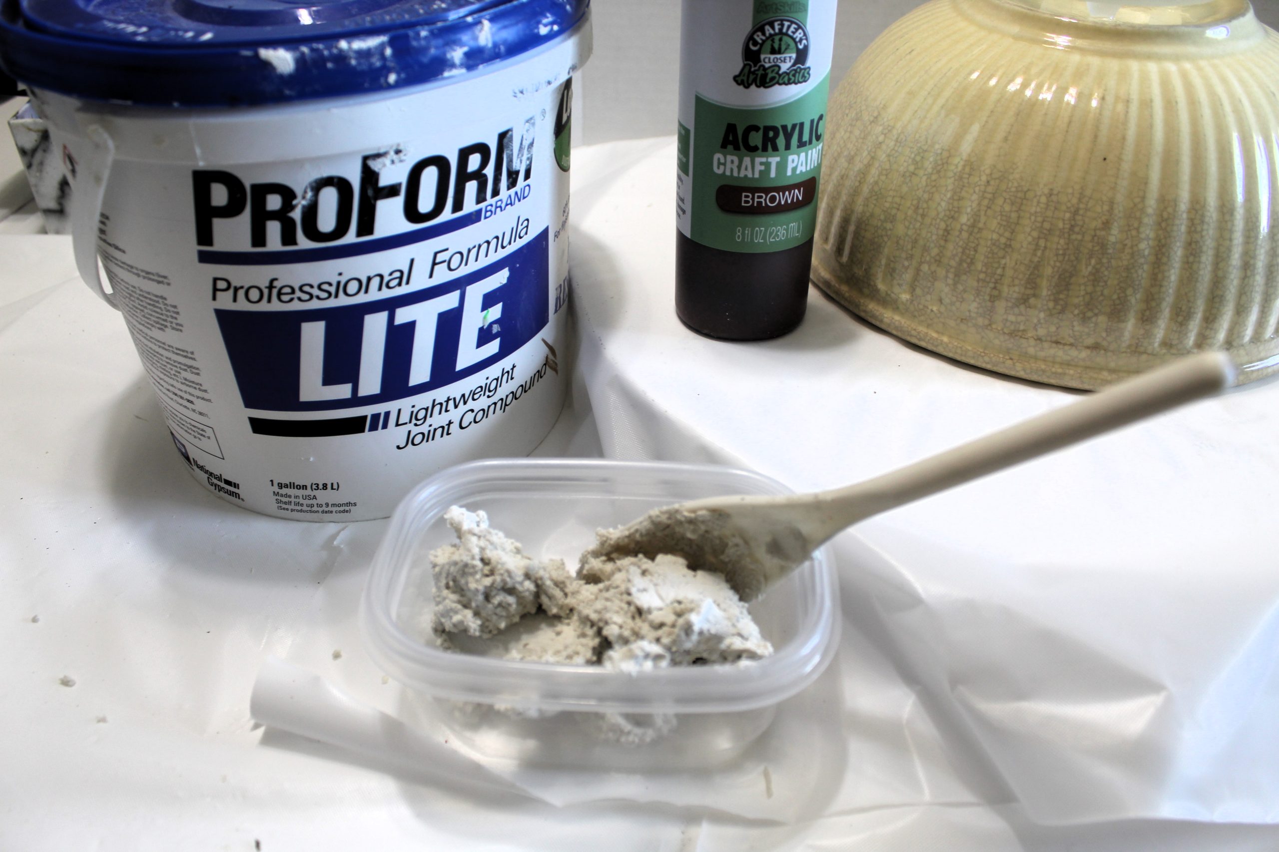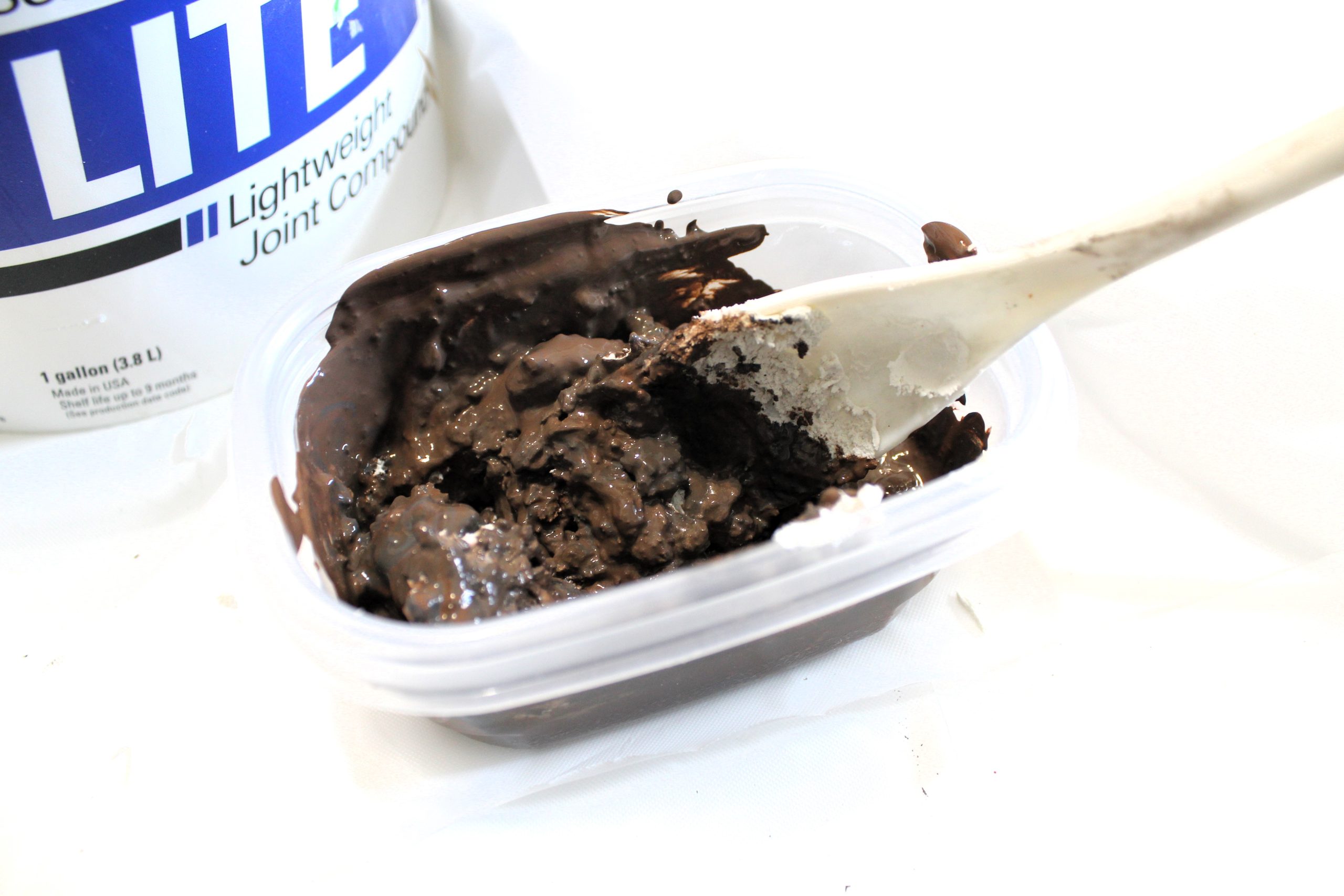I let this sit for several hours. Once the glue was dry, I gathered up my joint compound and brown craft paint.