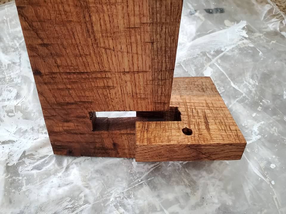 The light bulb went off…..I decided to make something out of the wood to place my phone on. I searched on Pinterest for inspiration for cell phone holders. I wanted something simple because I don’t have any fancy woodworking machinery. The one I found doesn’t include gluing, nailing or any fancy machinery. That’s for me!
