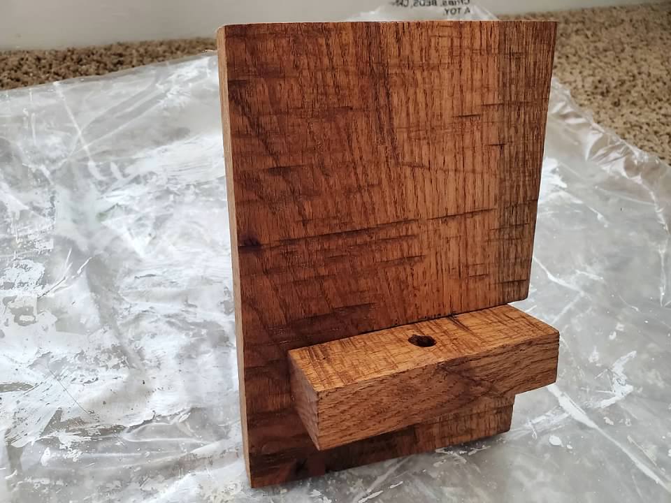 I searched on Pinterest for crafts made out of wood, nothing really jumped out at me. I wasn’t for sure what I was going to make until one morning I propped my cell phone up onto the mirror watching a video while getting ready for work, it kept on falling over. UGH!