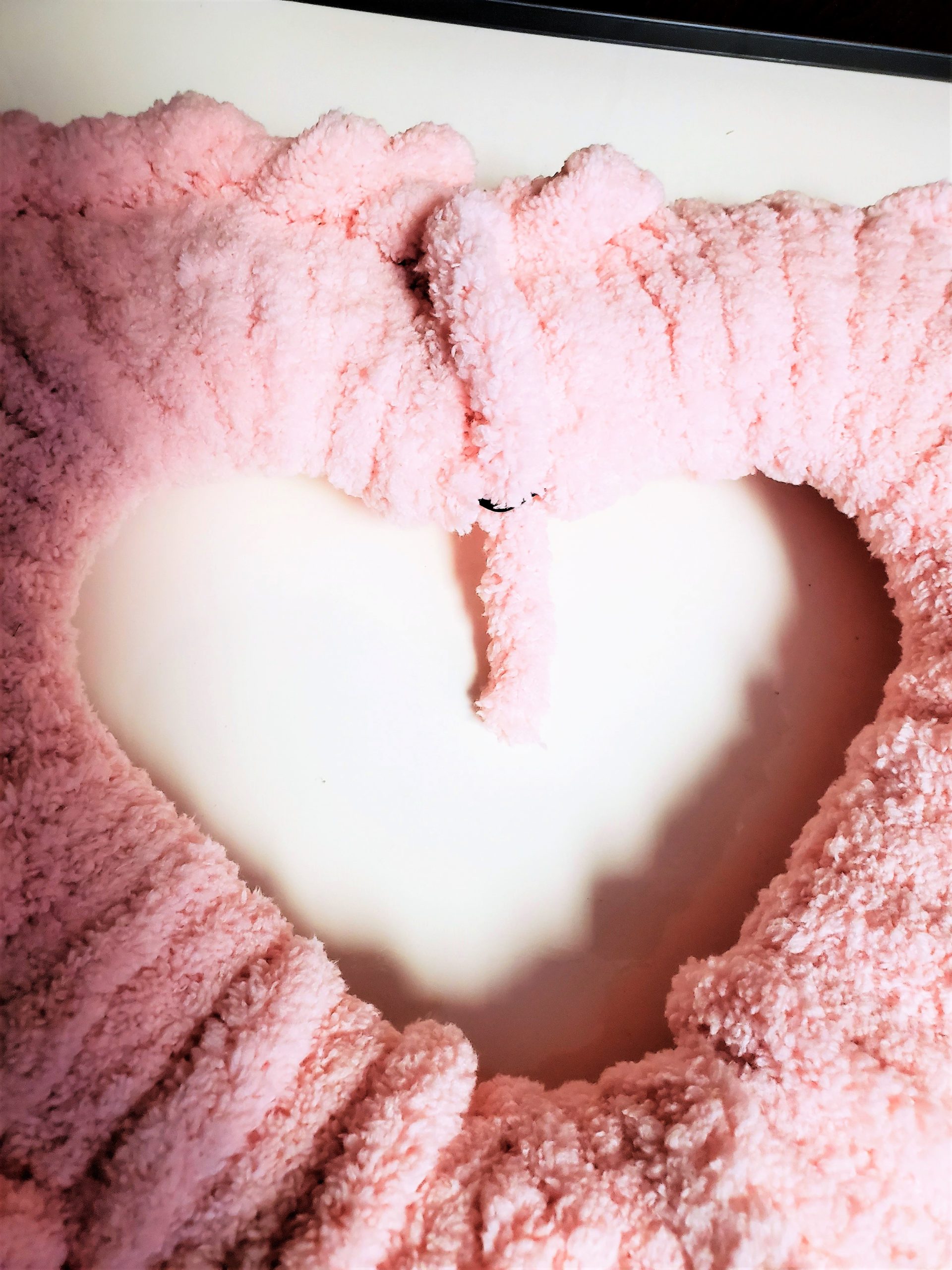 Love your chunky yarns heart. It looks great with your garland you updated too. Love pink for Valentine’s day!