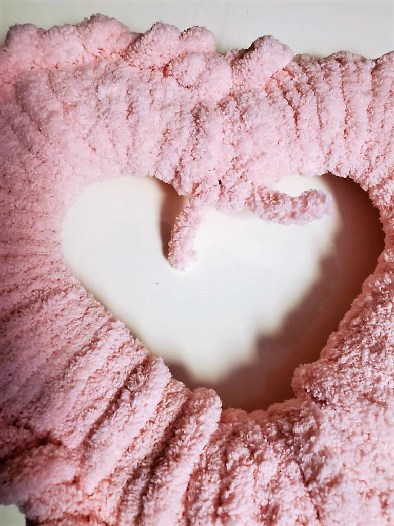 Thank you so much Michelle. I love how soft it feels. I have made several throws with this yarn. Didn’t have enough to make another throw but enough for this wreath. Love working with you on the challenge. Until next month Happy Valentine’s Day!