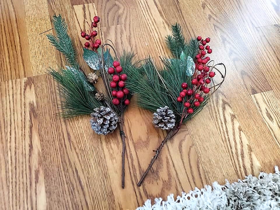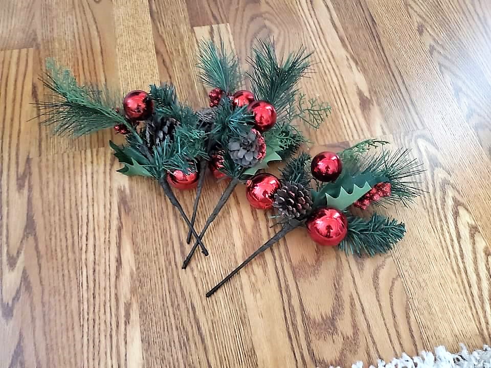 Giving the green garland some color I added some picks by tucking them into the garland.