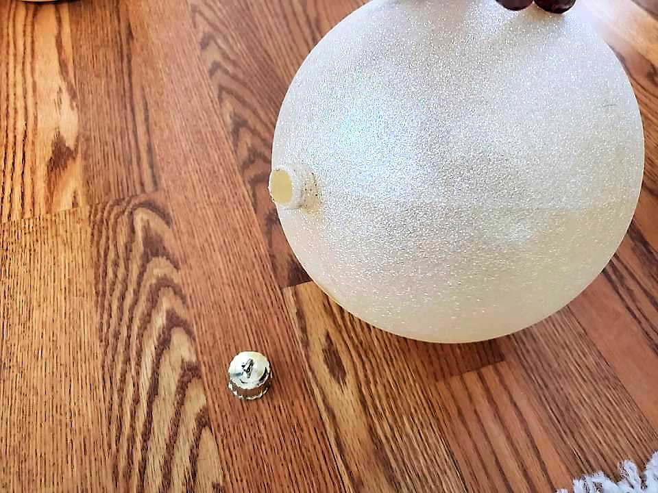 I gathered a couple larger ornaments to place on the mantel. To paint the ornament I removed the cap and gave them two coats of spray paint.