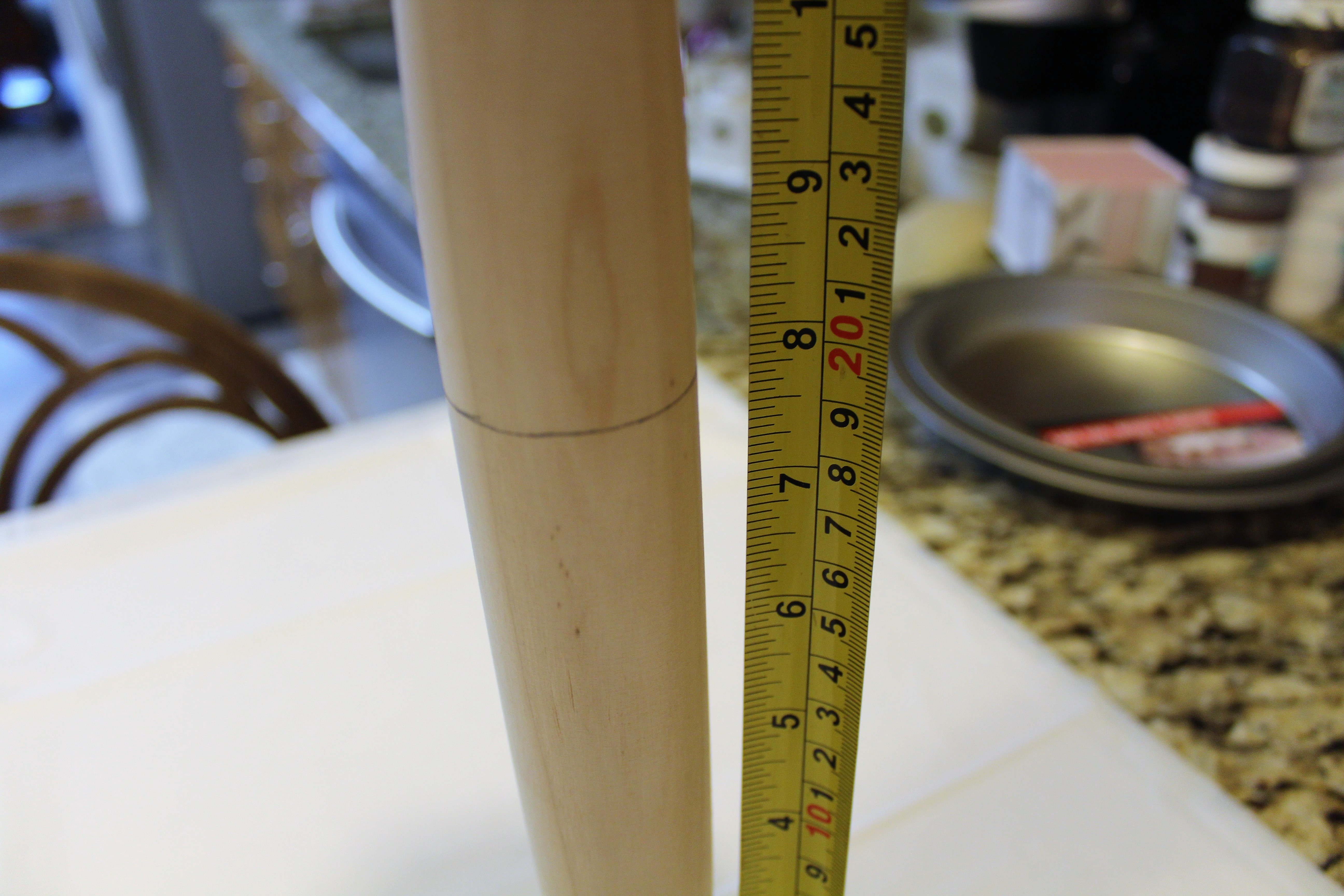 Now I took the shorter part of the rolling pin and marked 1/4 inch on each side at the top.
