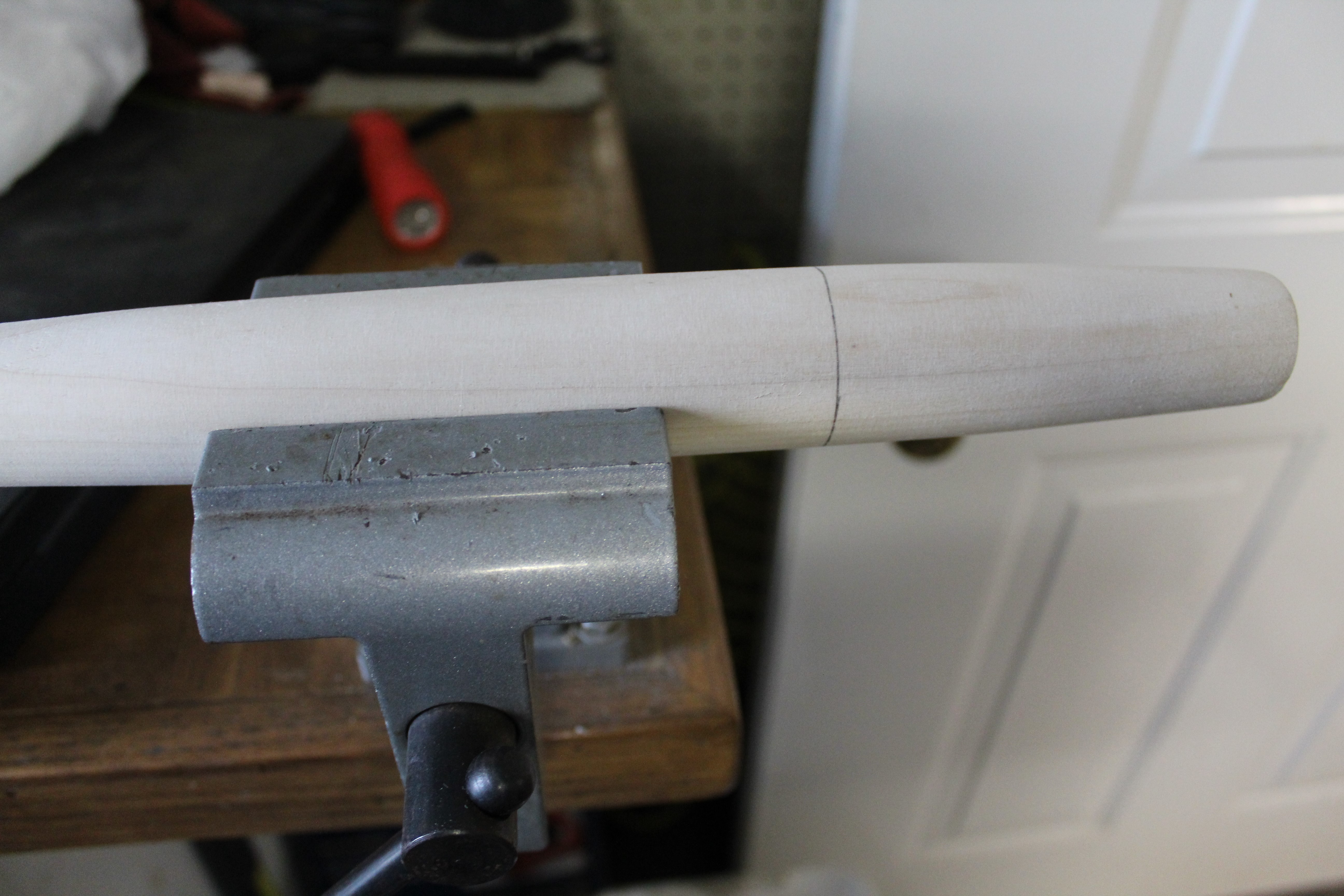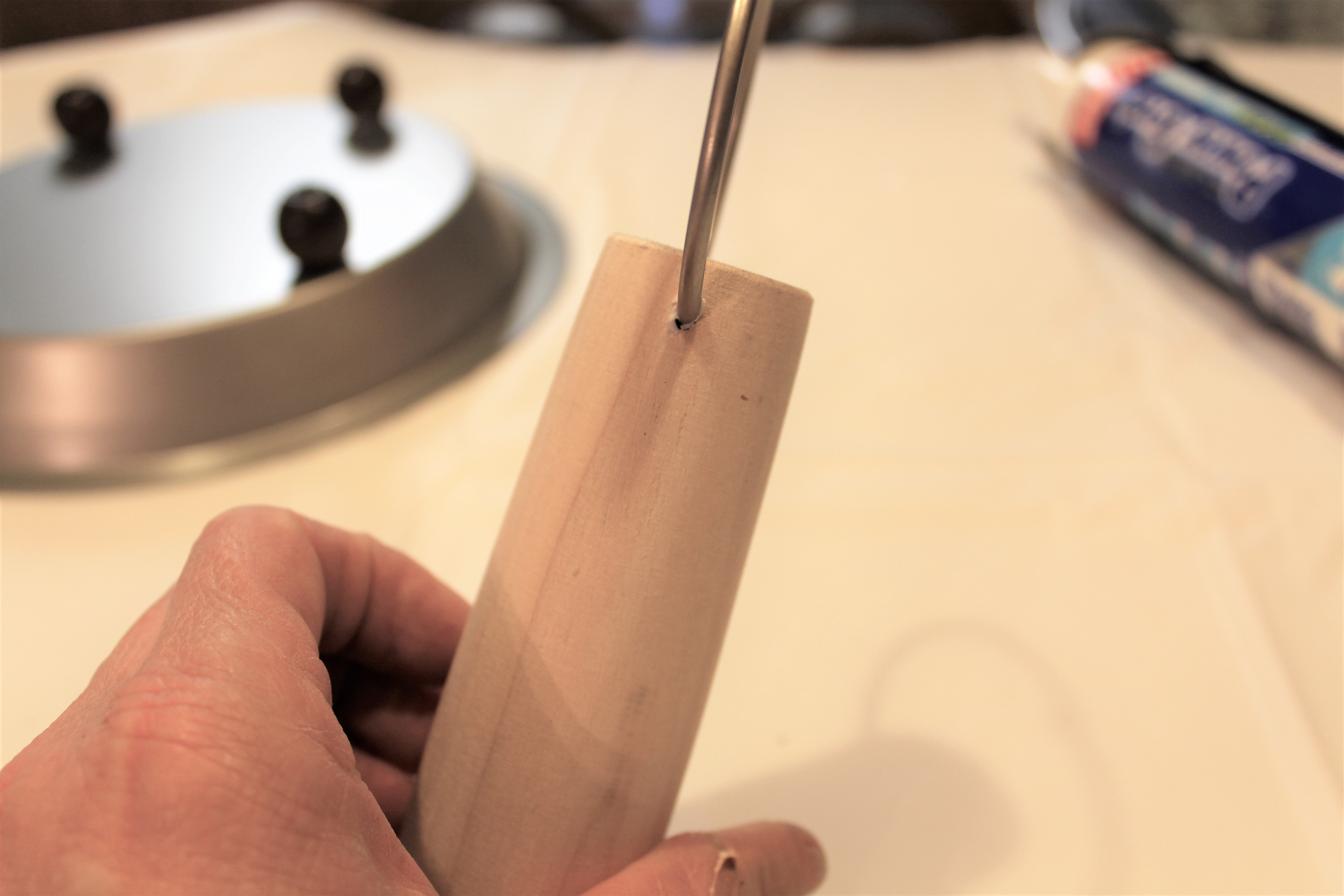 I took the long piece of rolling pin and put some power grip glue to the cut part.