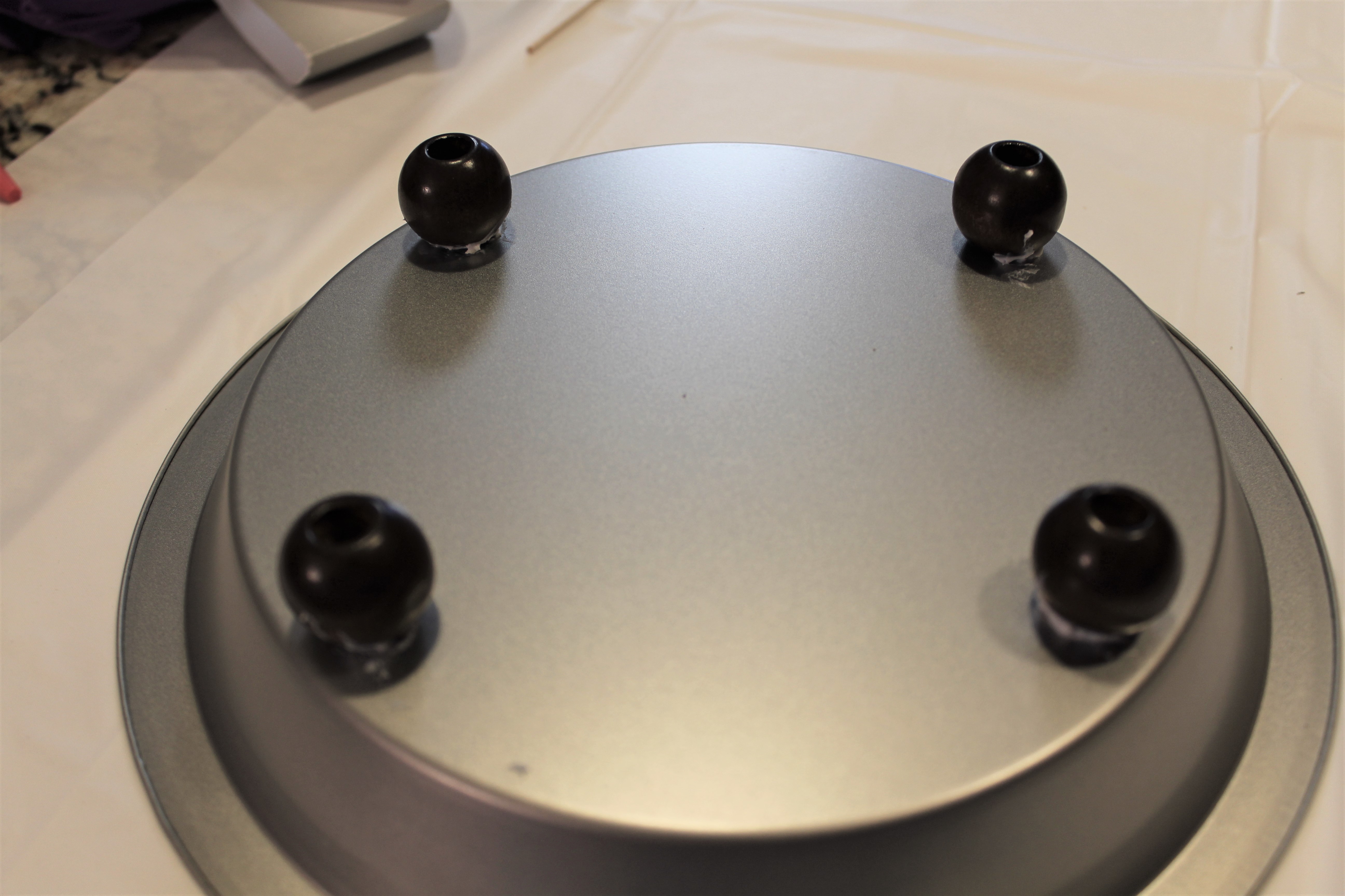 With the power grip I glued the beads to the bottom of the pan. Making sure they are spaced evenly.