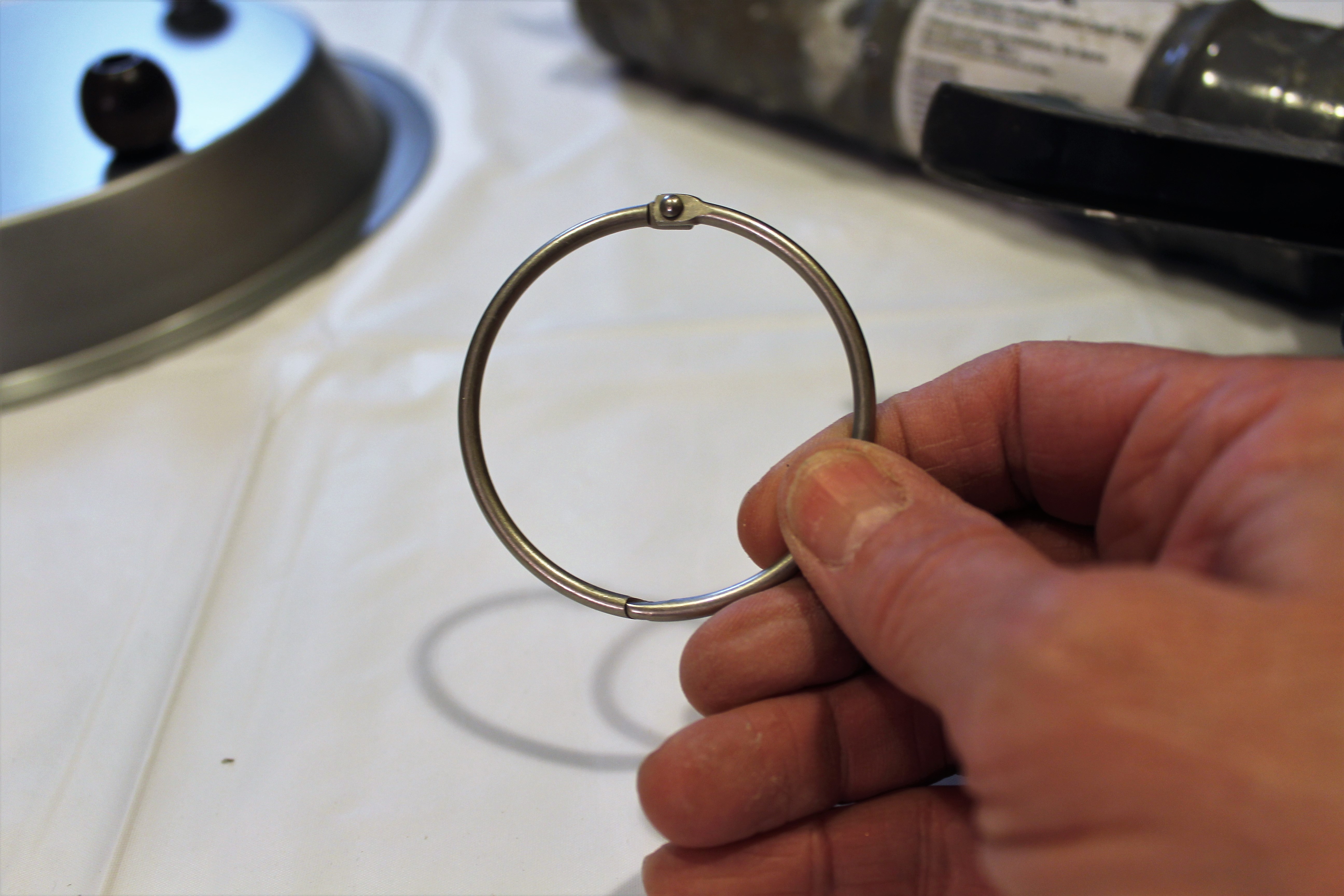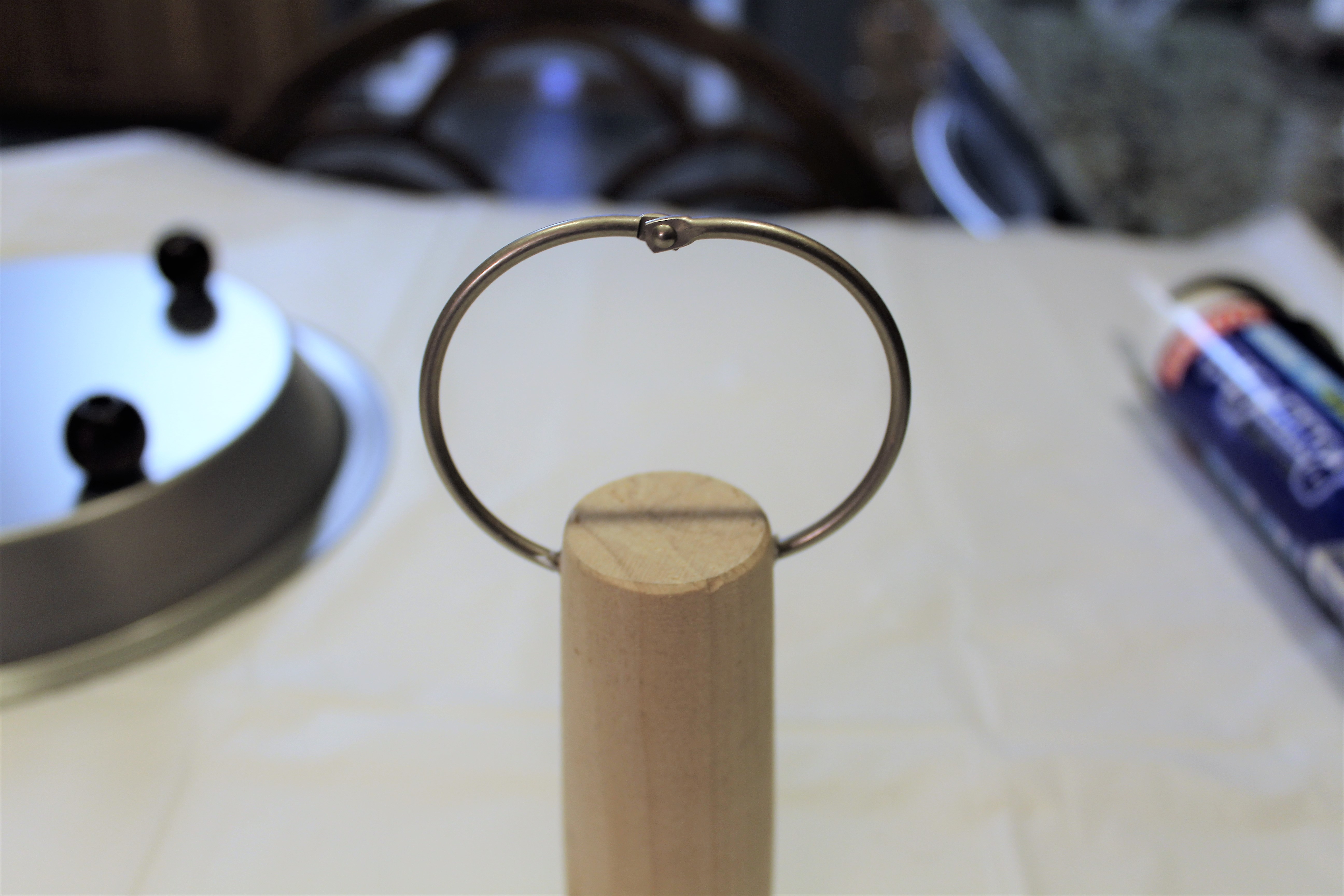 - I pushed the ends of the ring into the drilled holes. It was a little tight but they should go in fine. The glue will secure the ring.