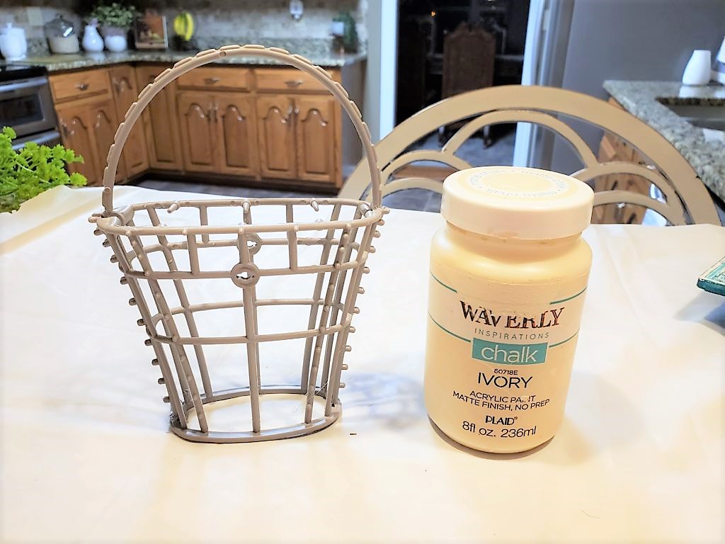I unwrapped the garland that was on my basket. I painted the form with Waverly Ivory chalk paint.