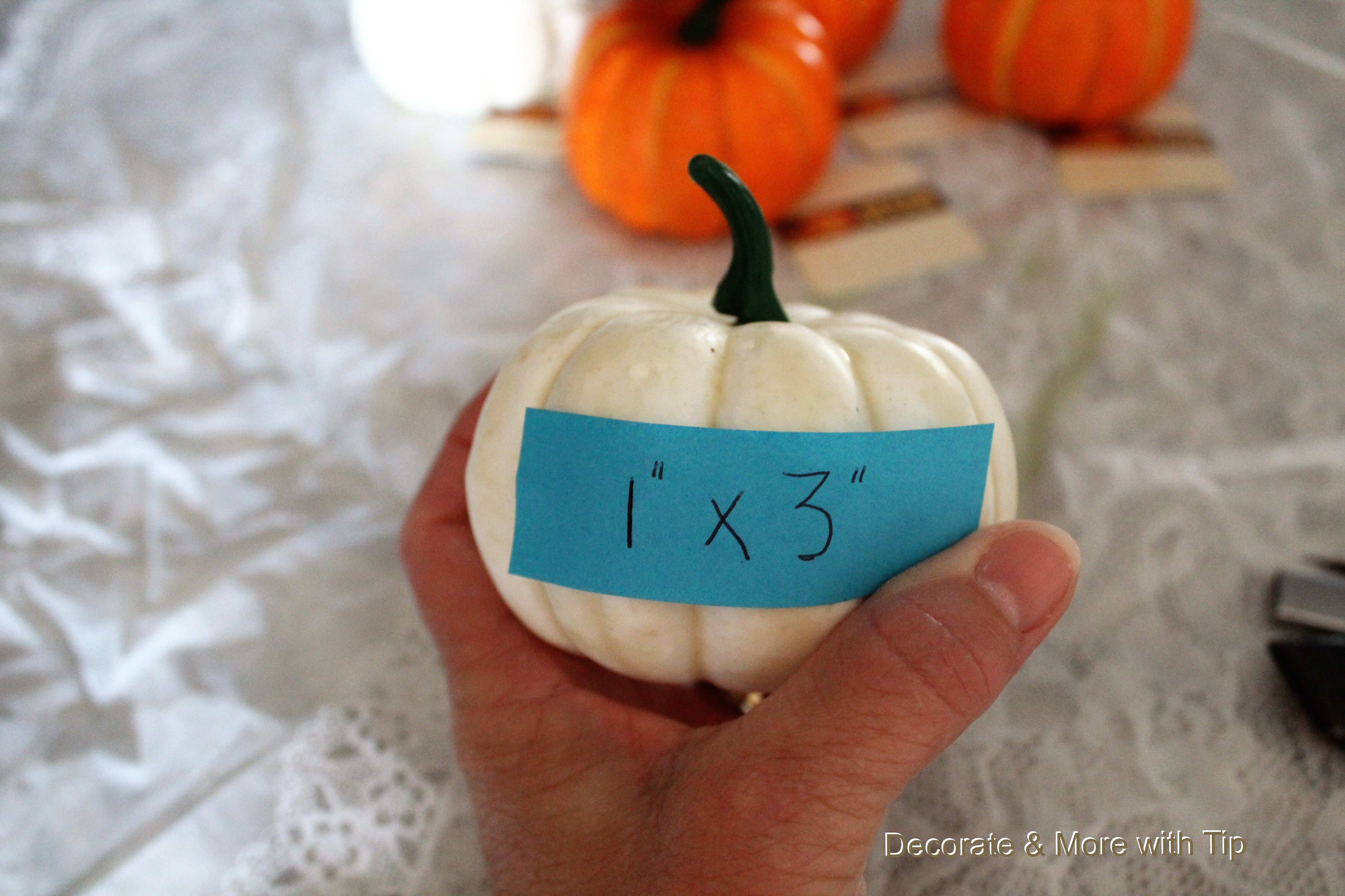 This DIY I will be making napkin rings for my Fall dining room table. I wasn’t too sure what I wanted to do until I went to the Dollar Tree and saw the small pumpkins. That got my decorating imagination flowing. I grabbed 6 of their pumpkins, which that store didn’t have 6 of the same color, but they were the same size and shape. I was going to paint them anyway so it didn’t matter.