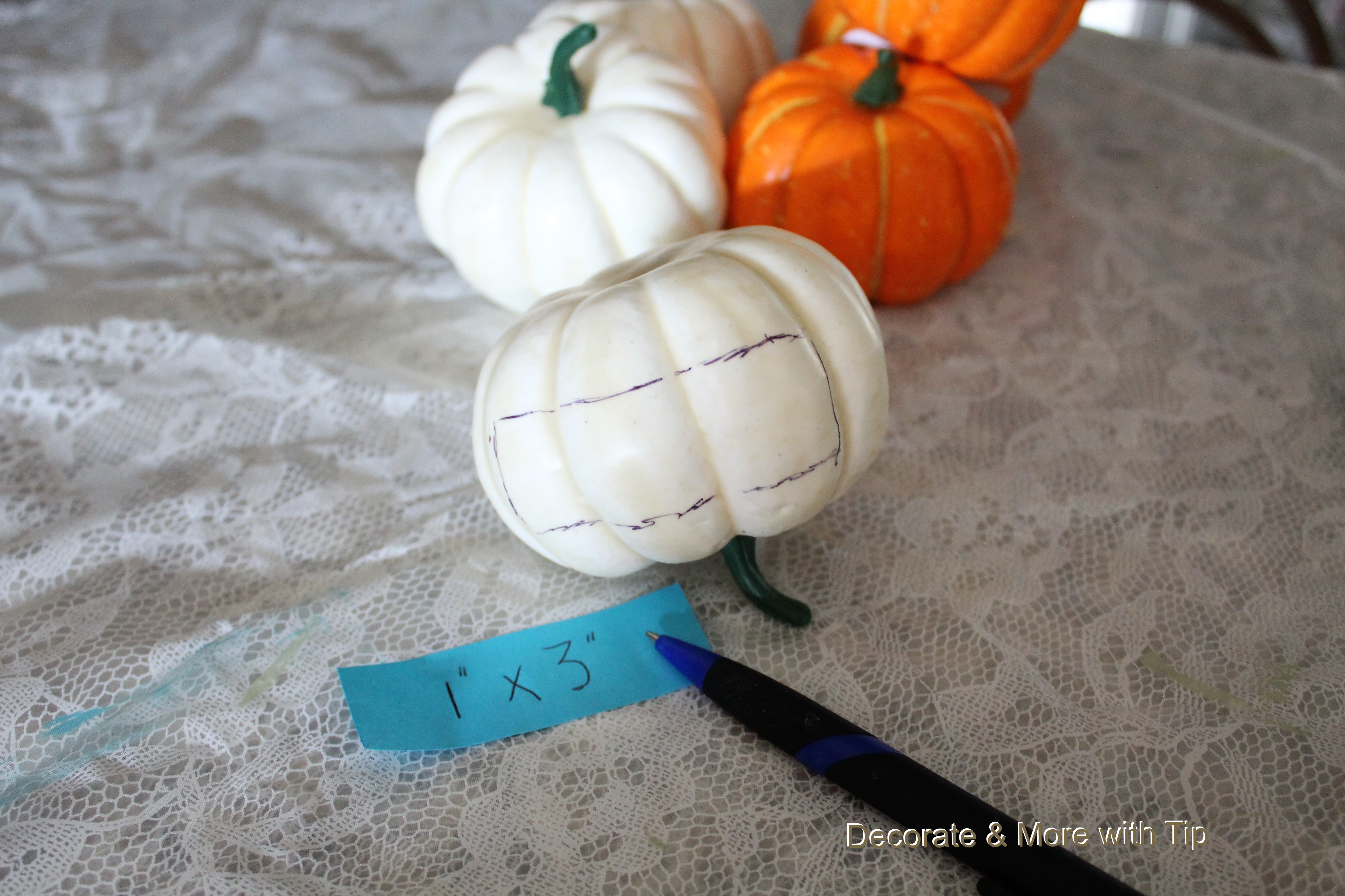 I want to make a 1 inch x 3 inch window in the center of the pumpkin. If you look closely at the pumpkins there is a line all the way around the pumpkin in the center.