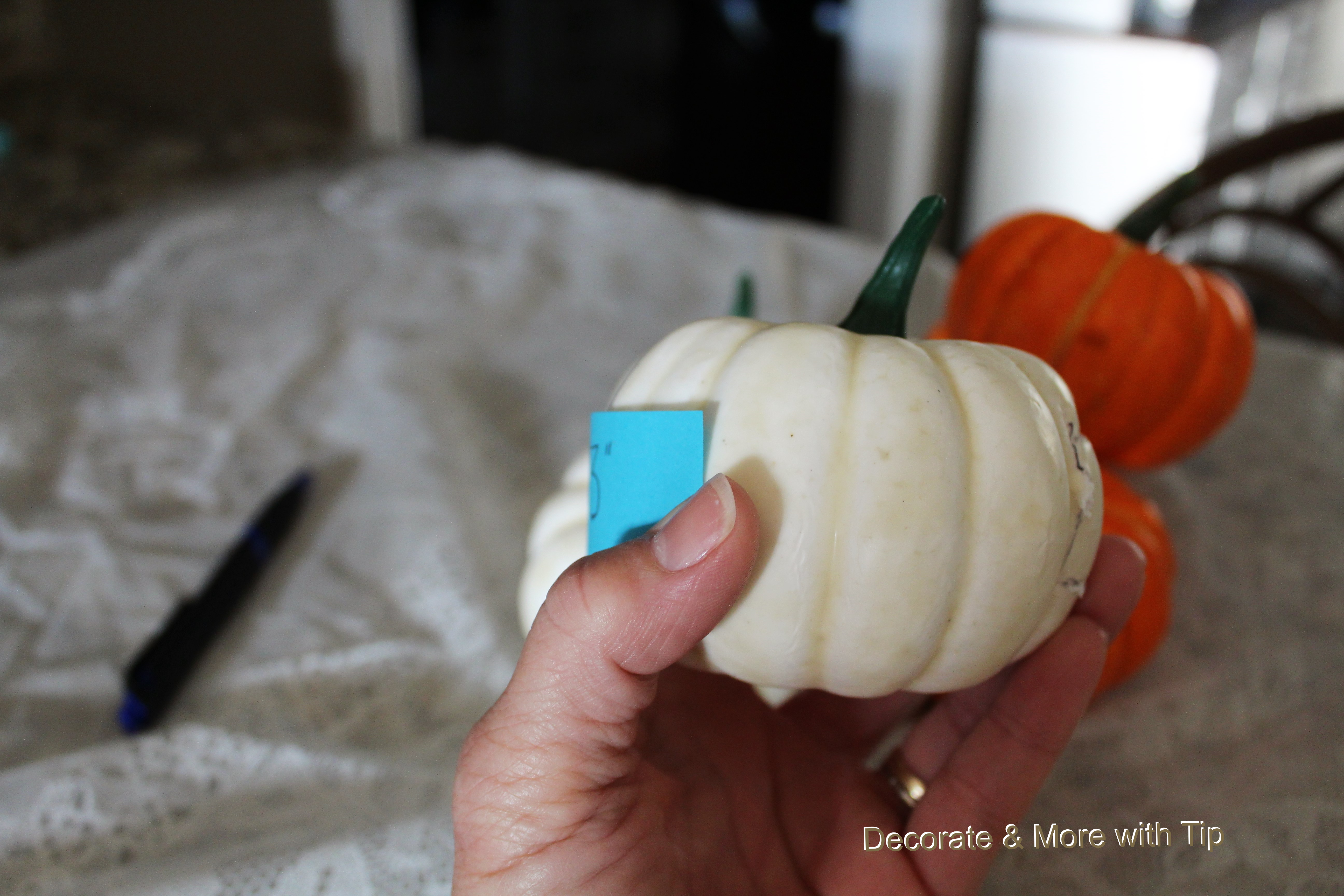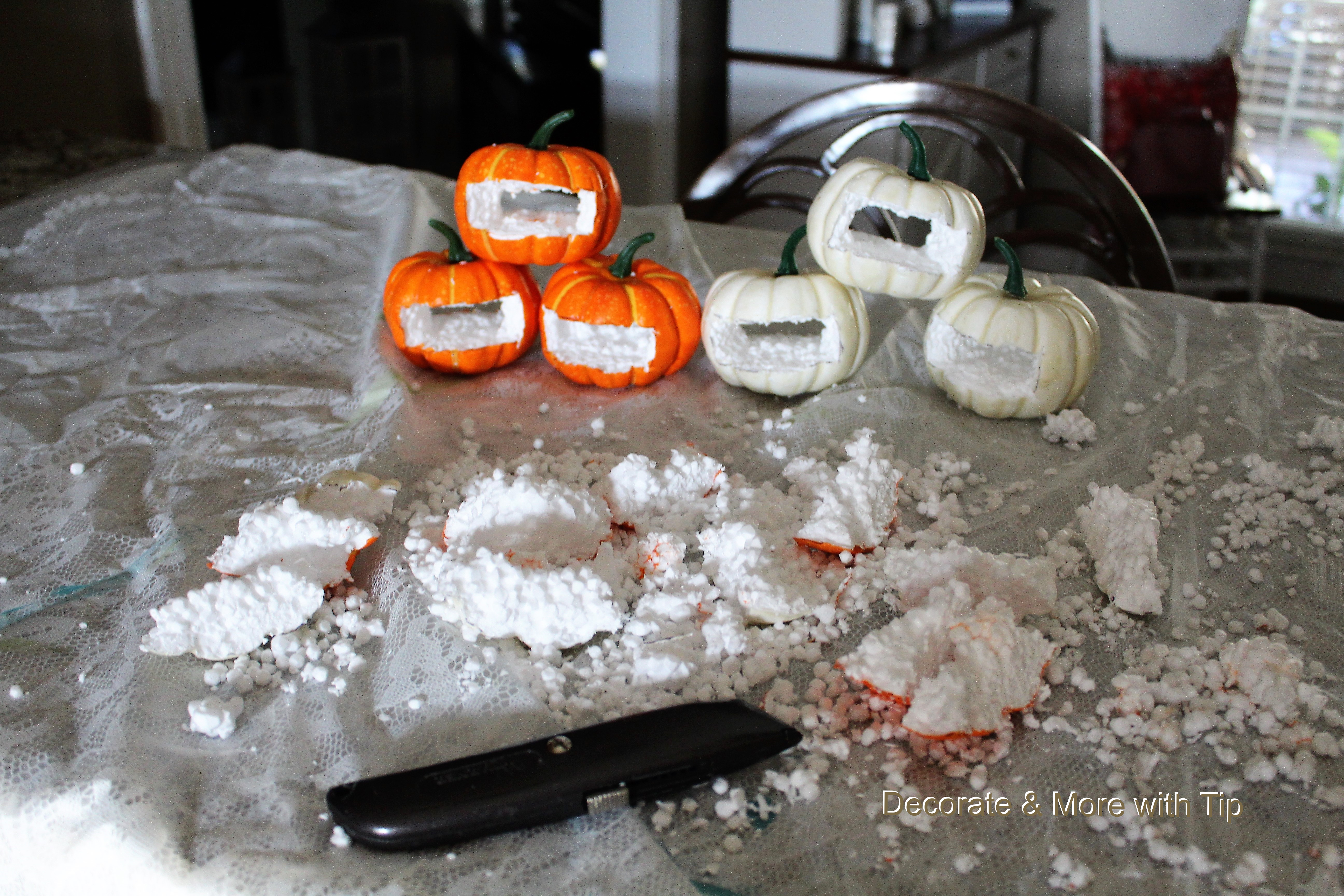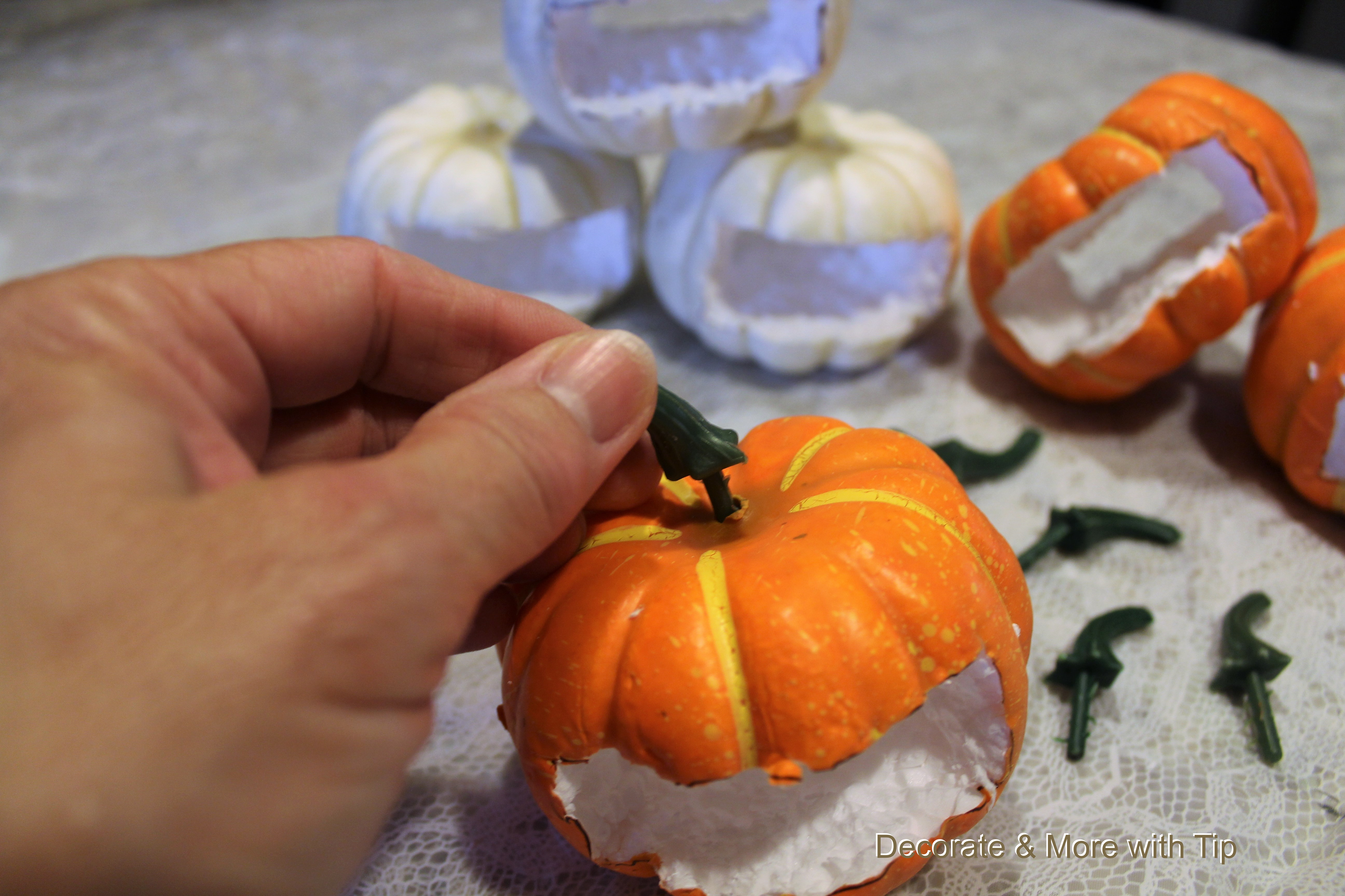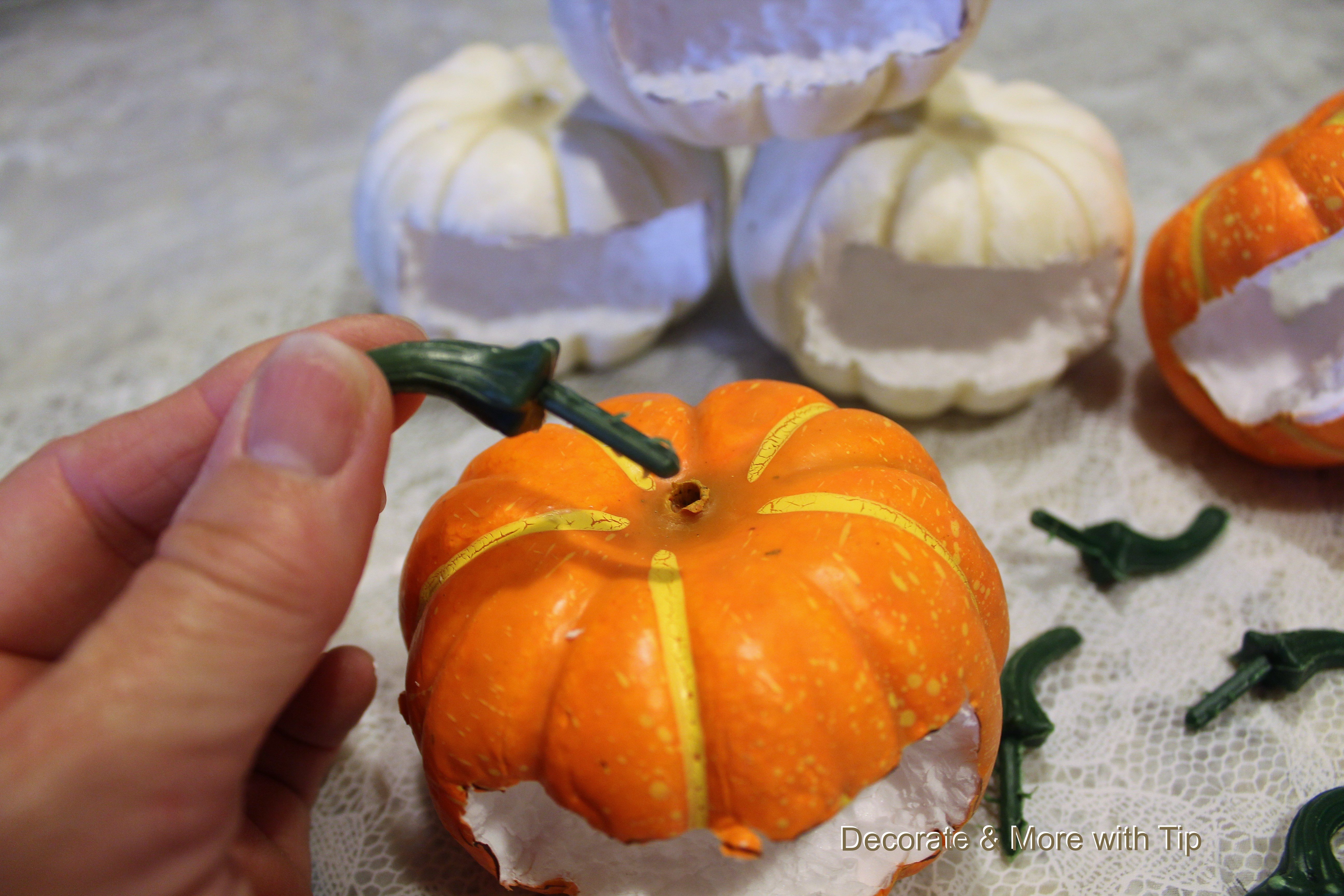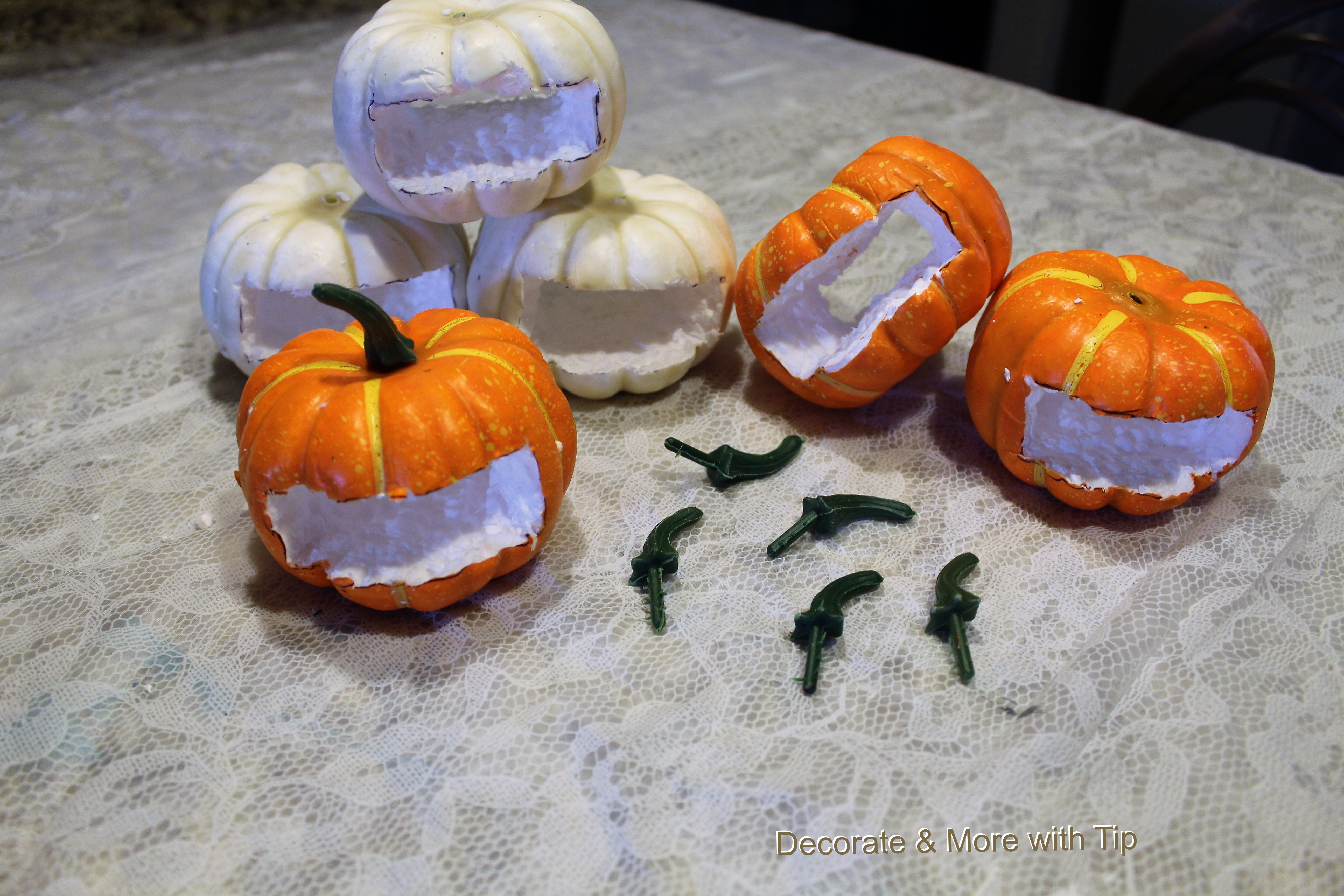 I removed the plastic stems from the pumpkins. They pull out very easily.