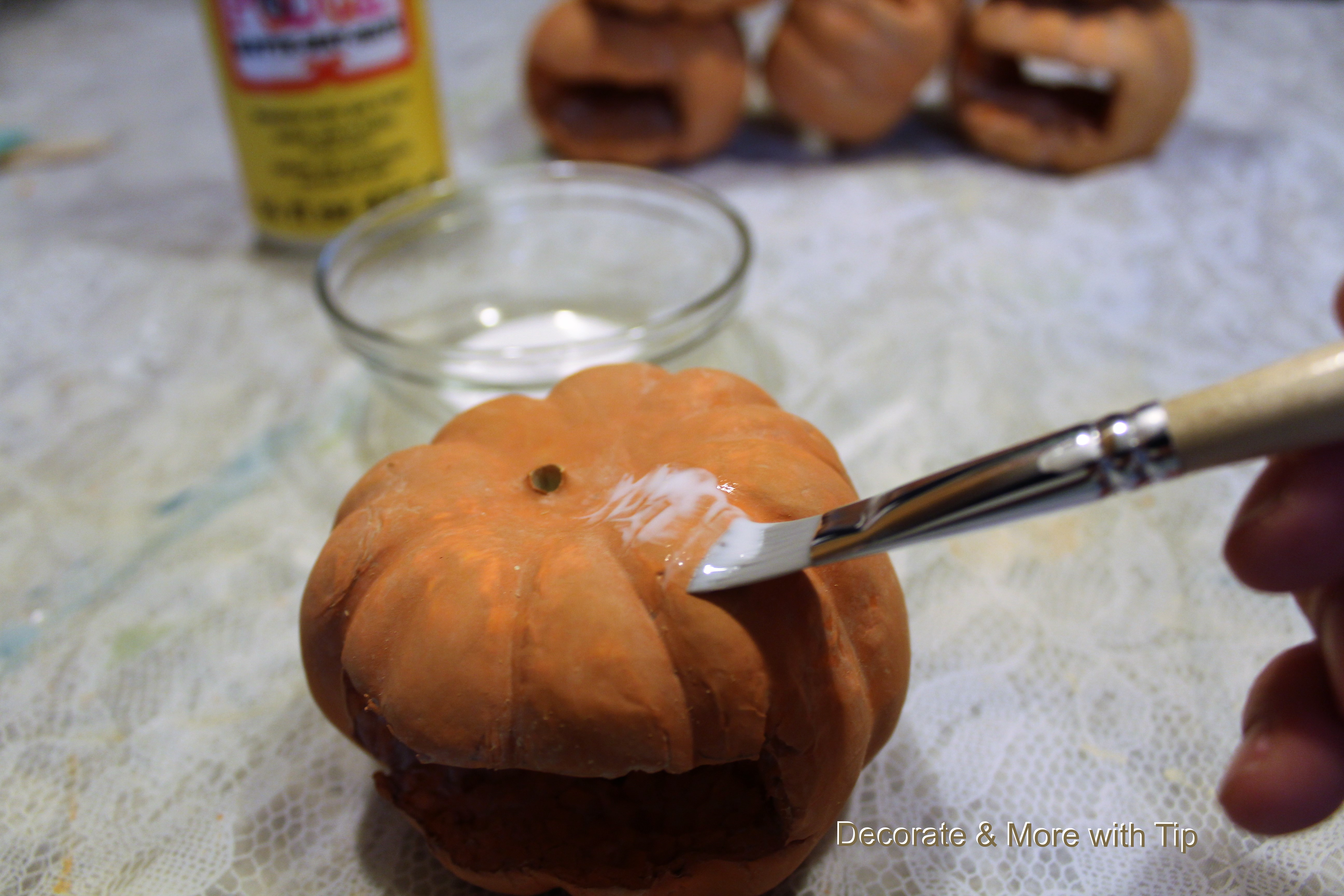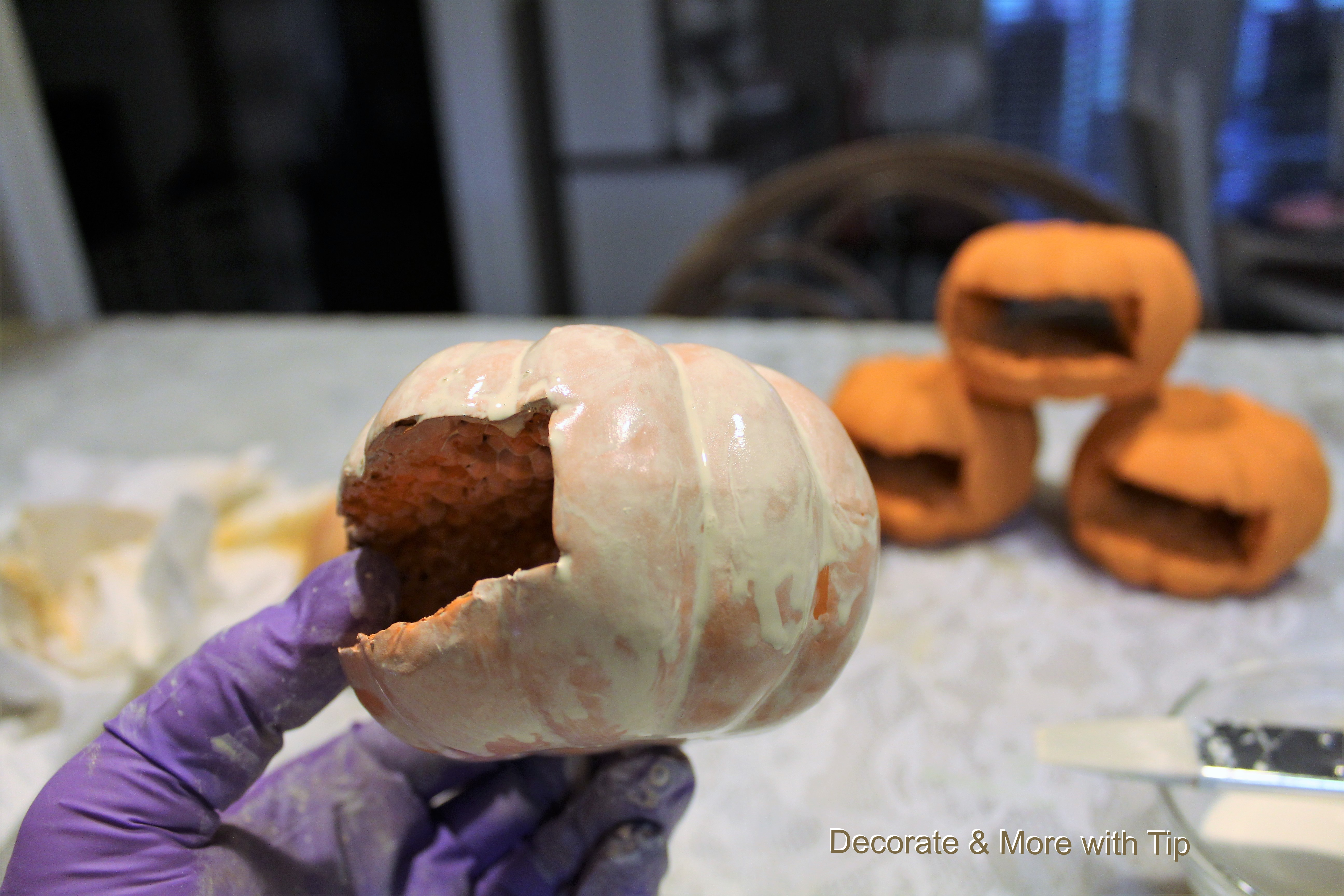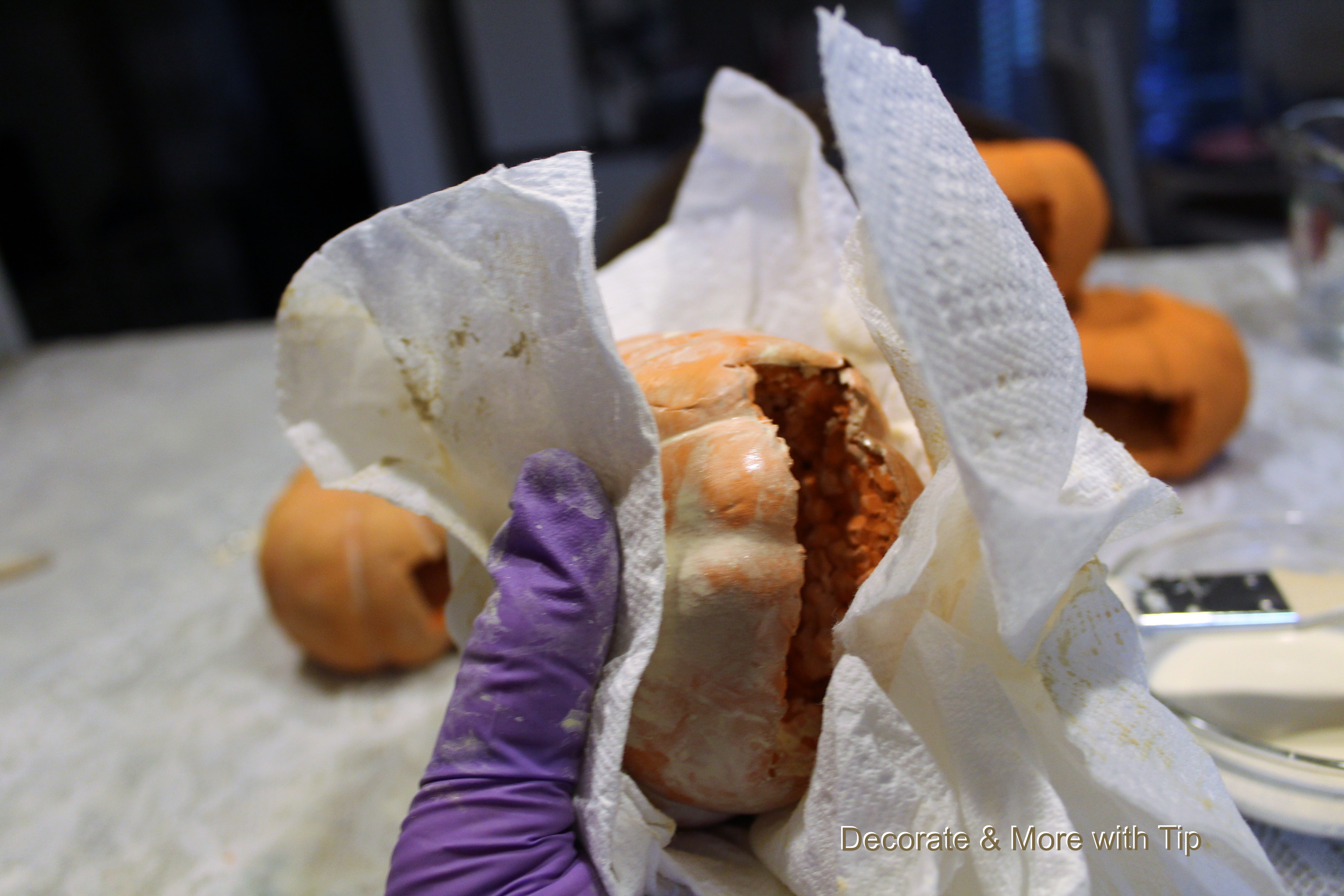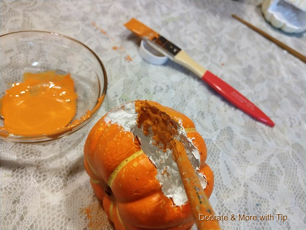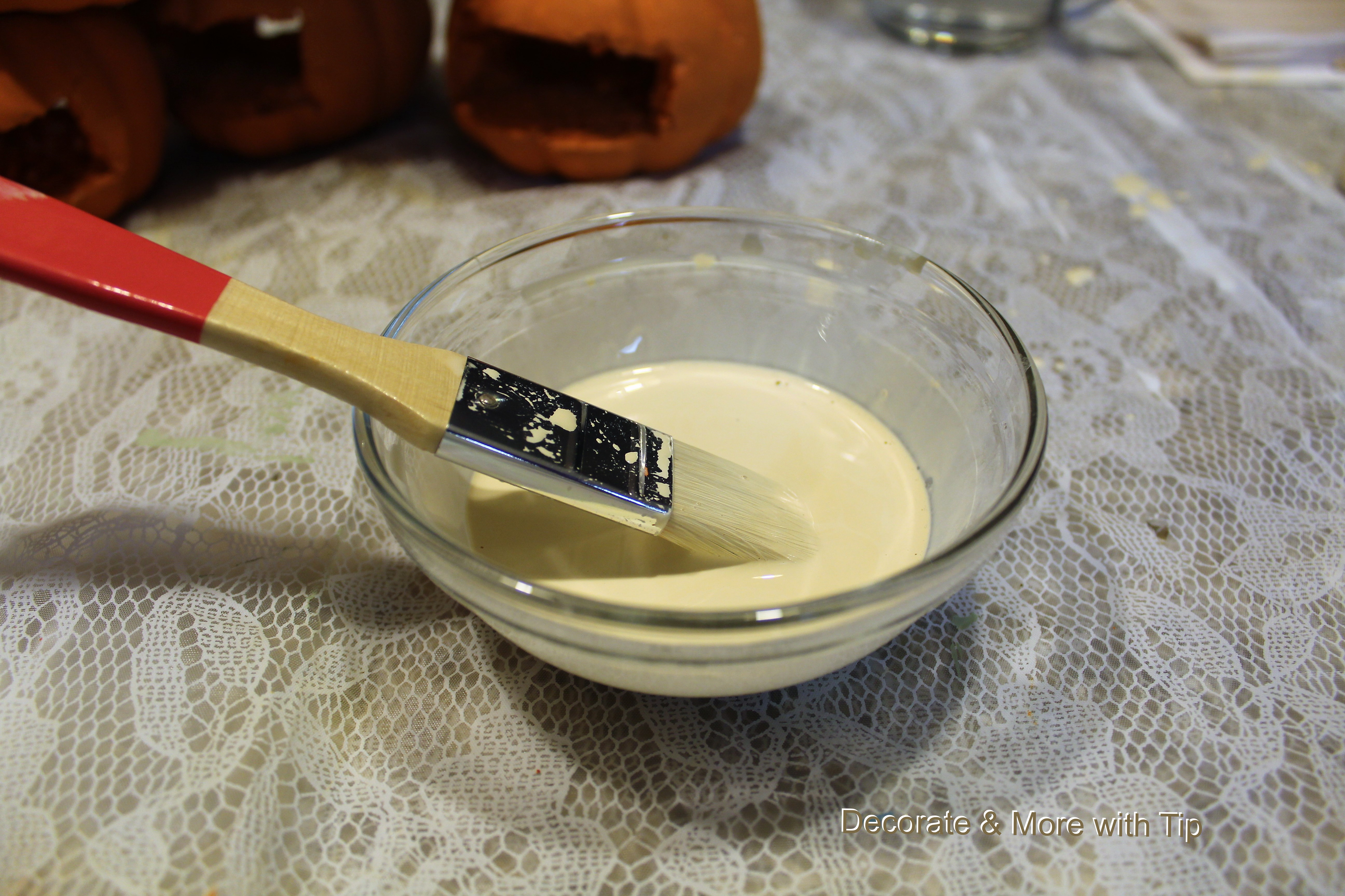 I painted the wash all over the pumpkin then wipe dry with a paper towel. Leaving the ivory in the crevices.