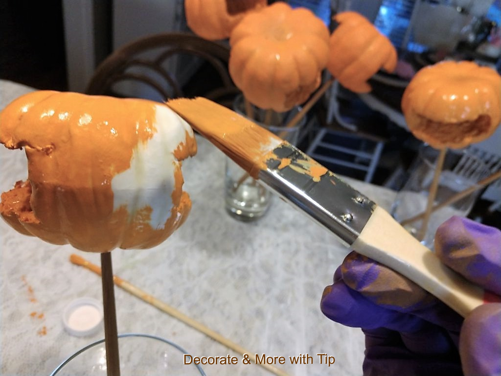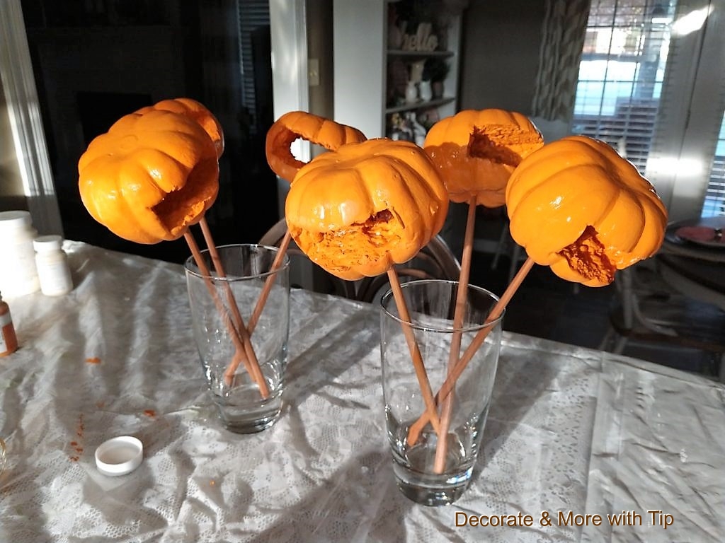 To paint the pumpkins I am going to use some chop sticks to poke in the stem hole so I have an all around access to painting the pumpkins.