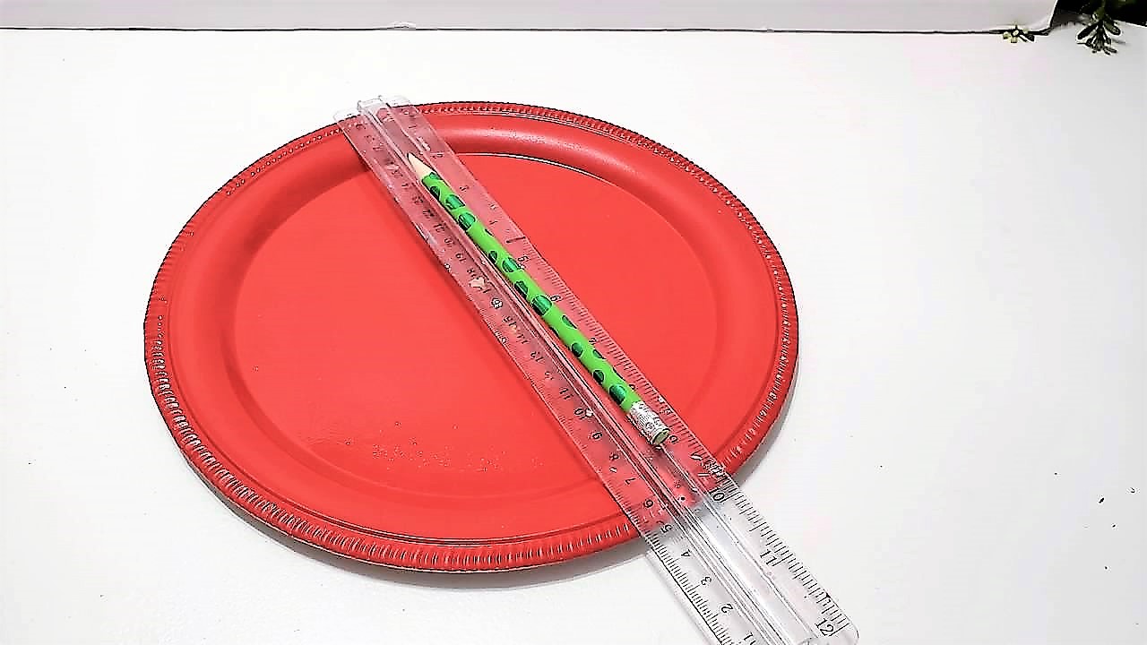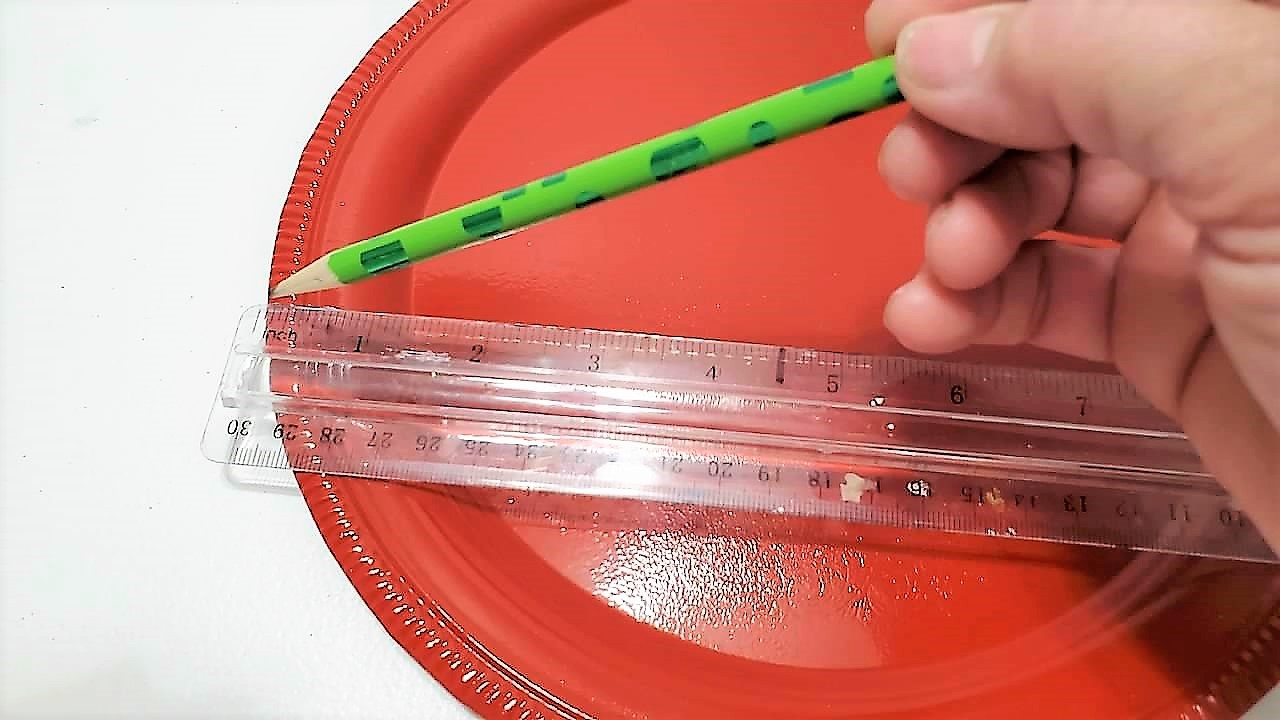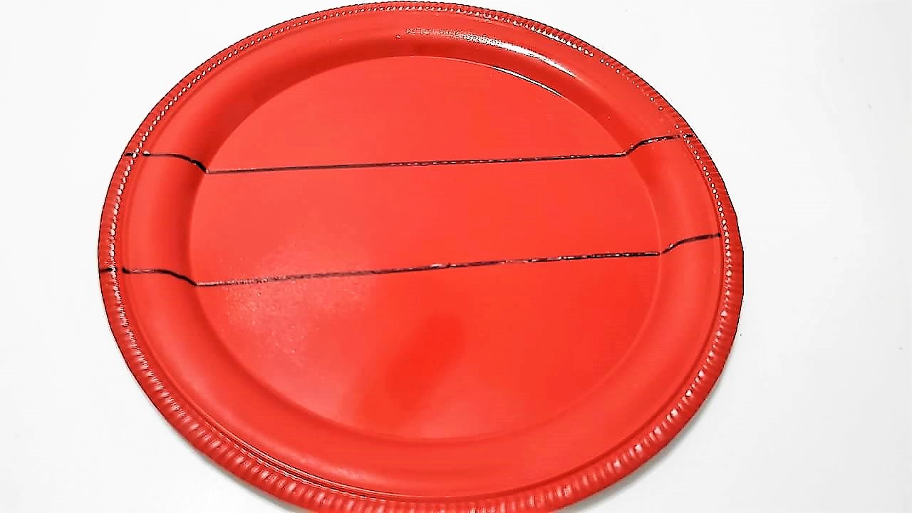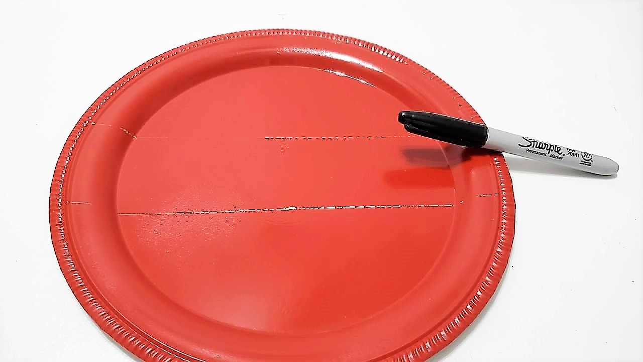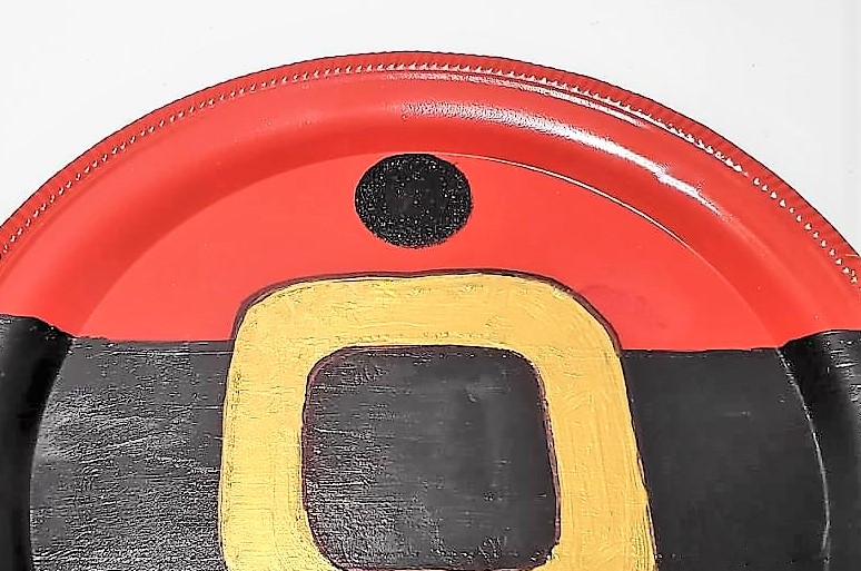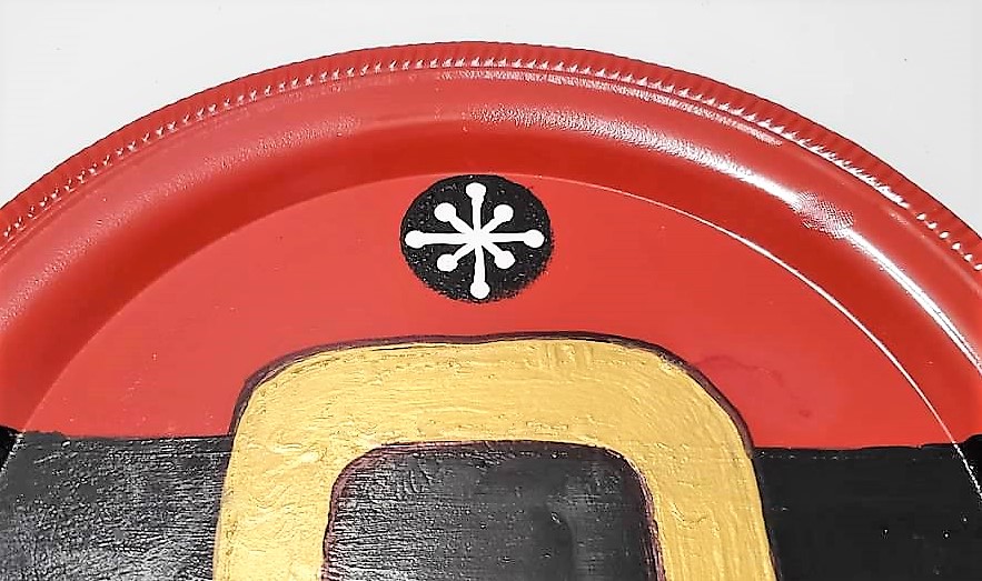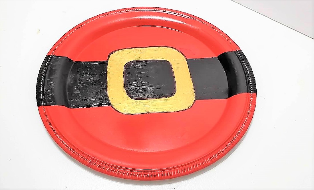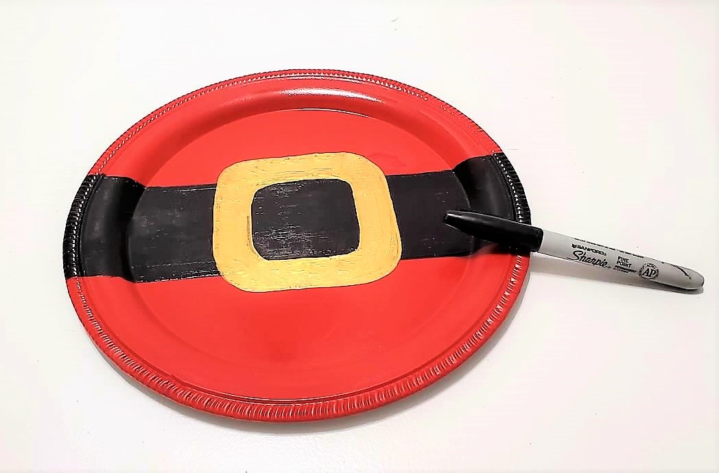 Making Santa’s belt, I am using a ruler and pencil to mark two lines in the center of my platter. I used a black sharpie to out line the lines.