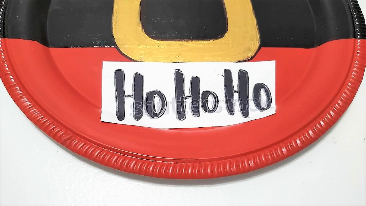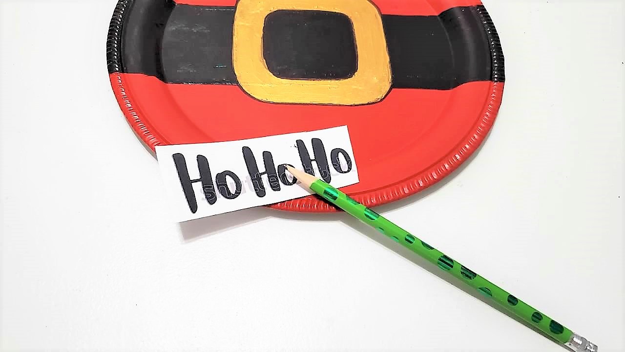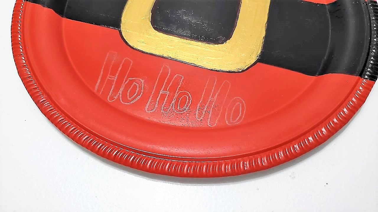 Adding a little fun to the platter, I printed out the words Ho Ho Ho. Added the words to the plate by scribbling the back with a pencil and then tracing it onto the platter. Painted the words white.