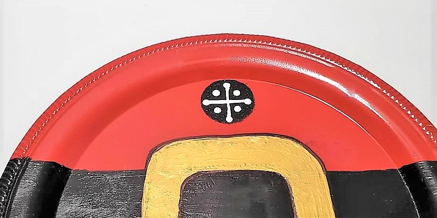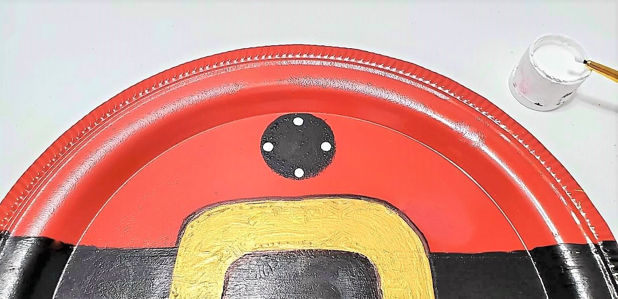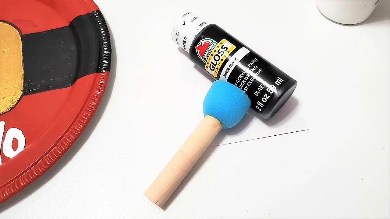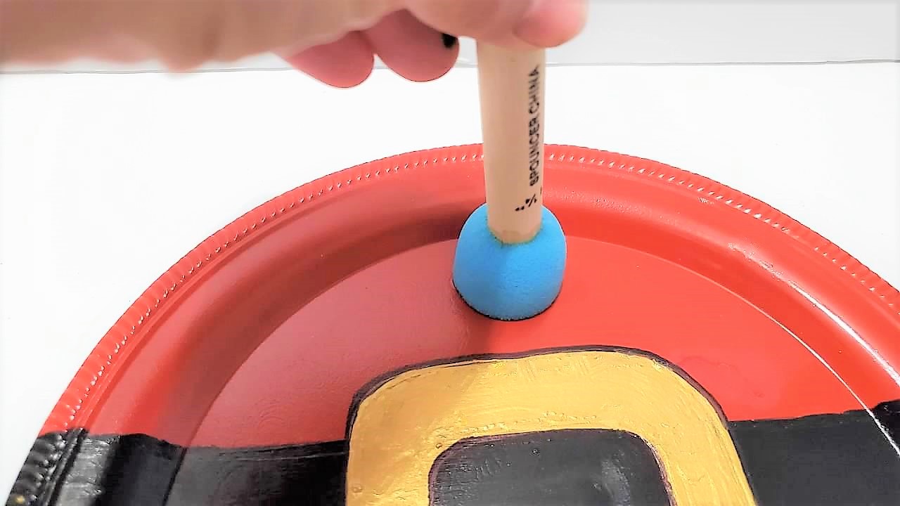 Next, I dabbed a circle sponge into the black paint and pushed it in the center top of the platter.