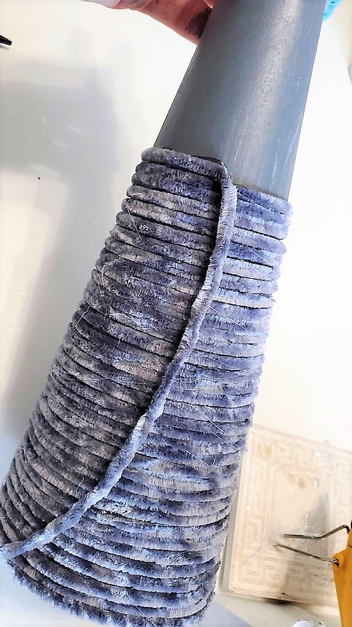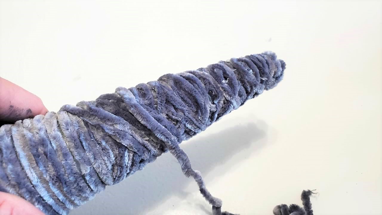 Continue gluing and wrapping the yarn around the cone all the way to the tip of the cone.