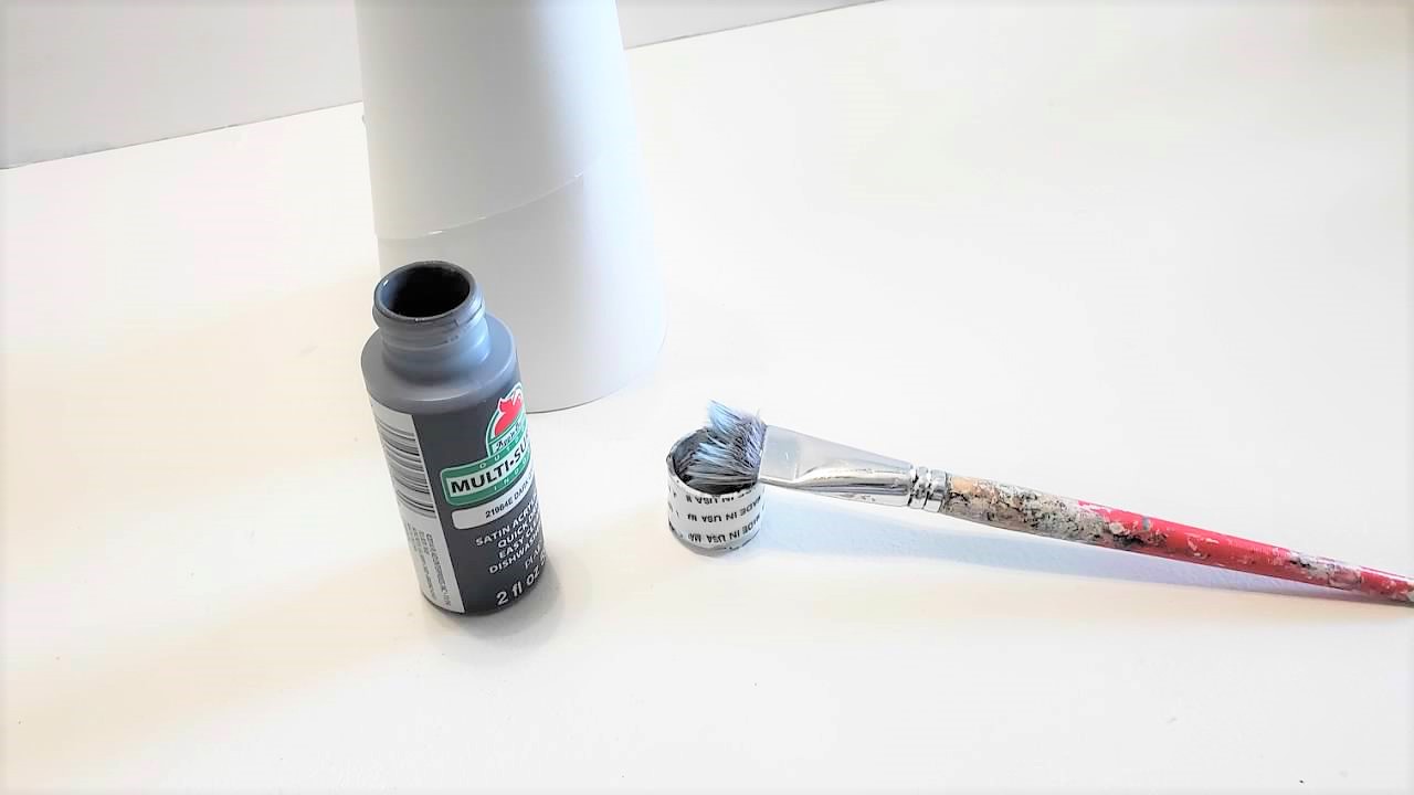 To tone down the white poster board, I painted my cone the color of the yarn.