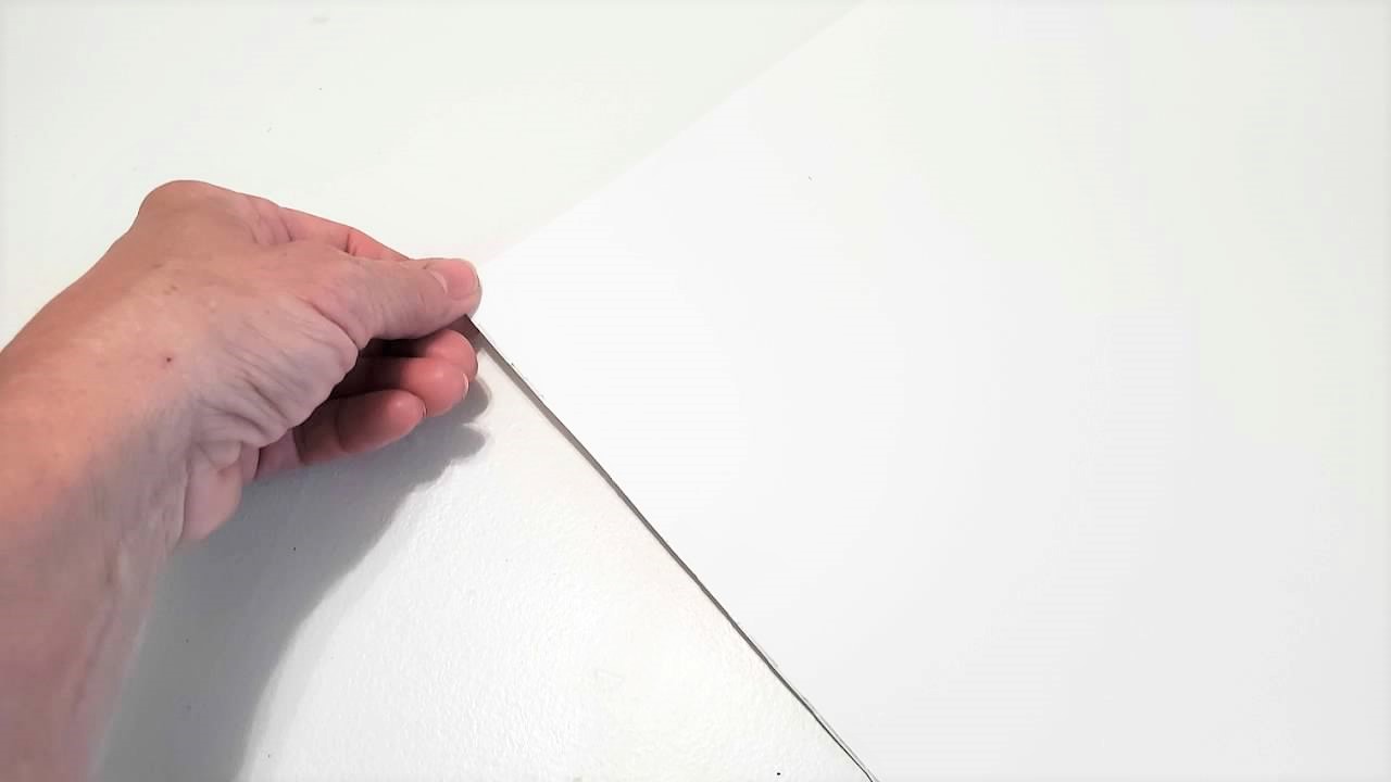 To make the Christmas tree shaped cone, take the poster board and cut a square.  For my taller tree I cut a 16″ x 16″.