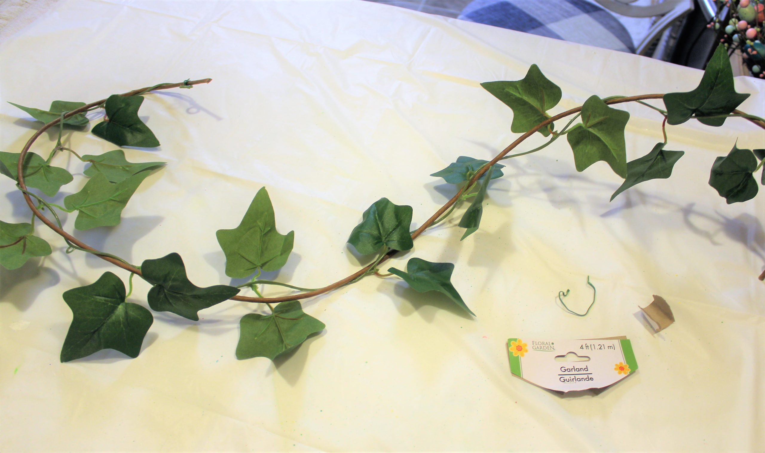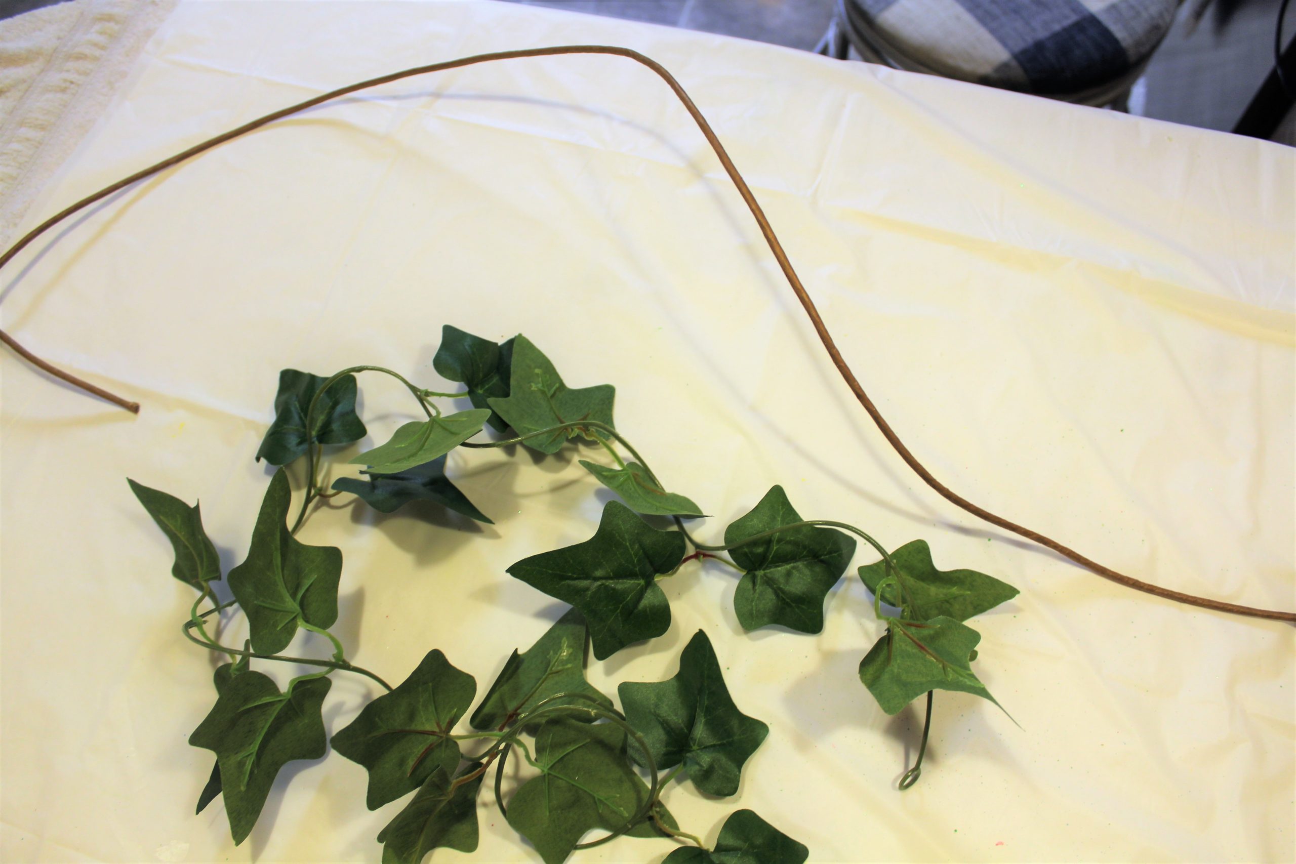 First I needed to work on my base for the garland. I took the garland from Dollar Tree and removed the greenery from the brown base.