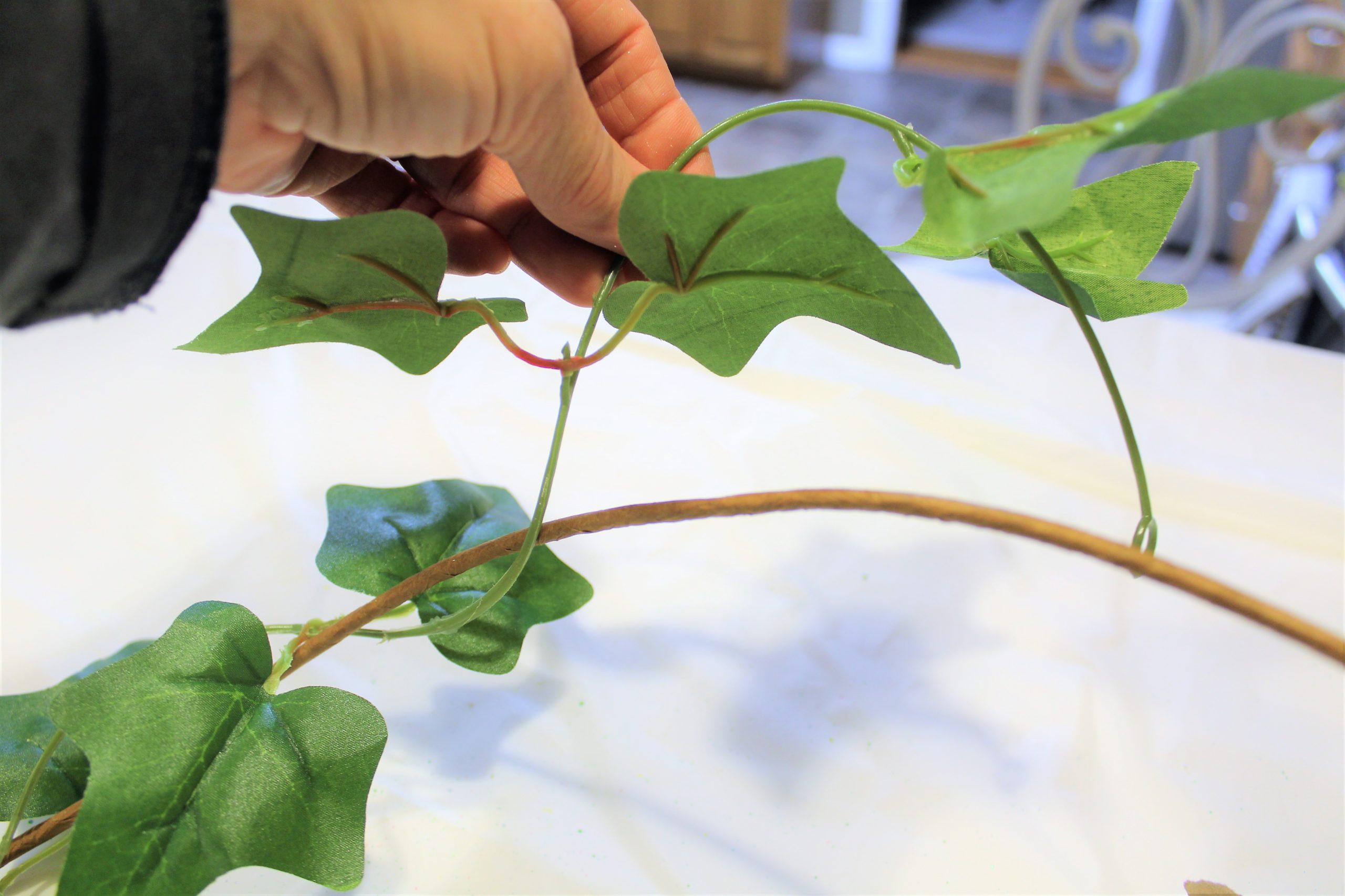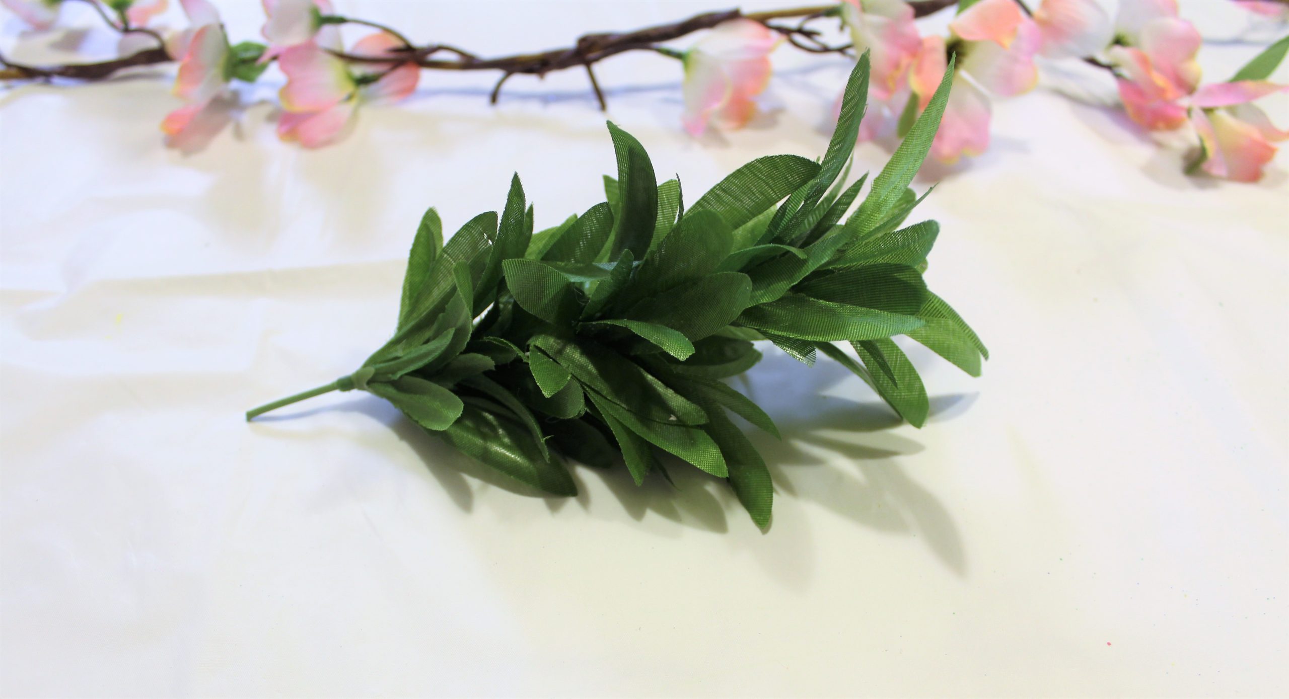 For my followers, you know I never throw anything away. I took the leaves from the baby’s breath stems I didn’t use for the Baby Shower’s floral. Placing them on my garland as well. I attached to the end of the Dogwood bloom stem with some hot glued