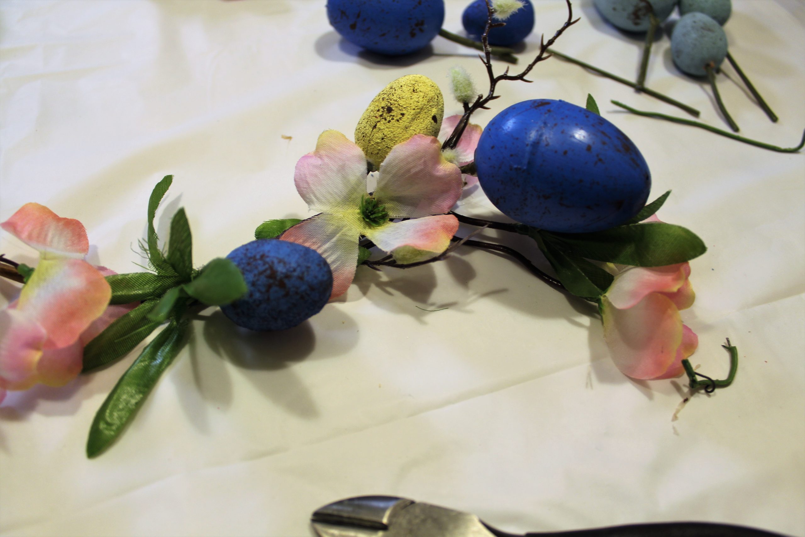 So far here is what my garland looks like. I am going to put the garland to the side and work on my eggs.