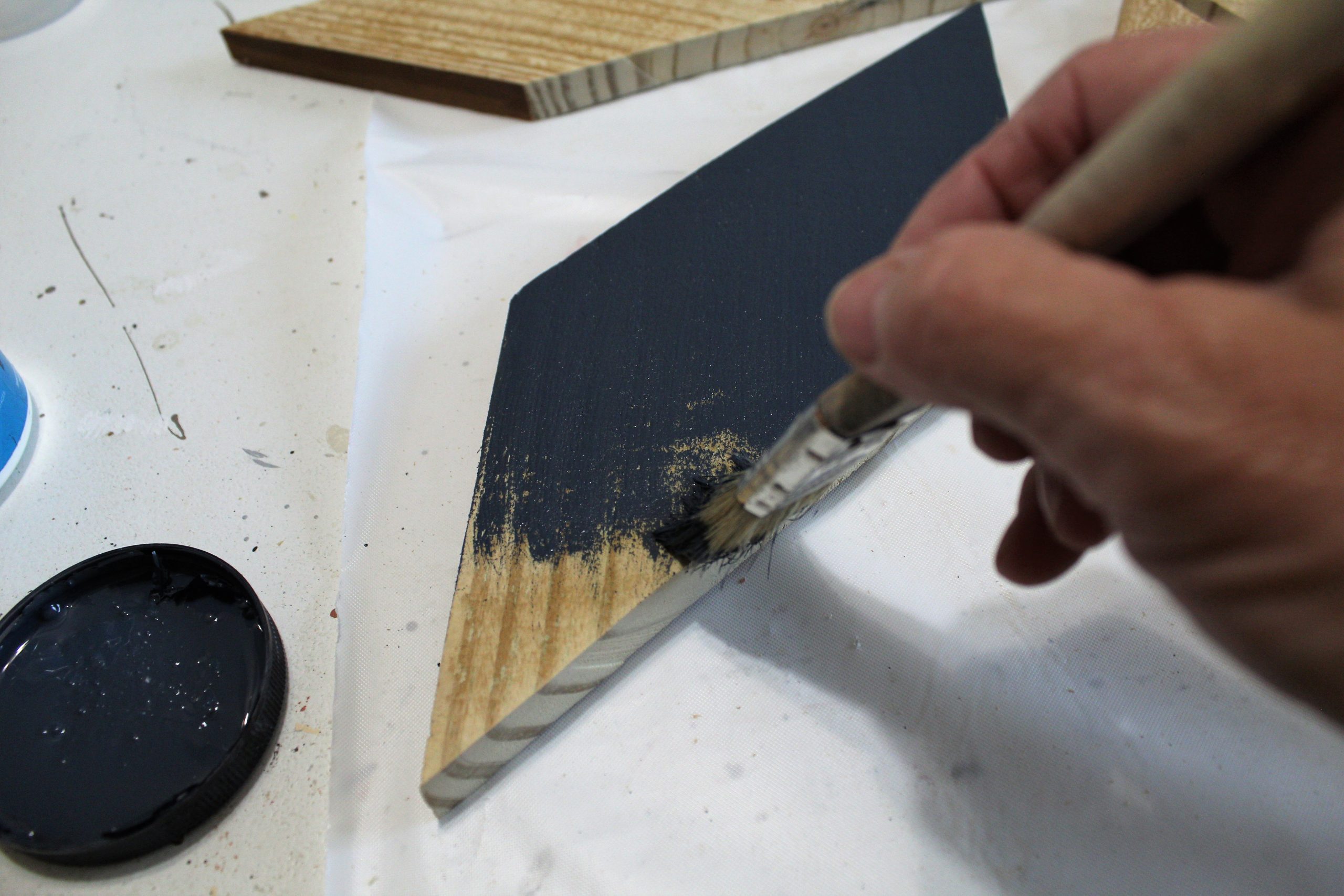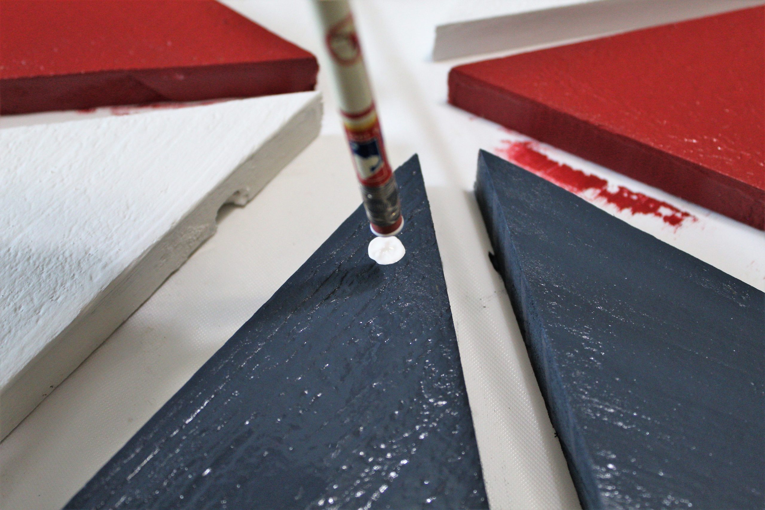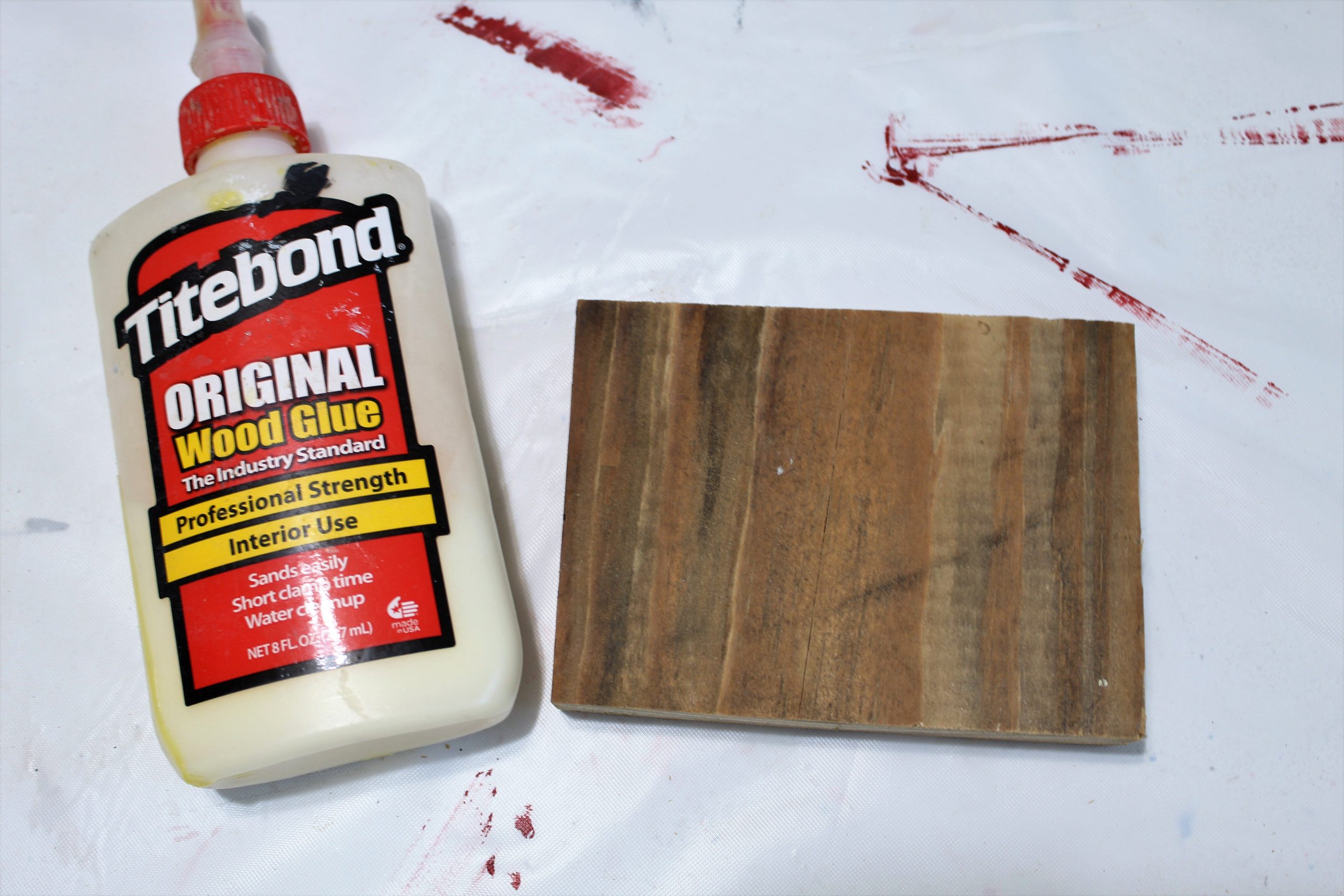 Let the paint dry thoroughly. To attach your pieces together, I added wood glue to the scrap piece of wood.