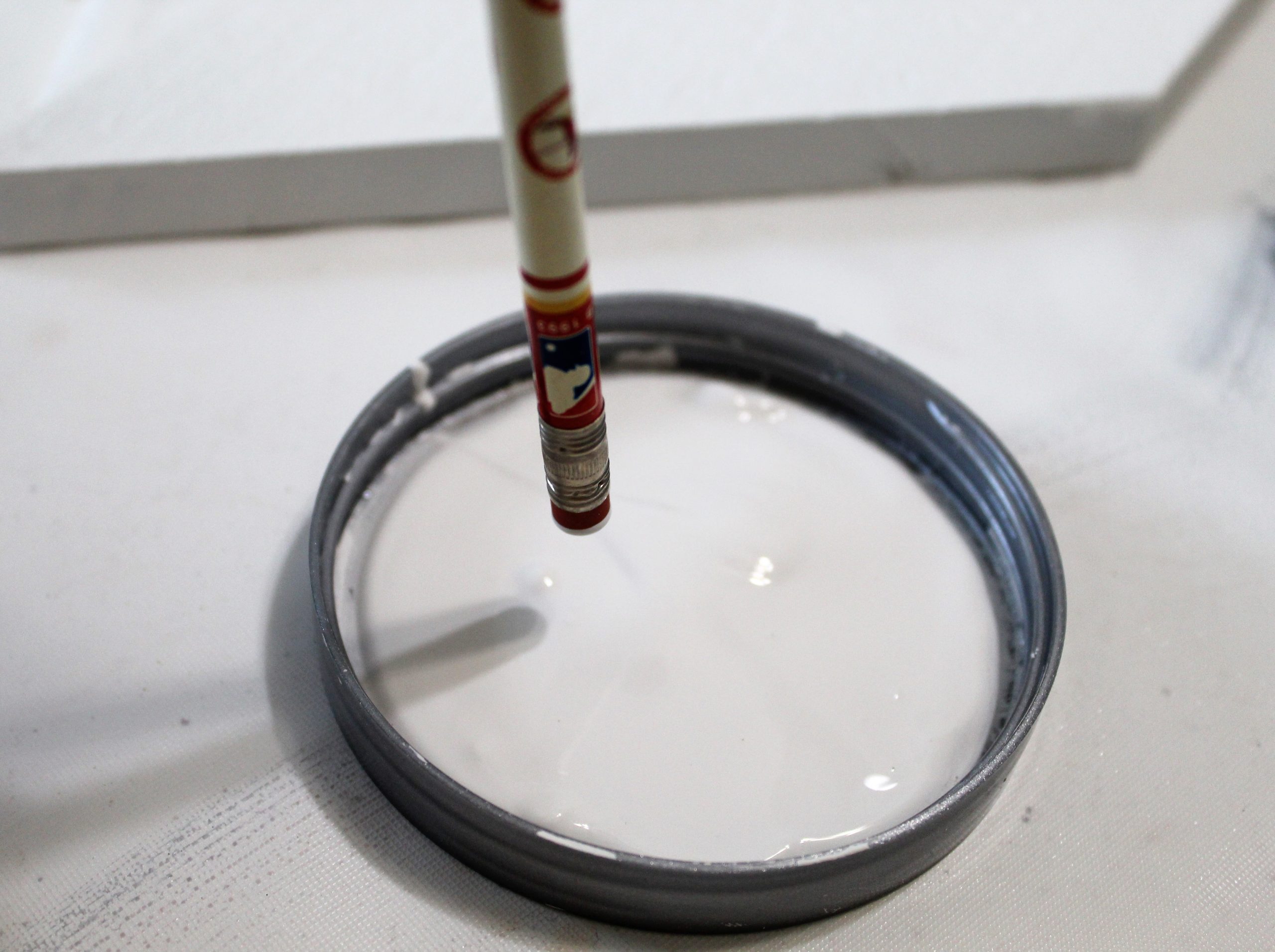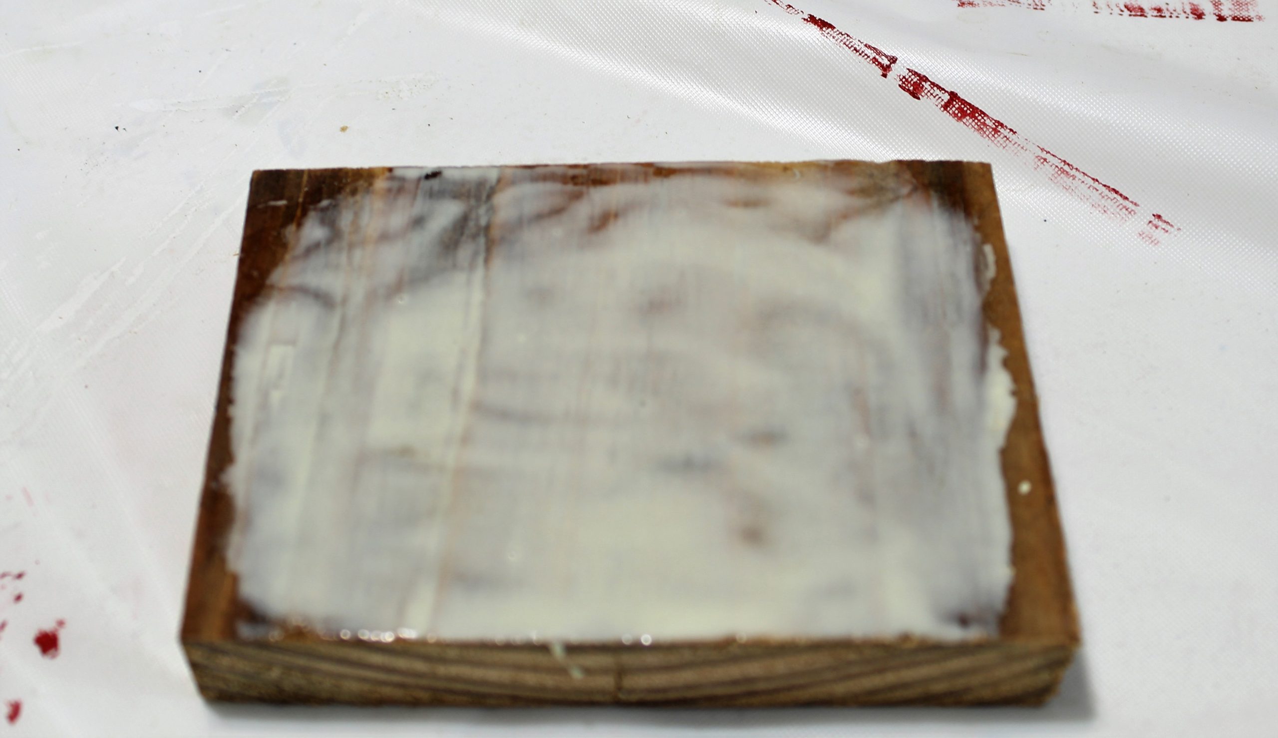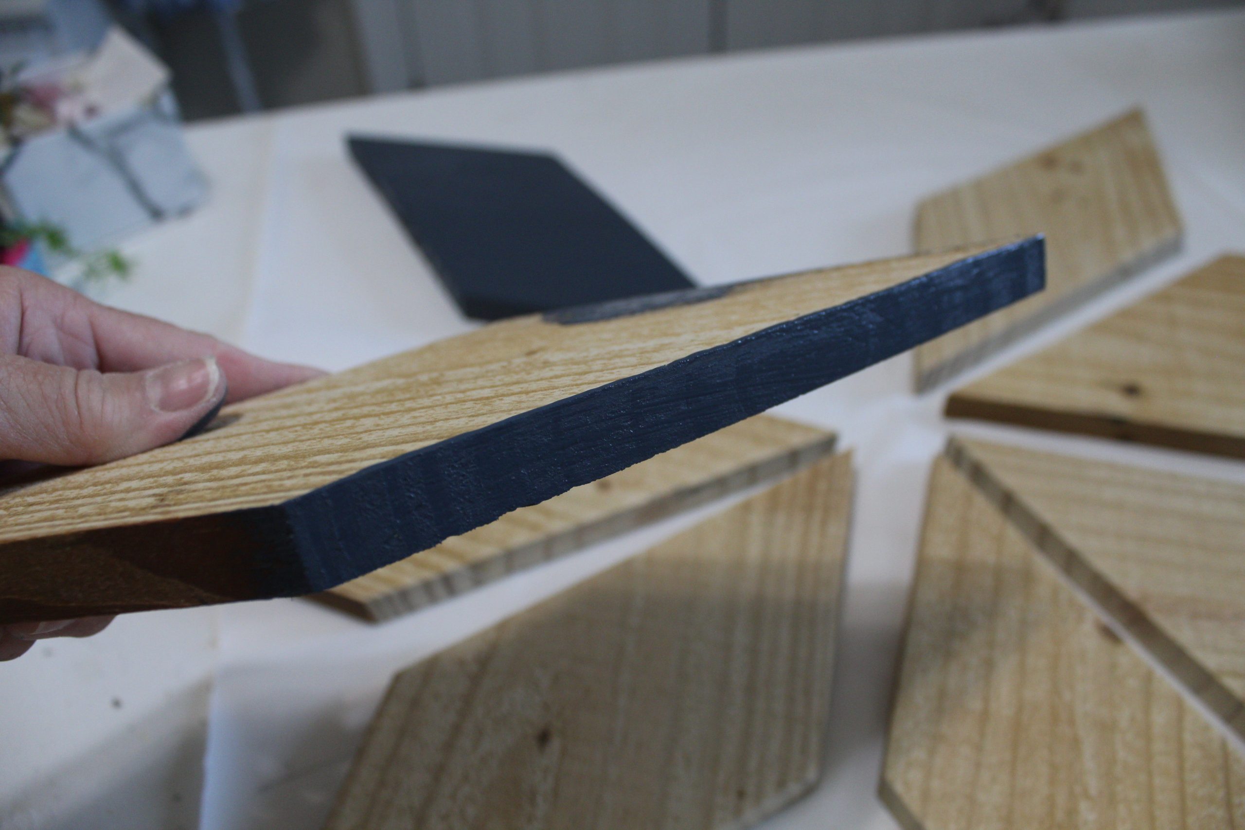 Let the paint dry thoroughly. To attach your pieces together, I added wood glue to the scrap piece of wood.