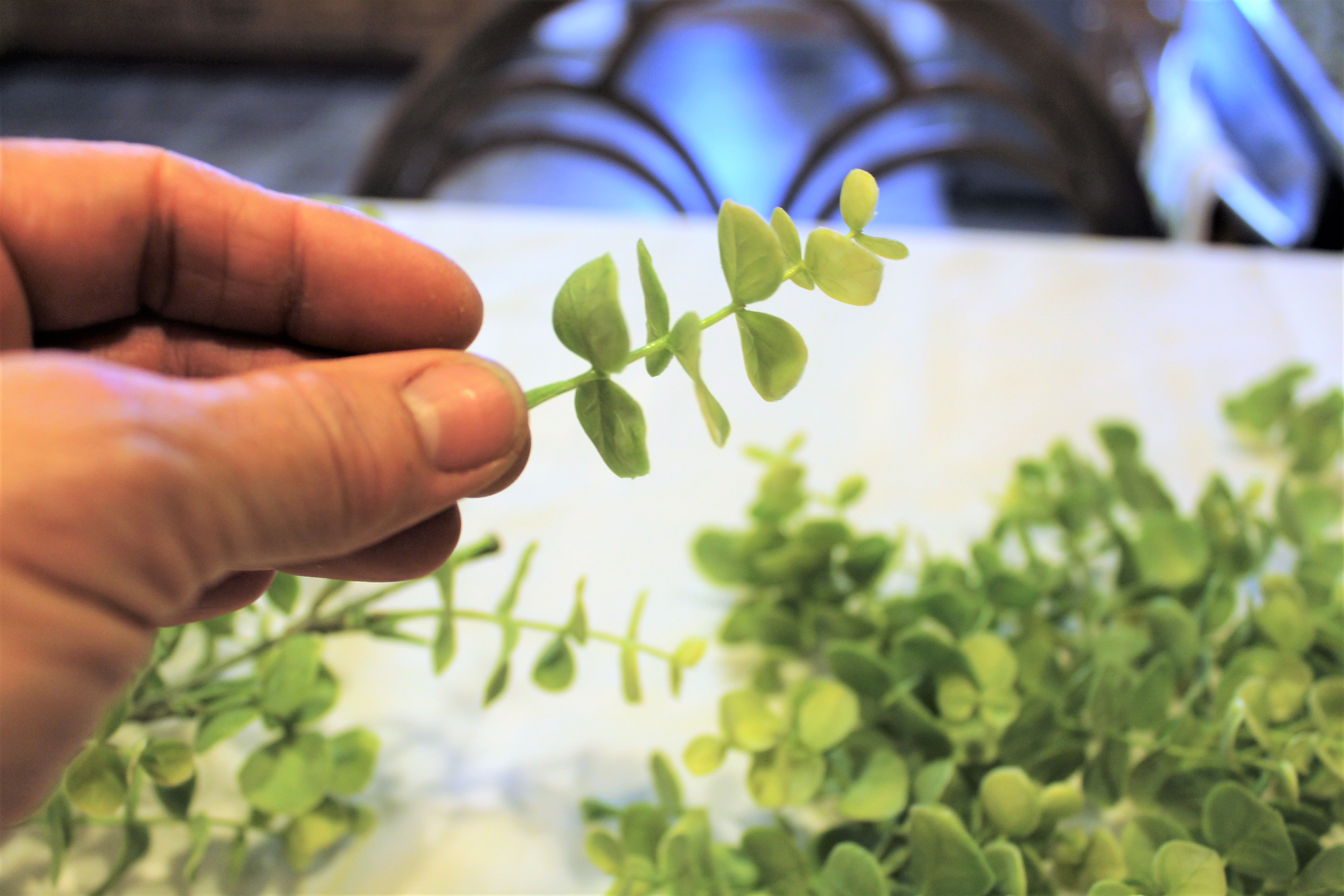 I took the eucalyptus bundle and cut into a single twig.