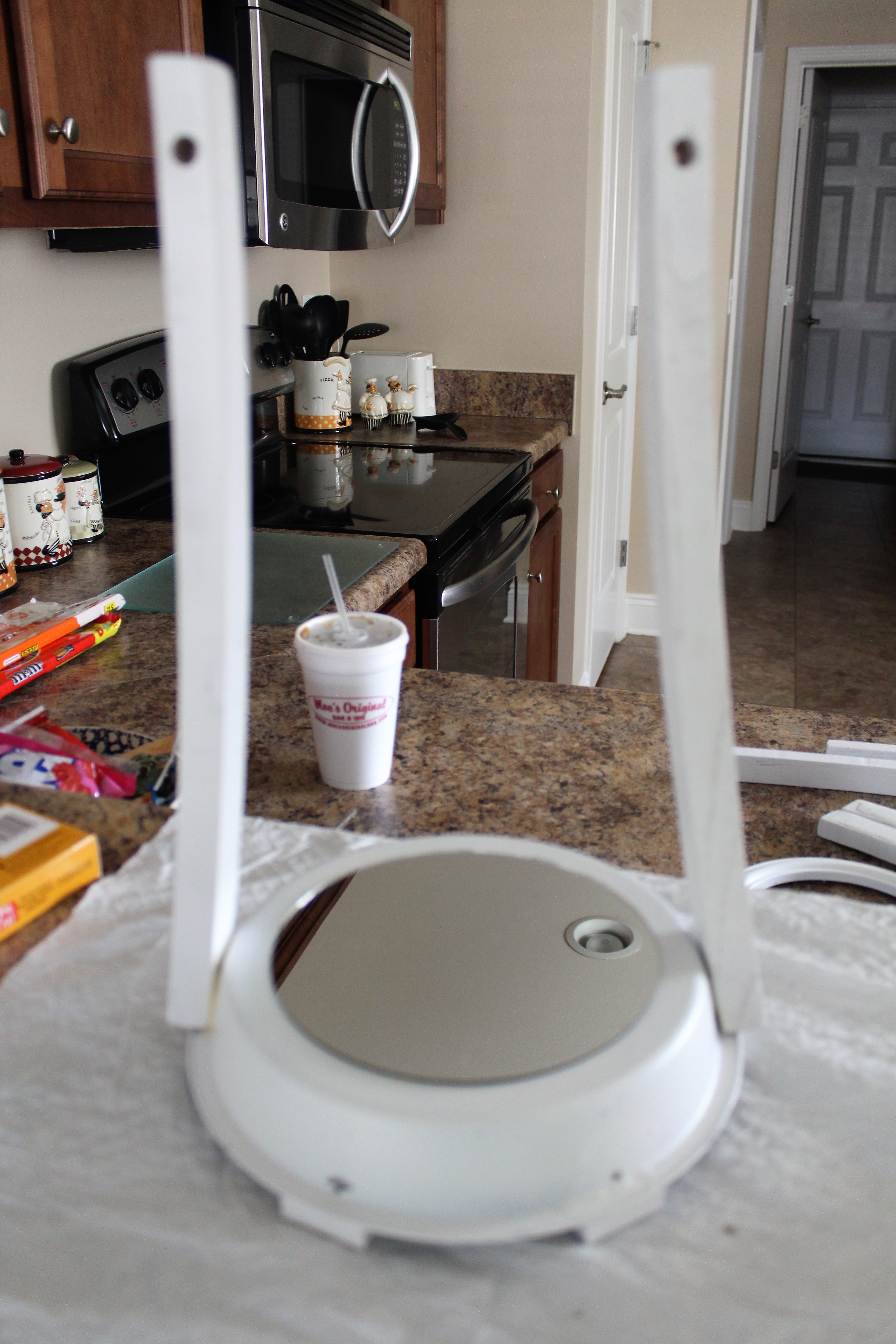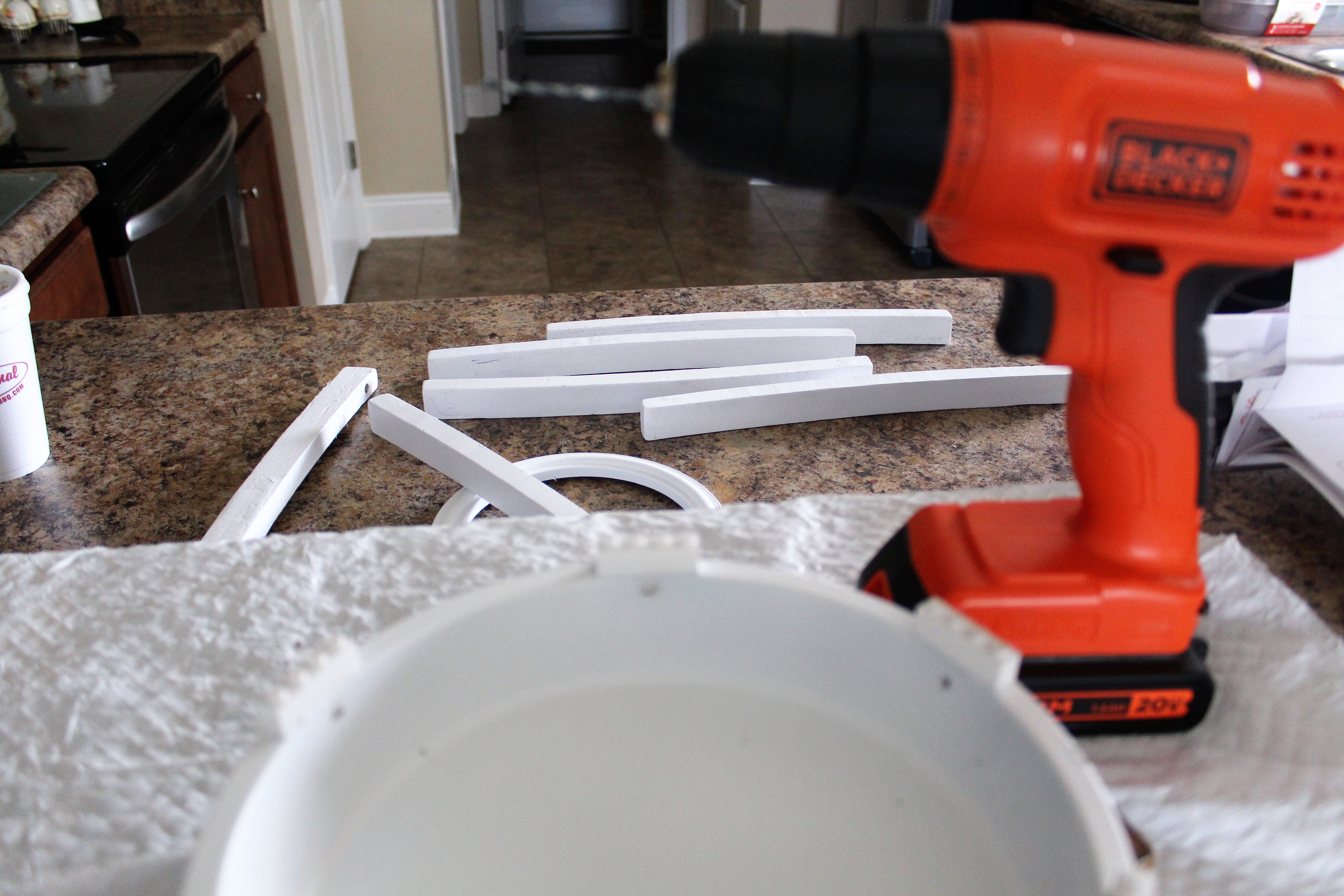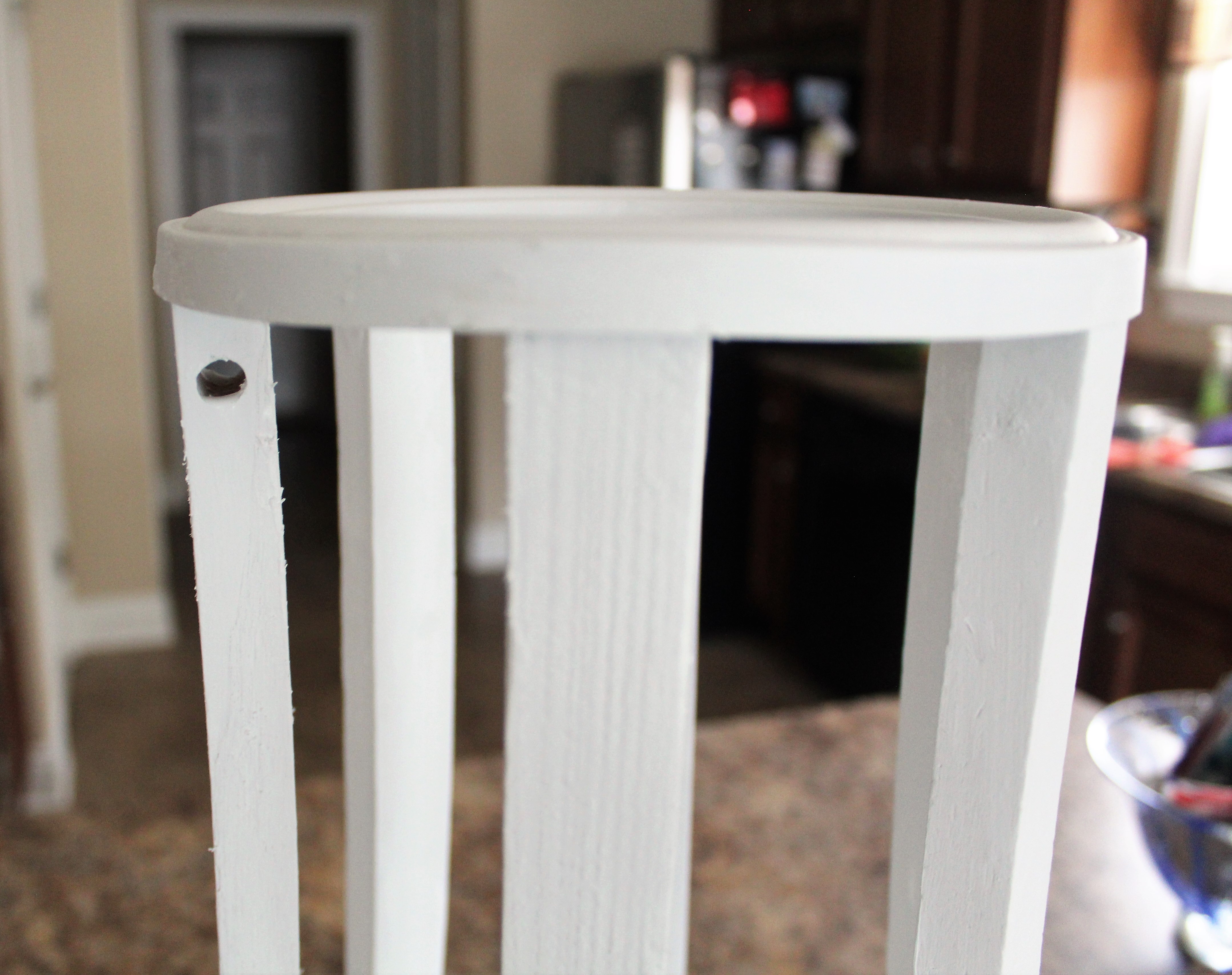 I brought all of the items indoors after spray painting because it was so hot outside. Let them dry for several hours.