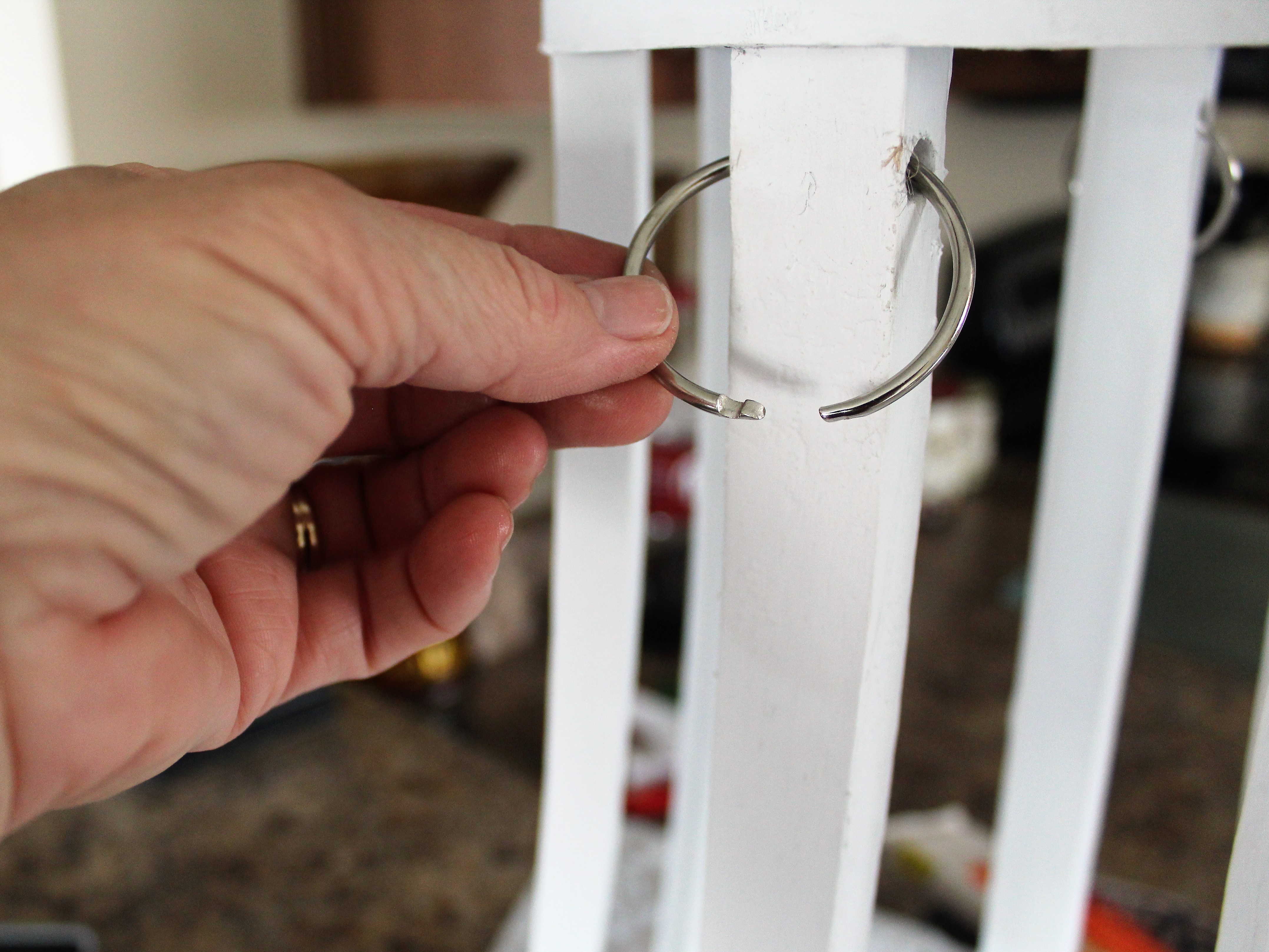 Taking my album rings and placing them in the holes on each side of my lantern. See it worked perfect having left the two holes unfilled.