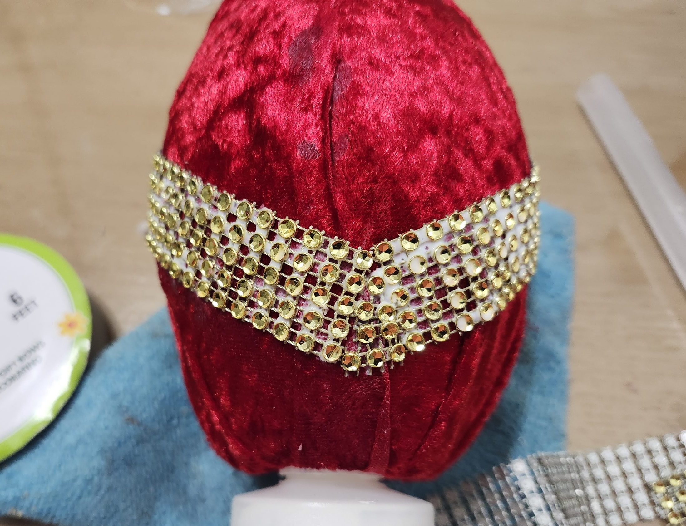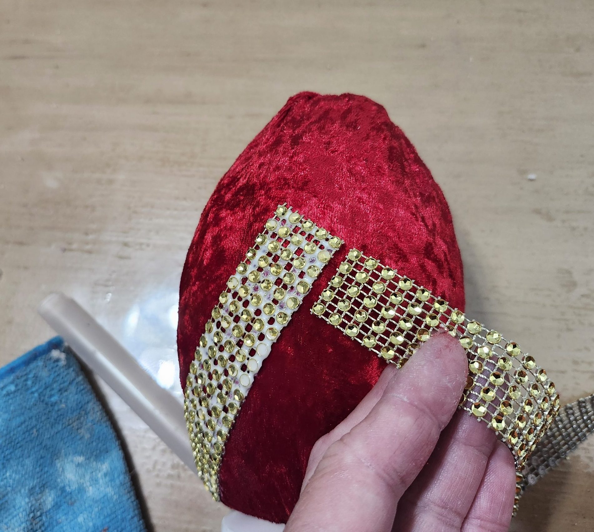Giving it some type of design, I cut the diamond ribbon into a single strip, I made three strips at the top of the point.