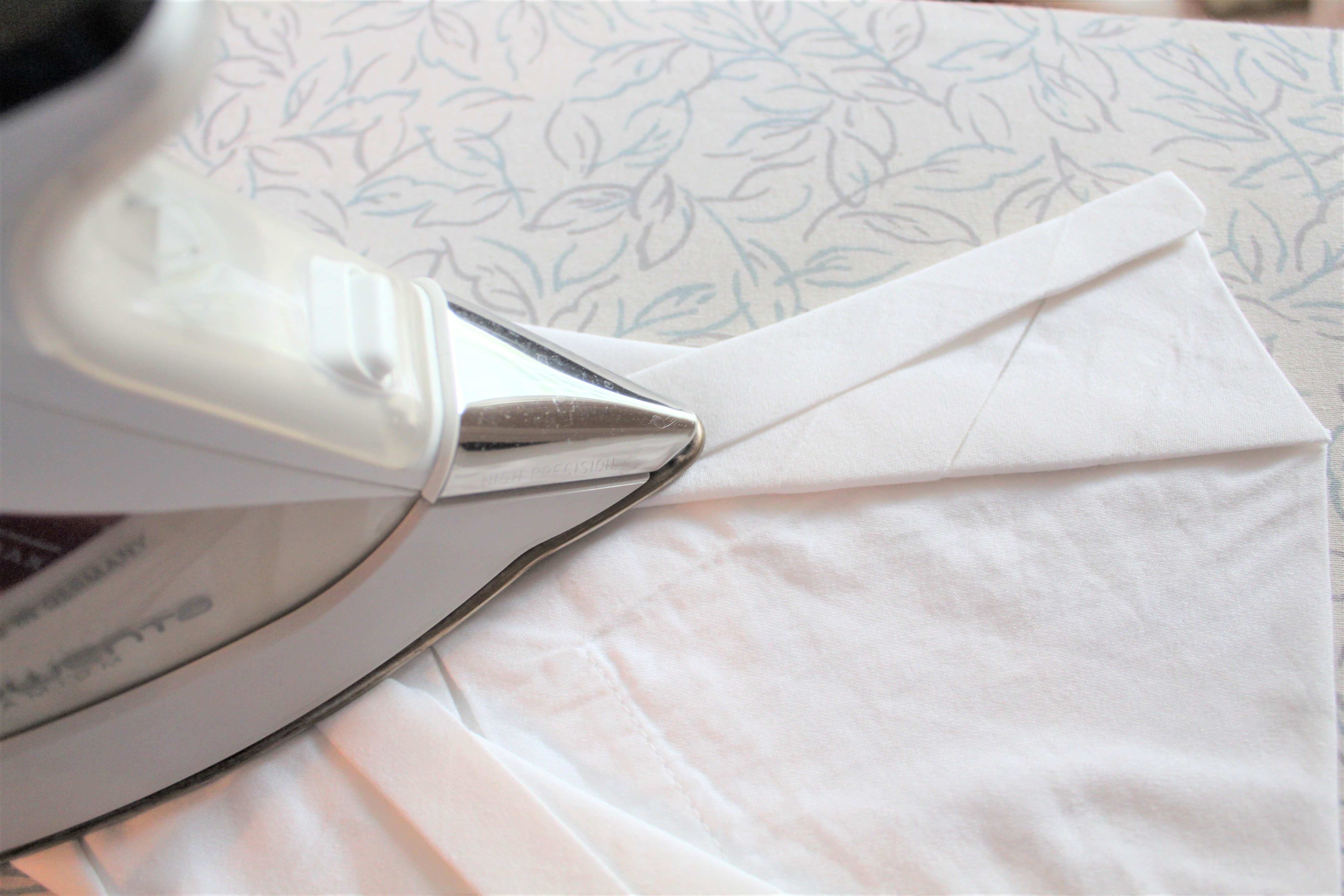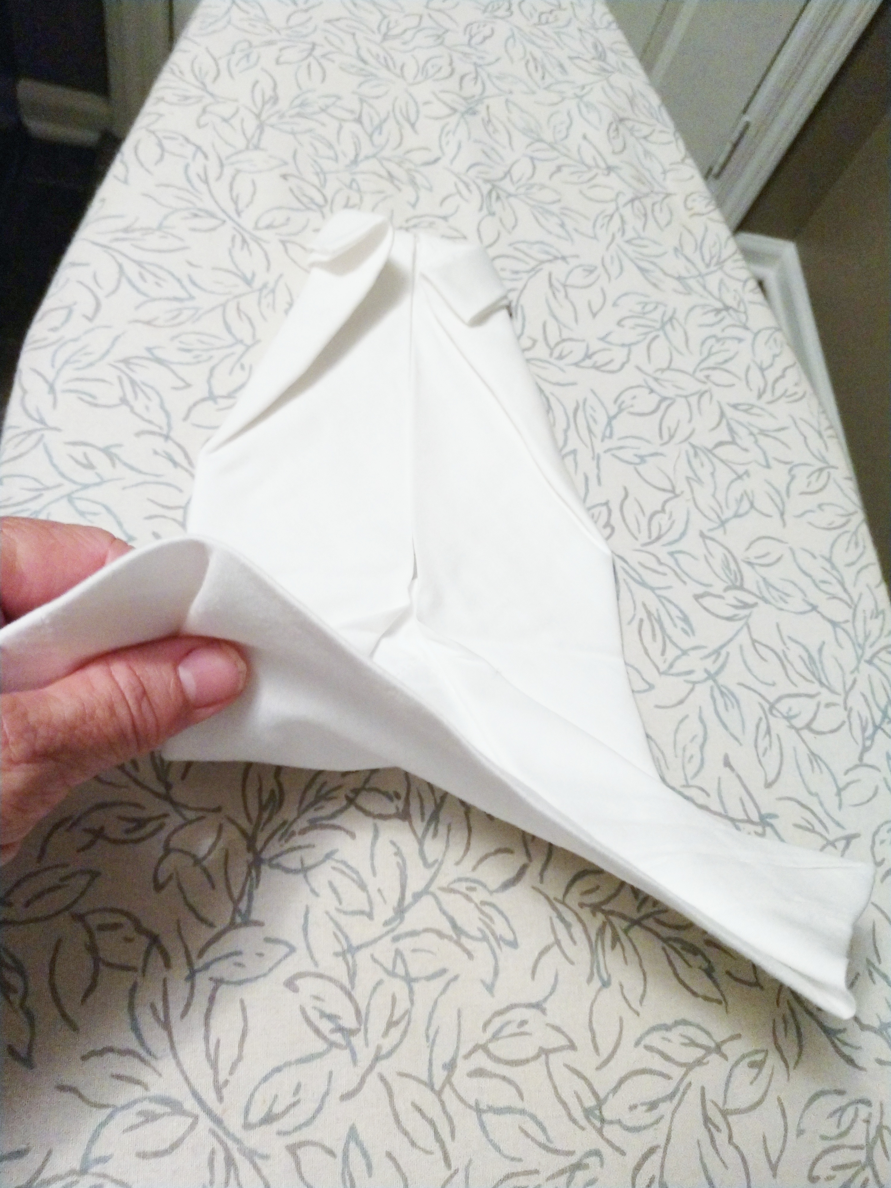 So grab your napkins and start folding with me! Oh…..before we start you will have to grab your iron and ironing board. YES….you must use an iron with this fold. You will truly appreciate the end results!