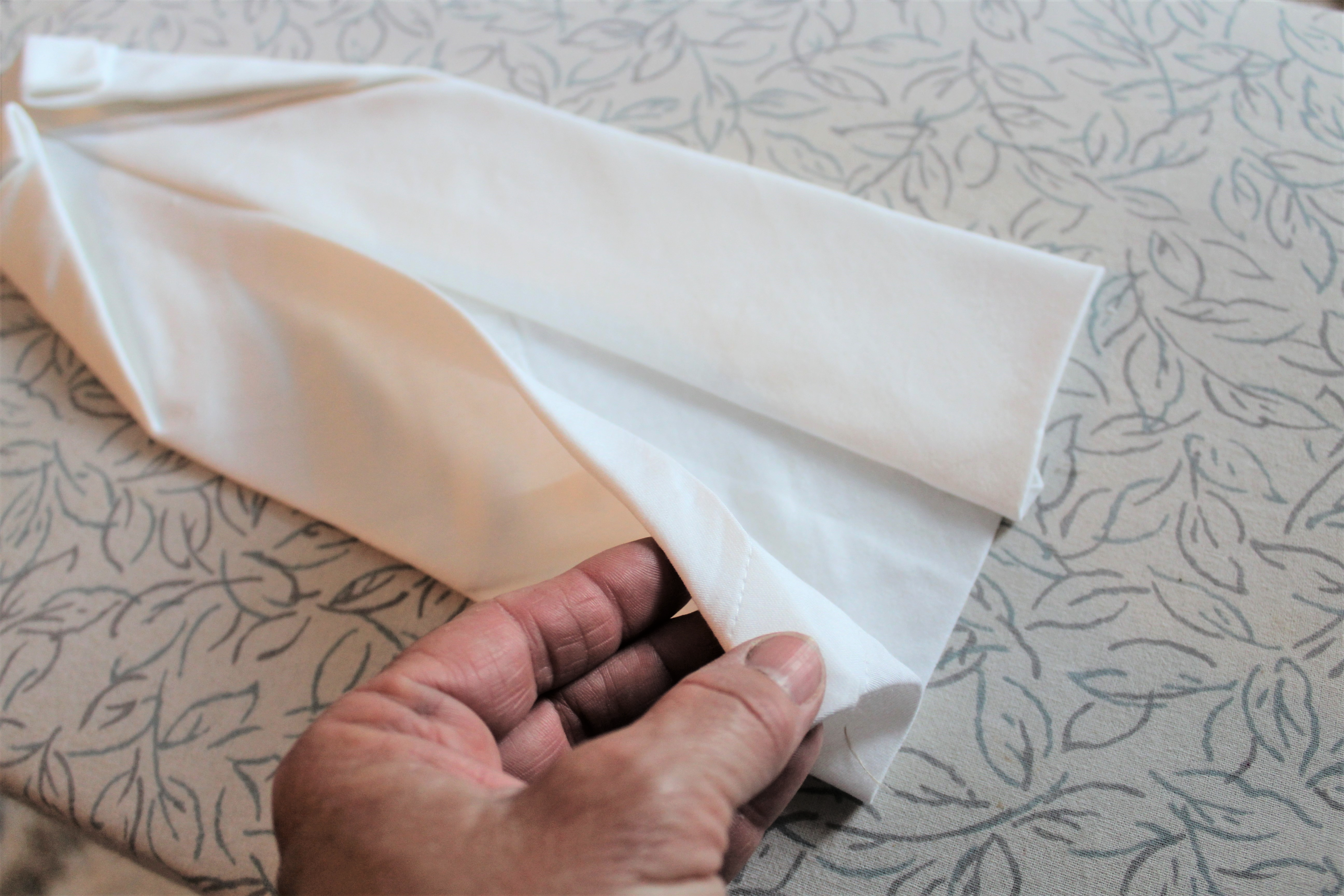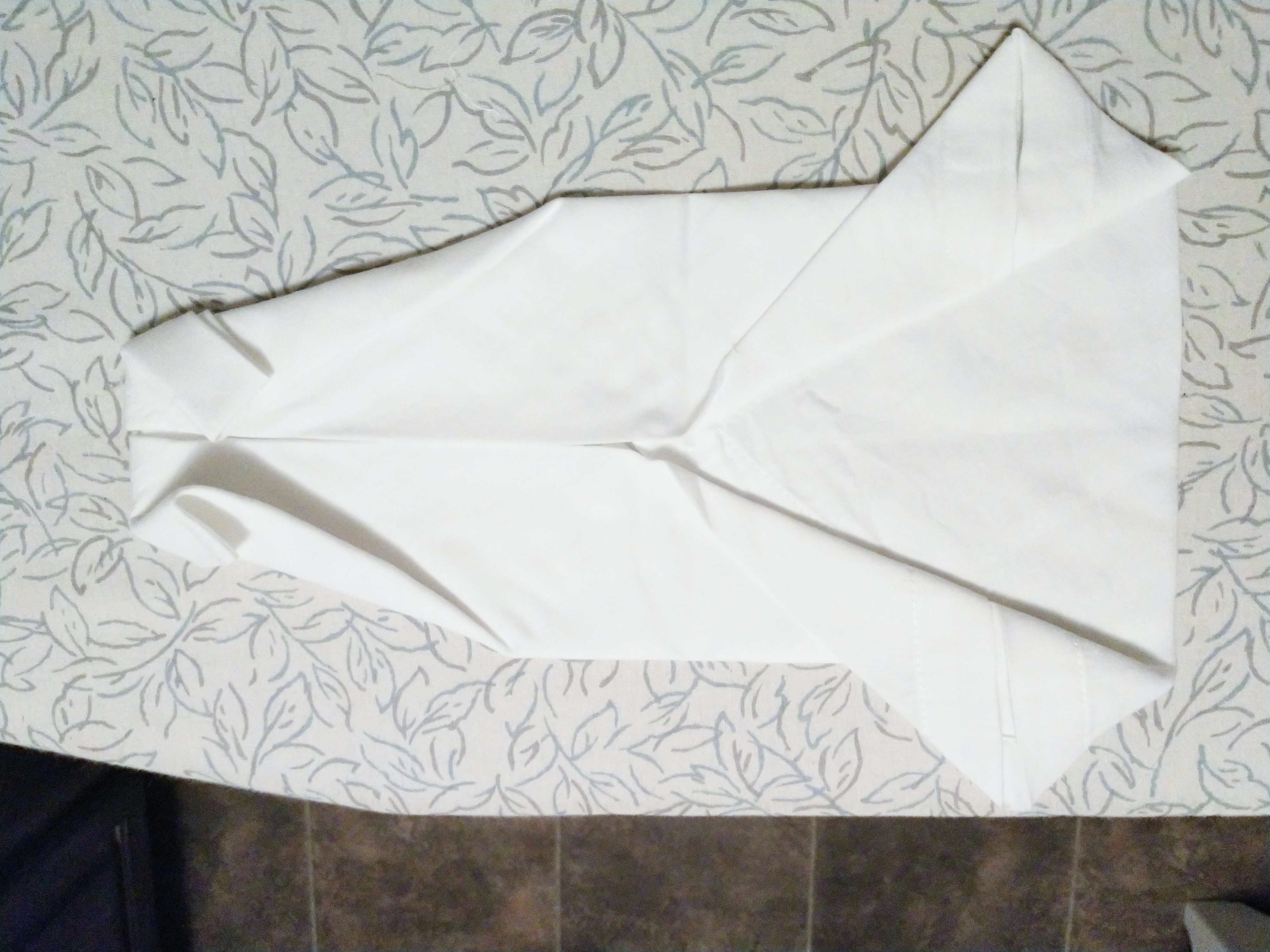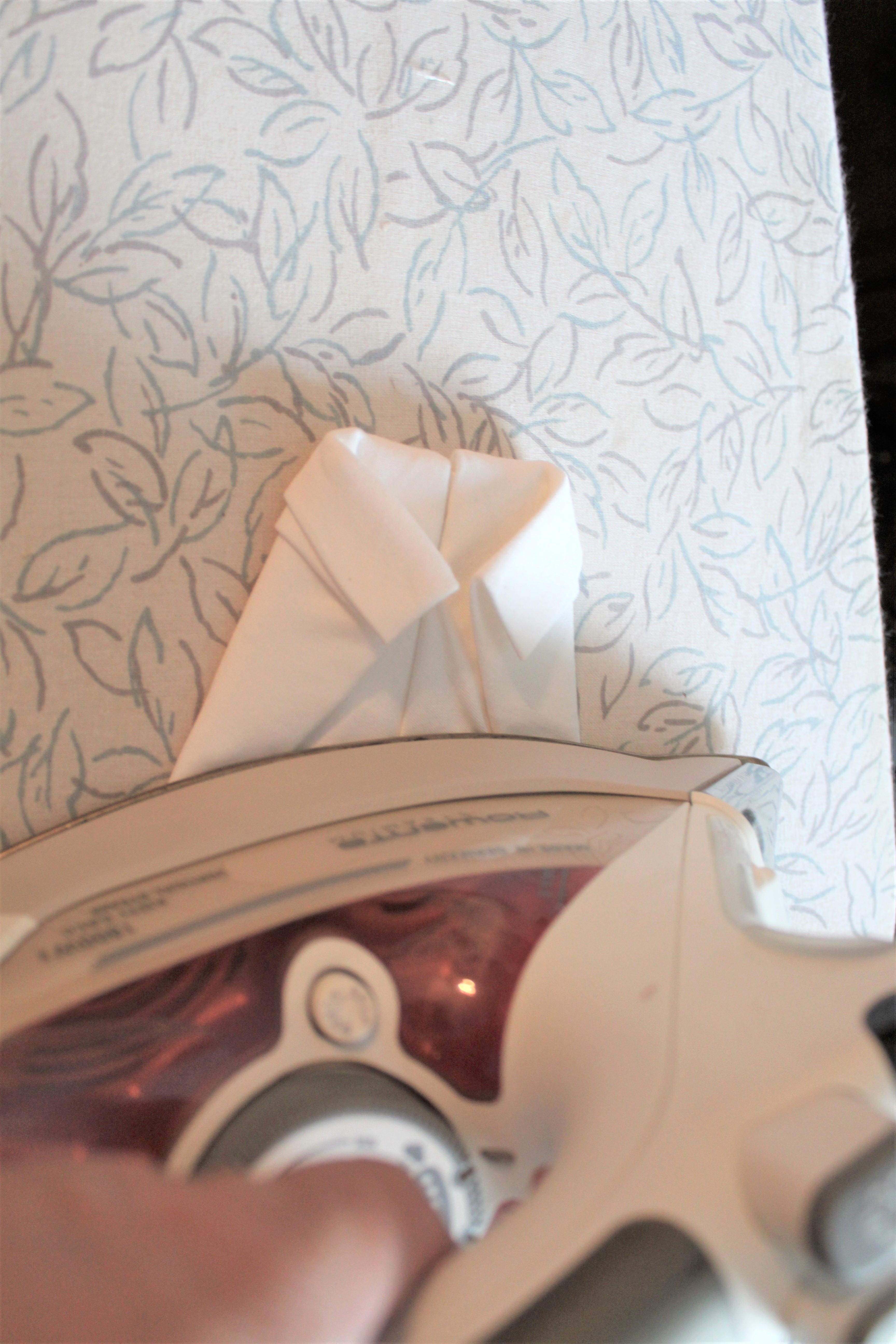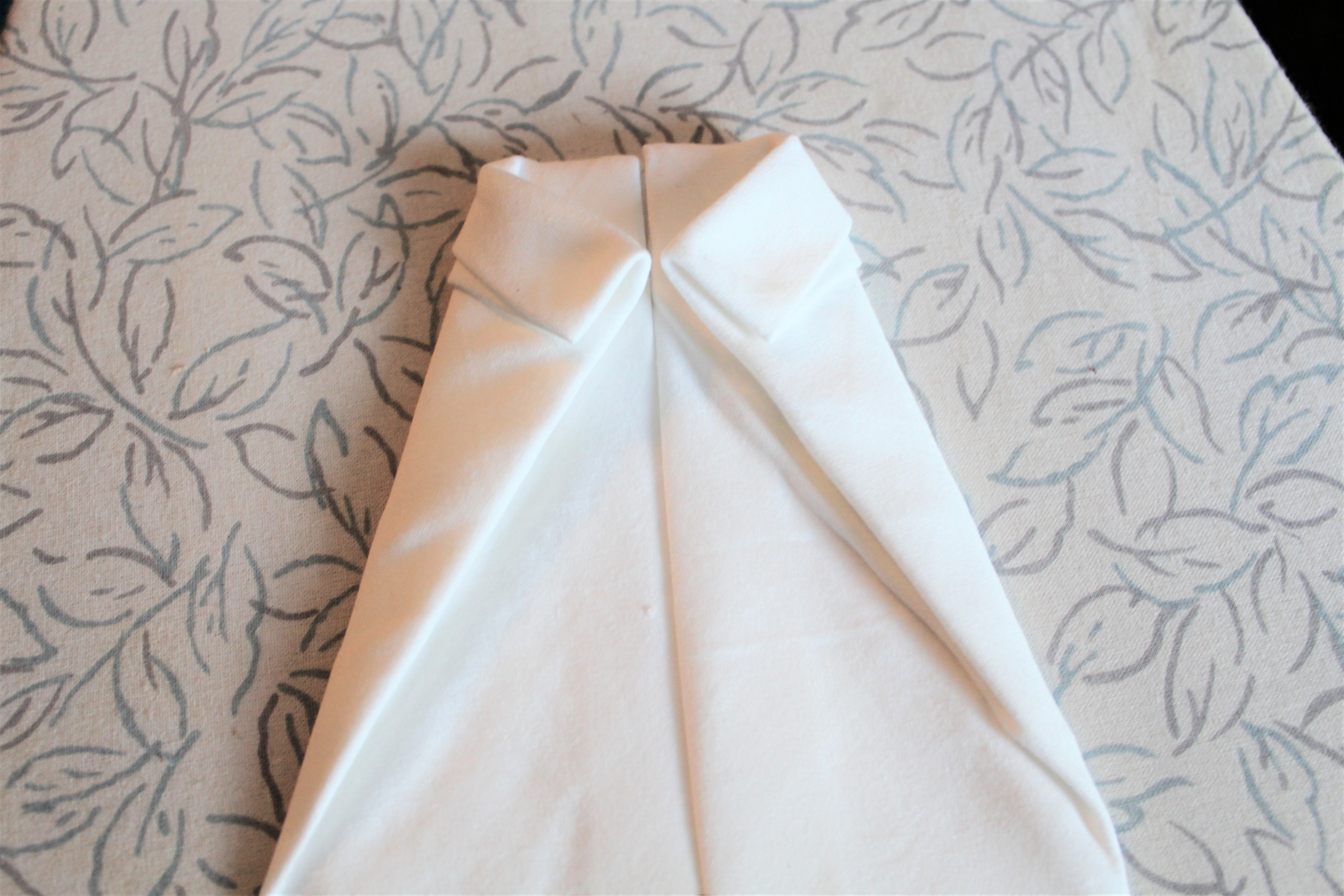 Now take the bottom of the napkin and fold it up to the top of the collar. PRESS!
