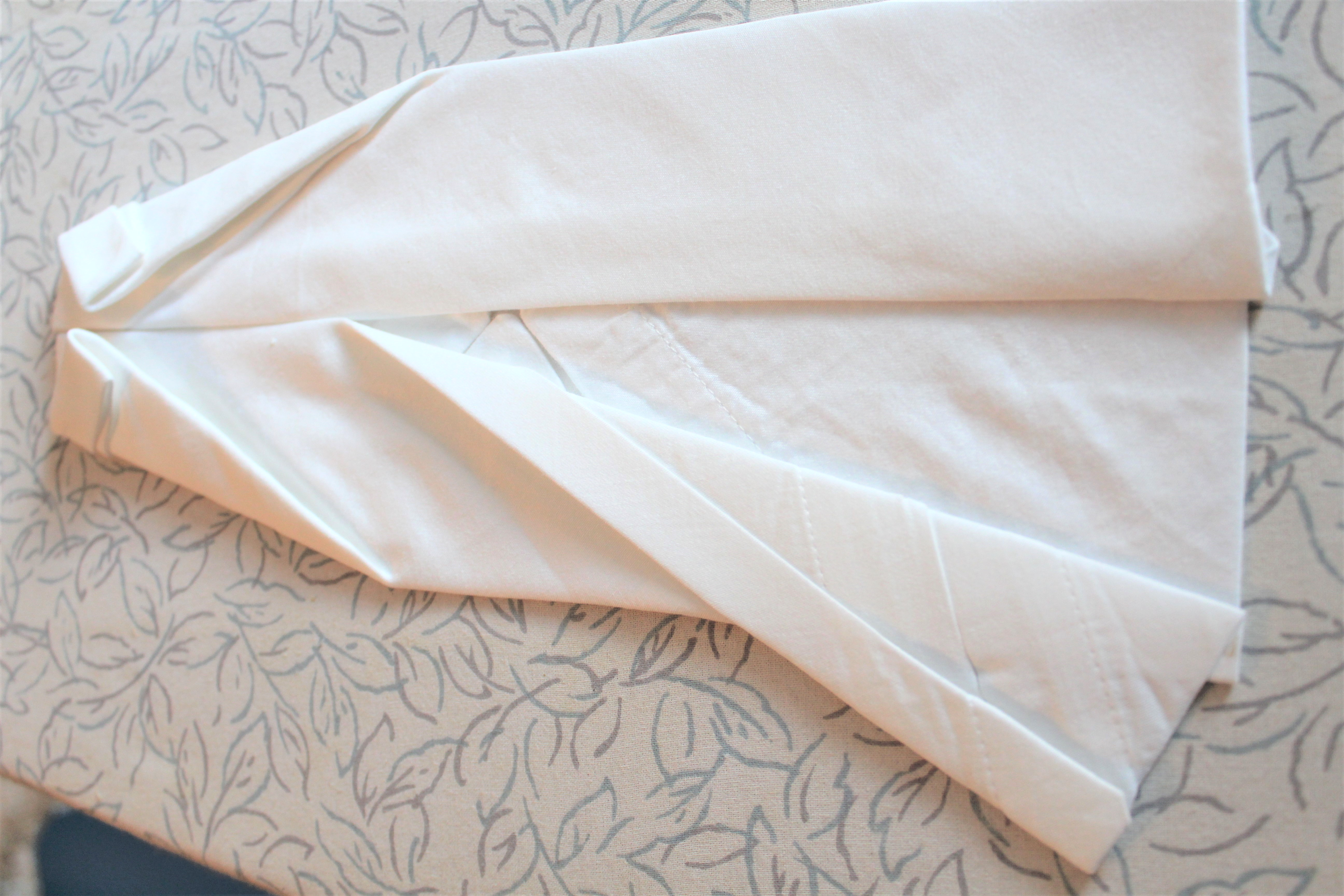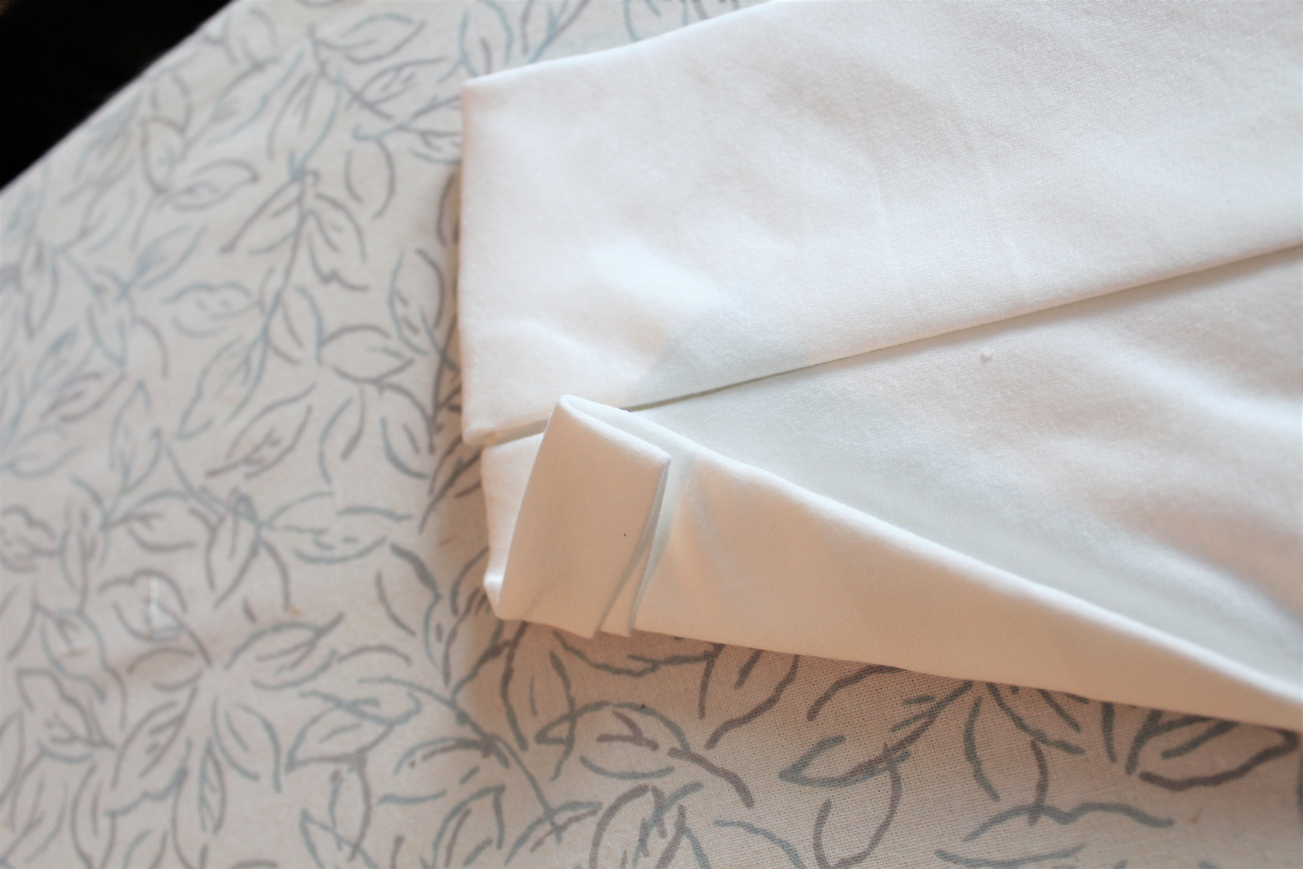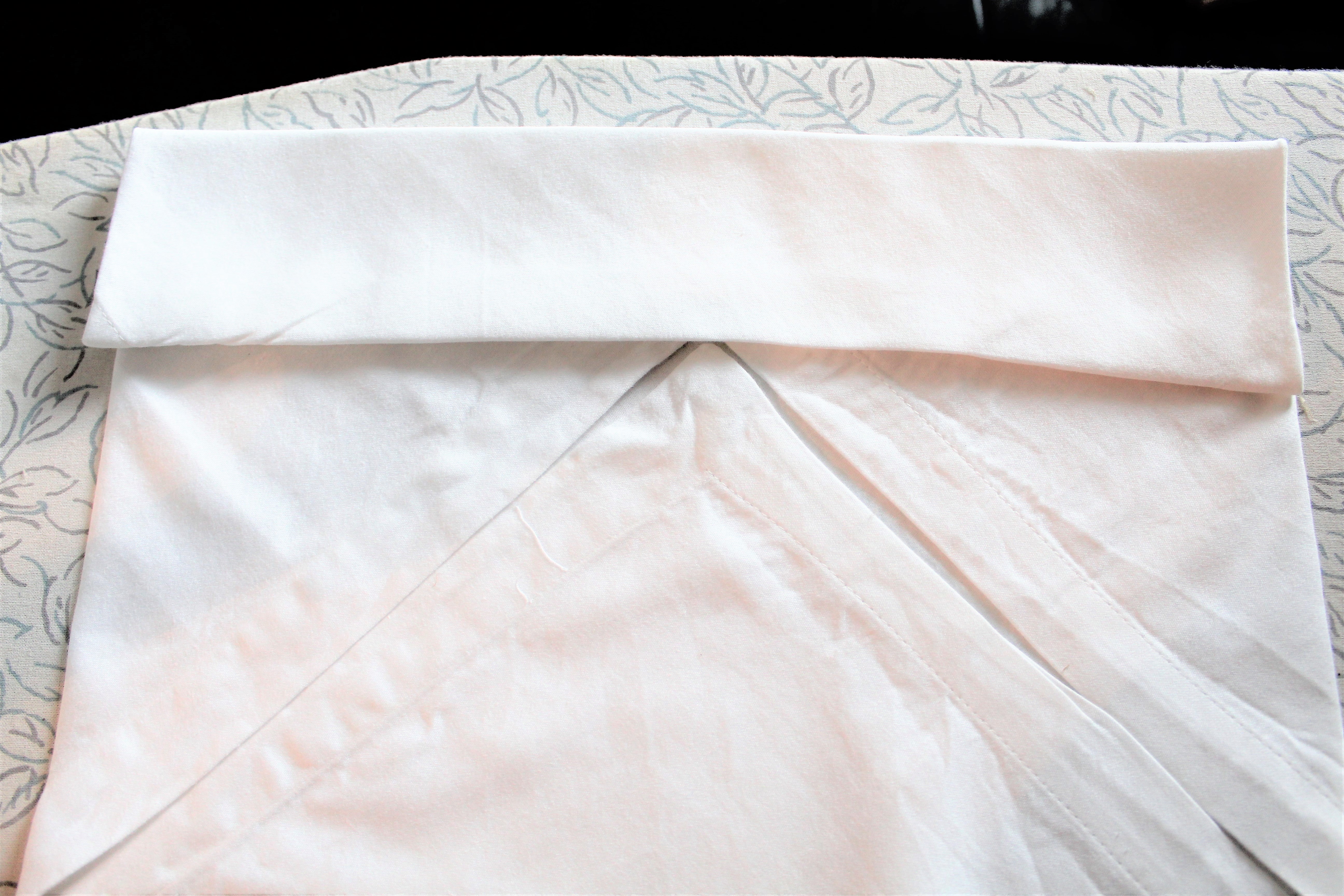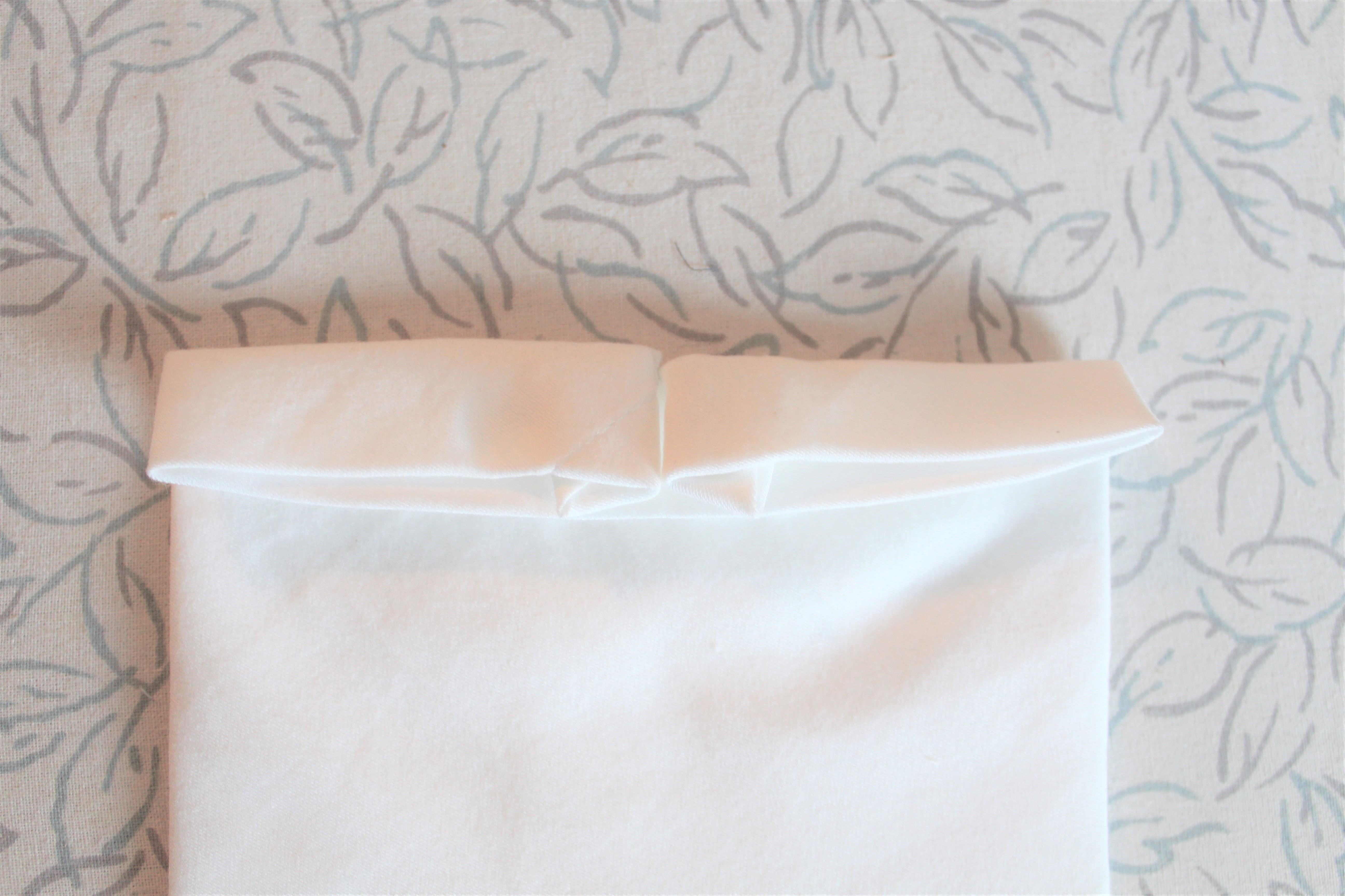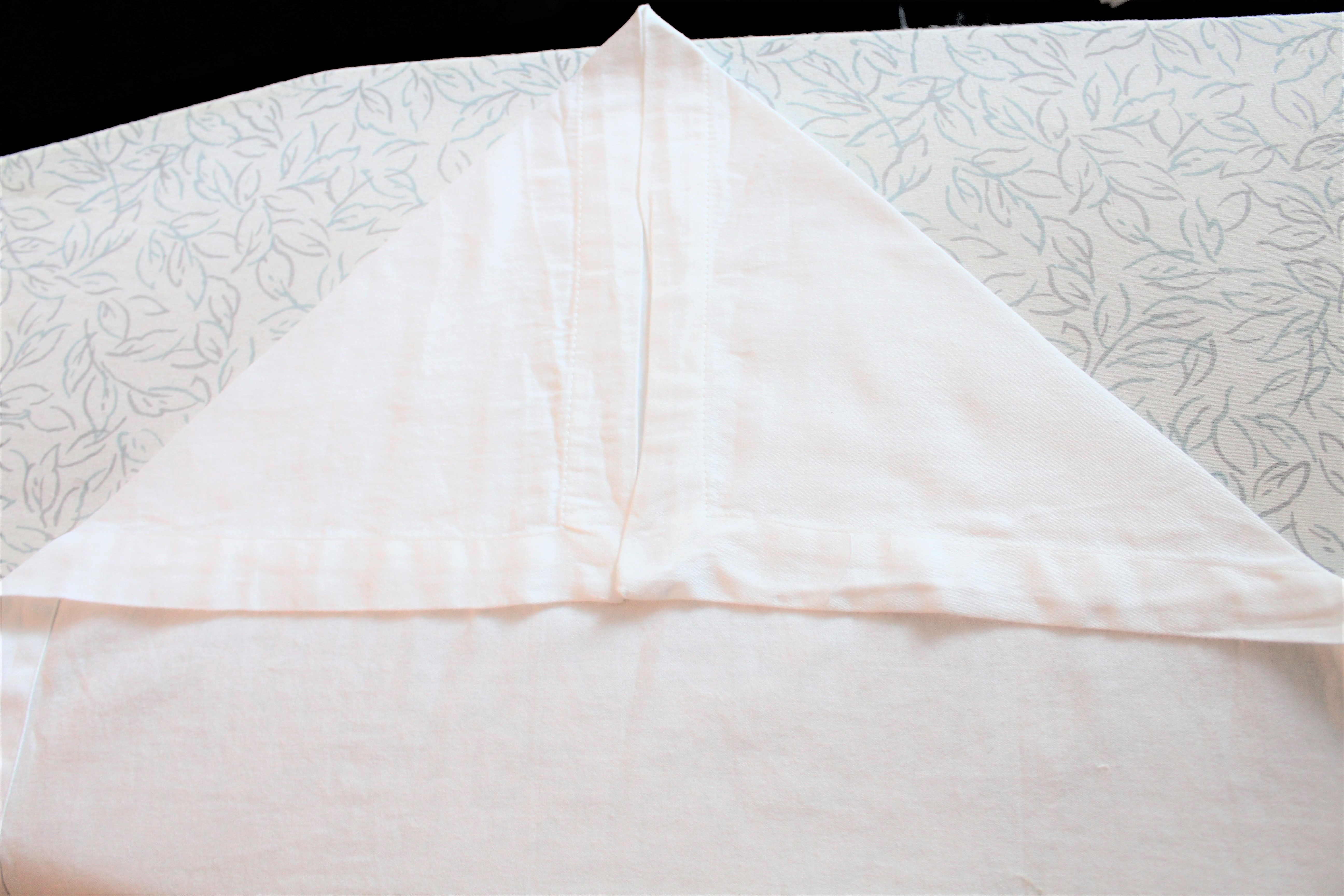 Now take the bottom of the napkin and fold it up to the top of the collar. PRESS!
