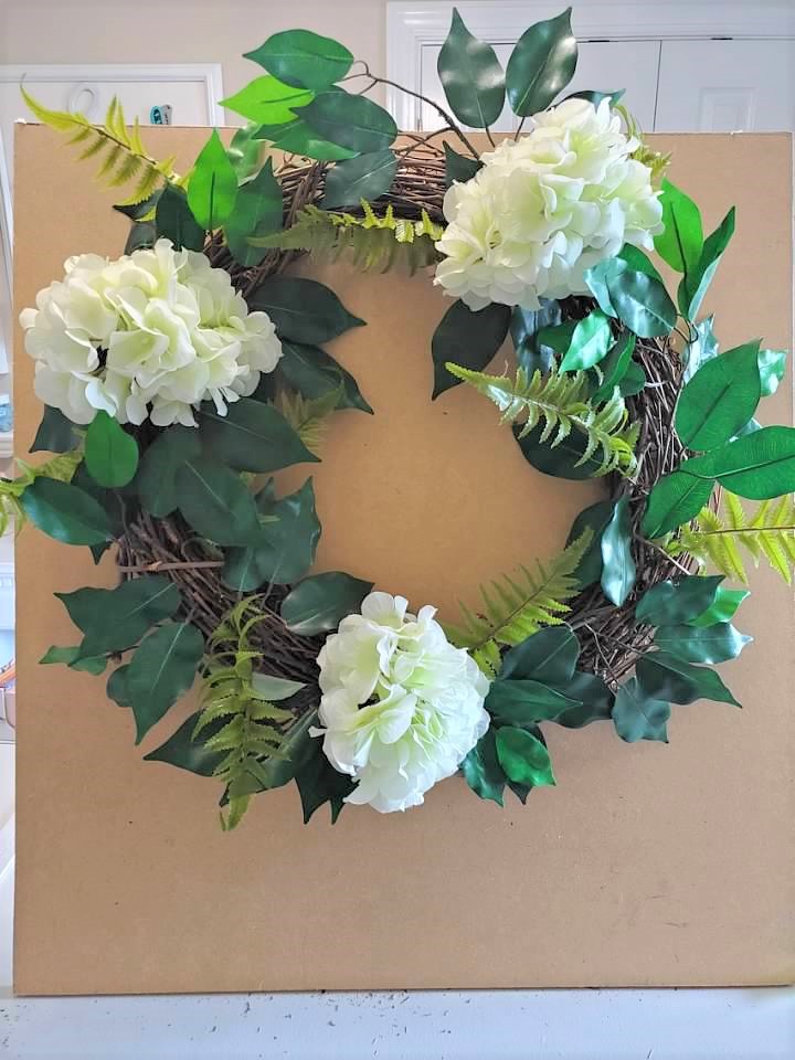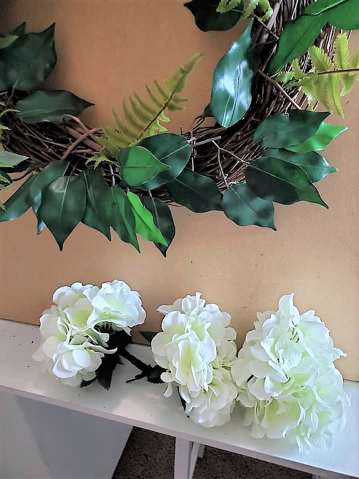Also, the 4th hydrangea pick placed them singly in the wreath