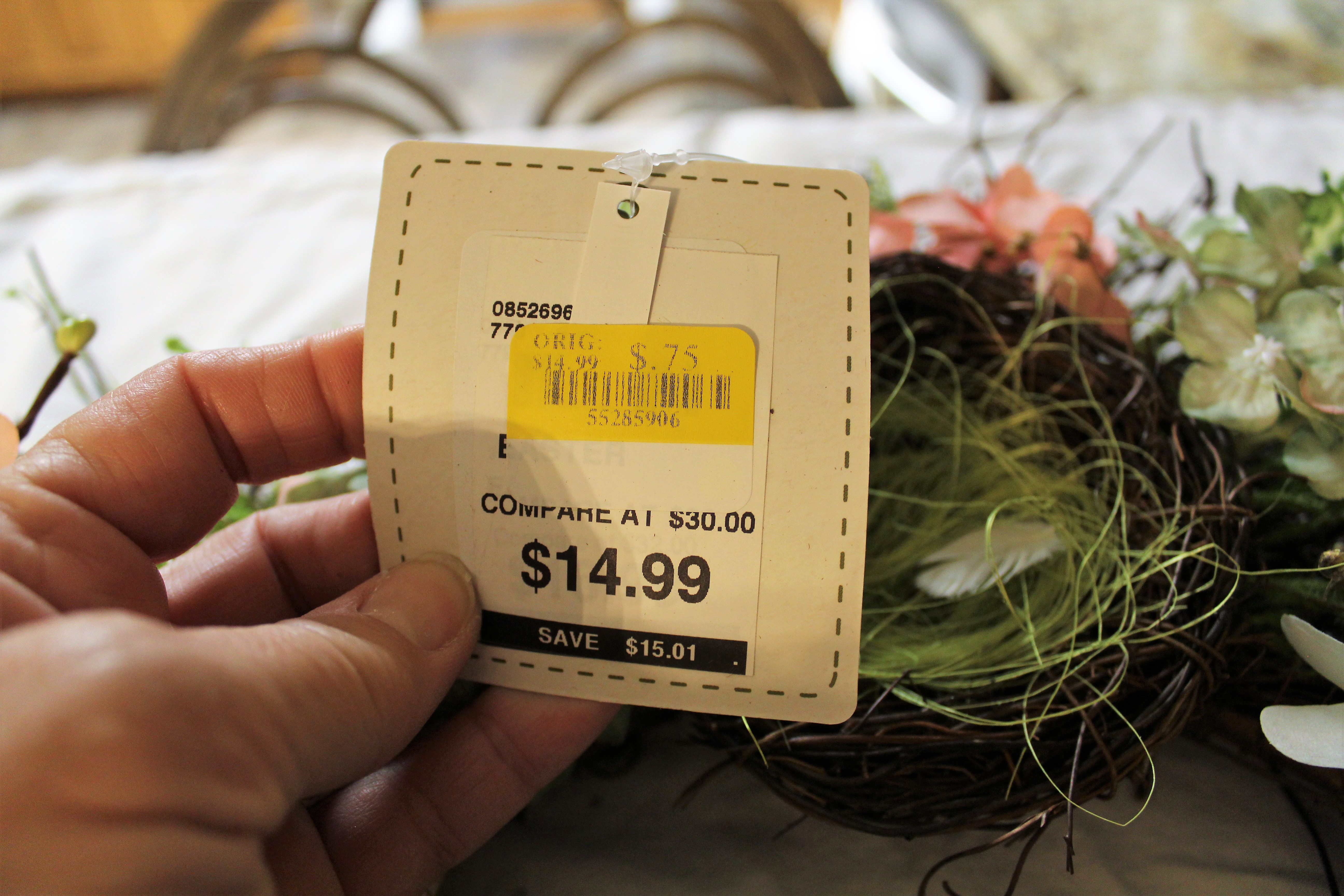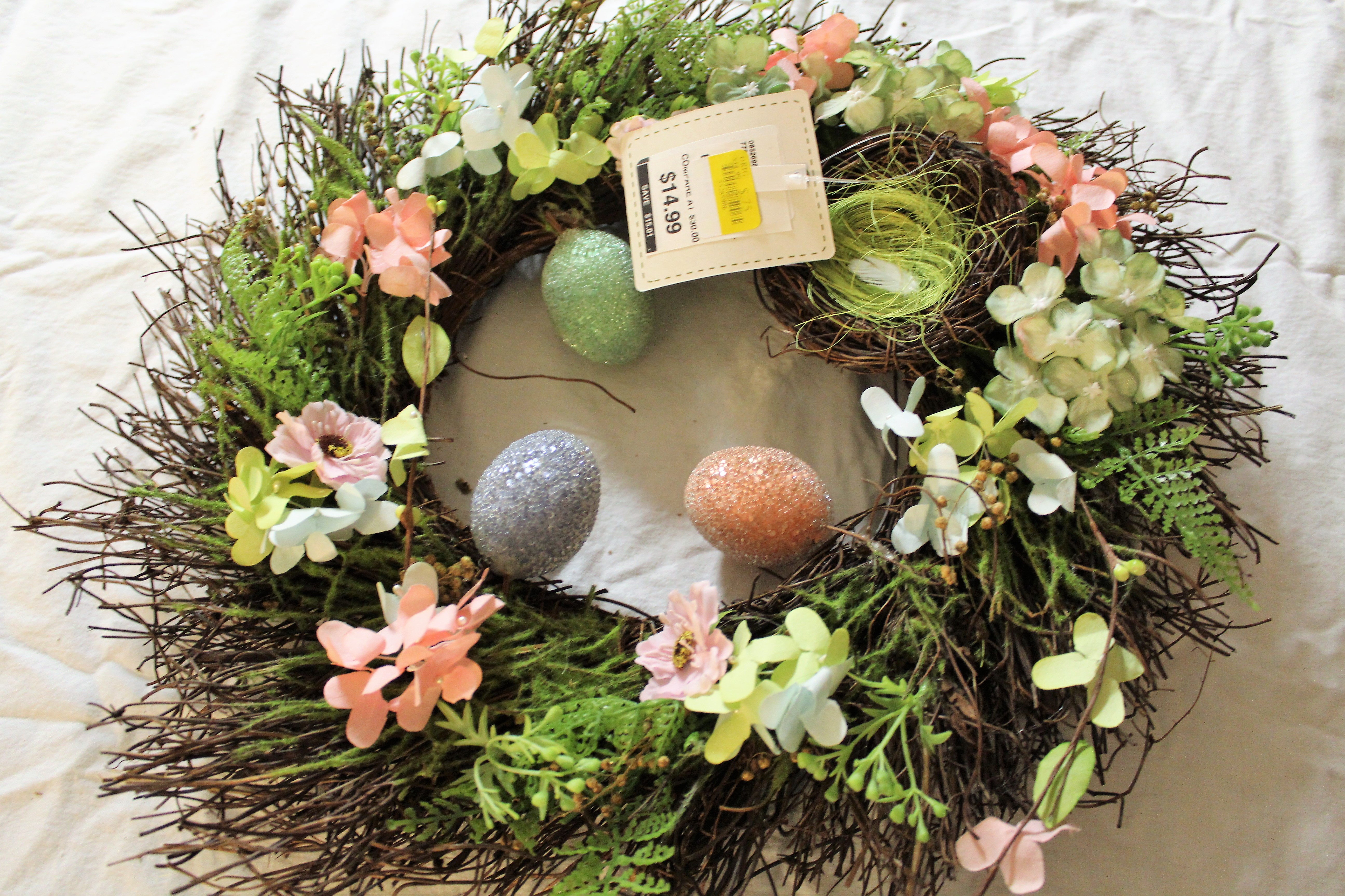 I am using a sunburst wreath that I found on a clearance shelf.  I removed all the Easter decorations from the wreath.  I have all if it saved for future DIYS. 🙂