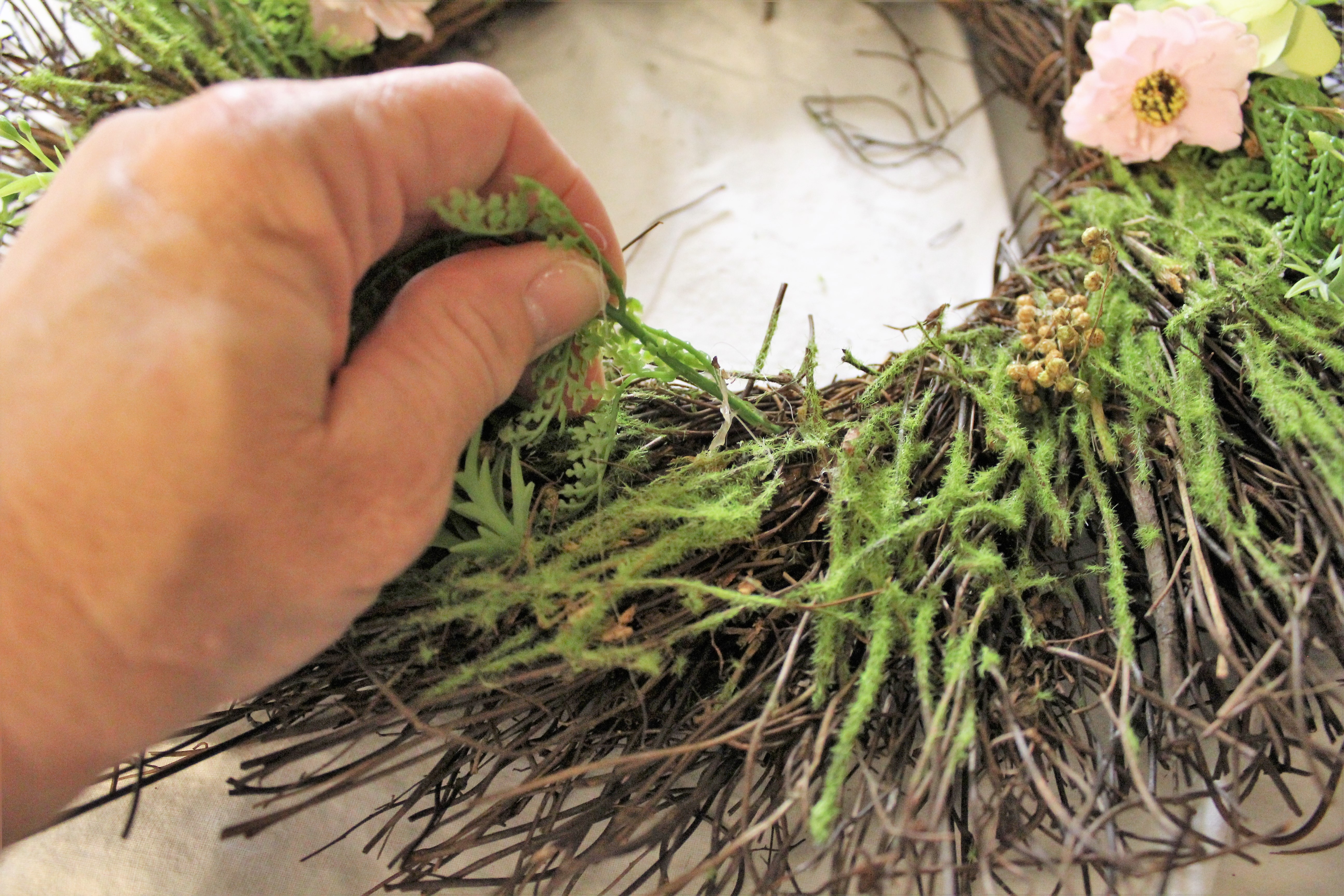 I placed the next bundle the same way and every bundle around the wreath.