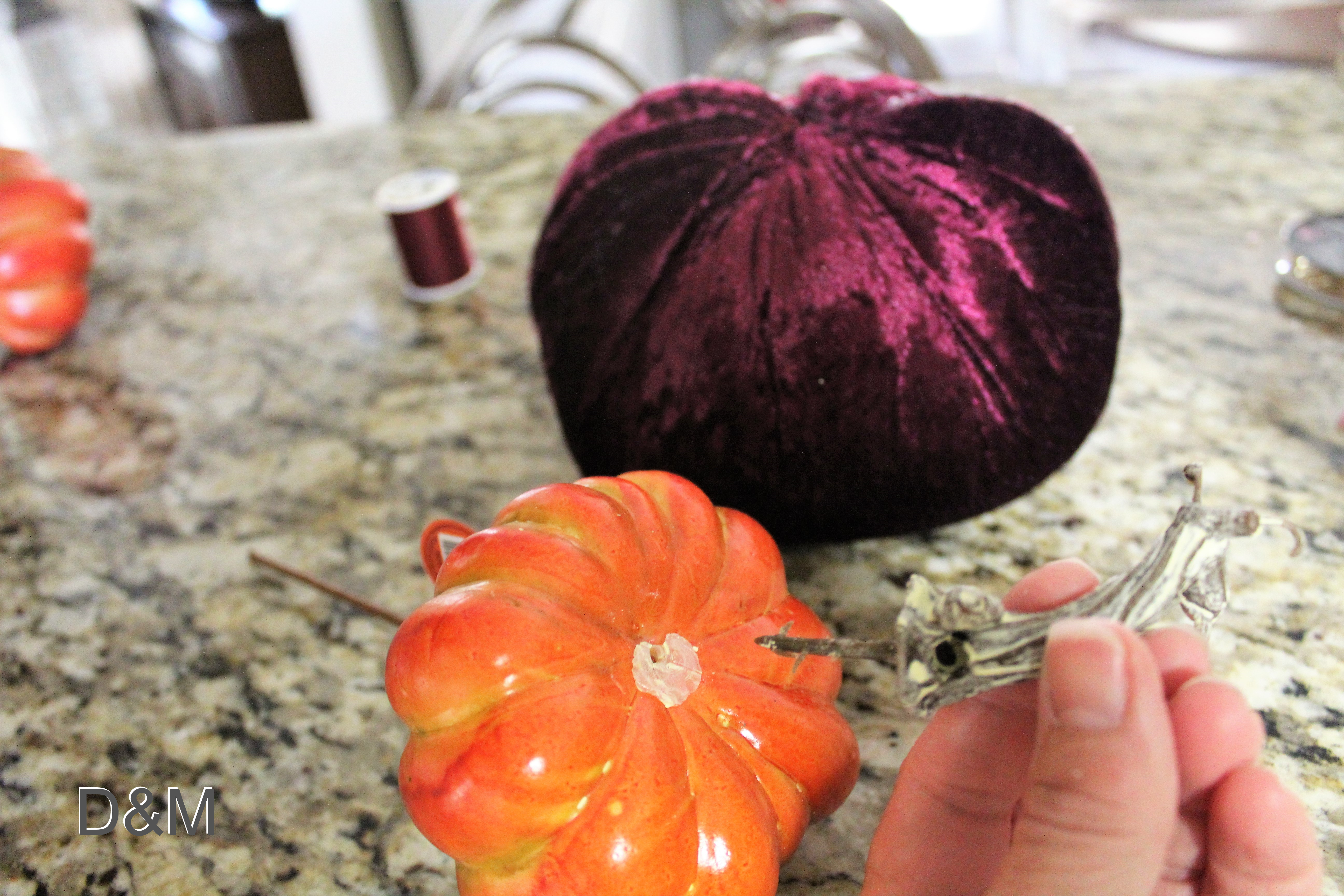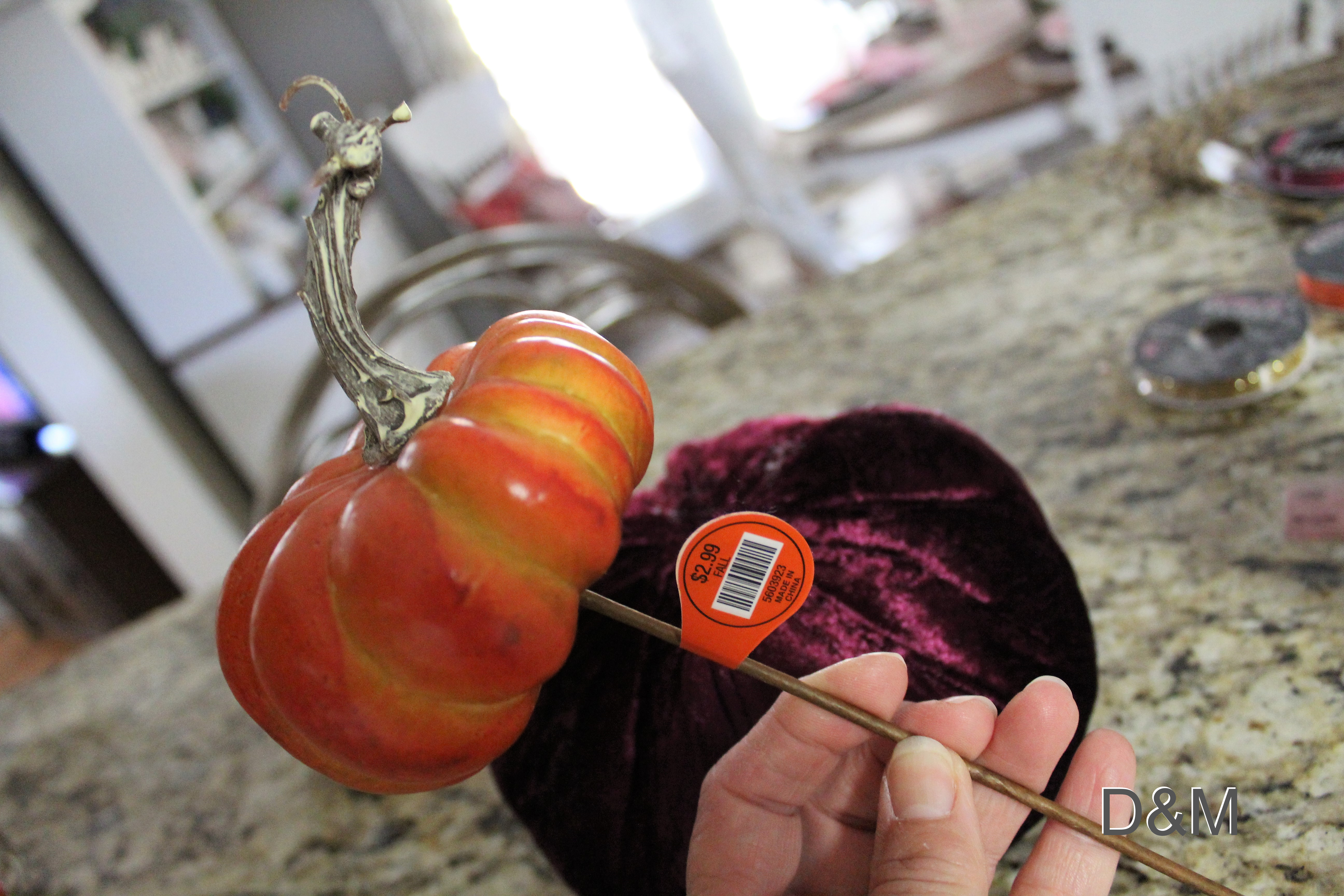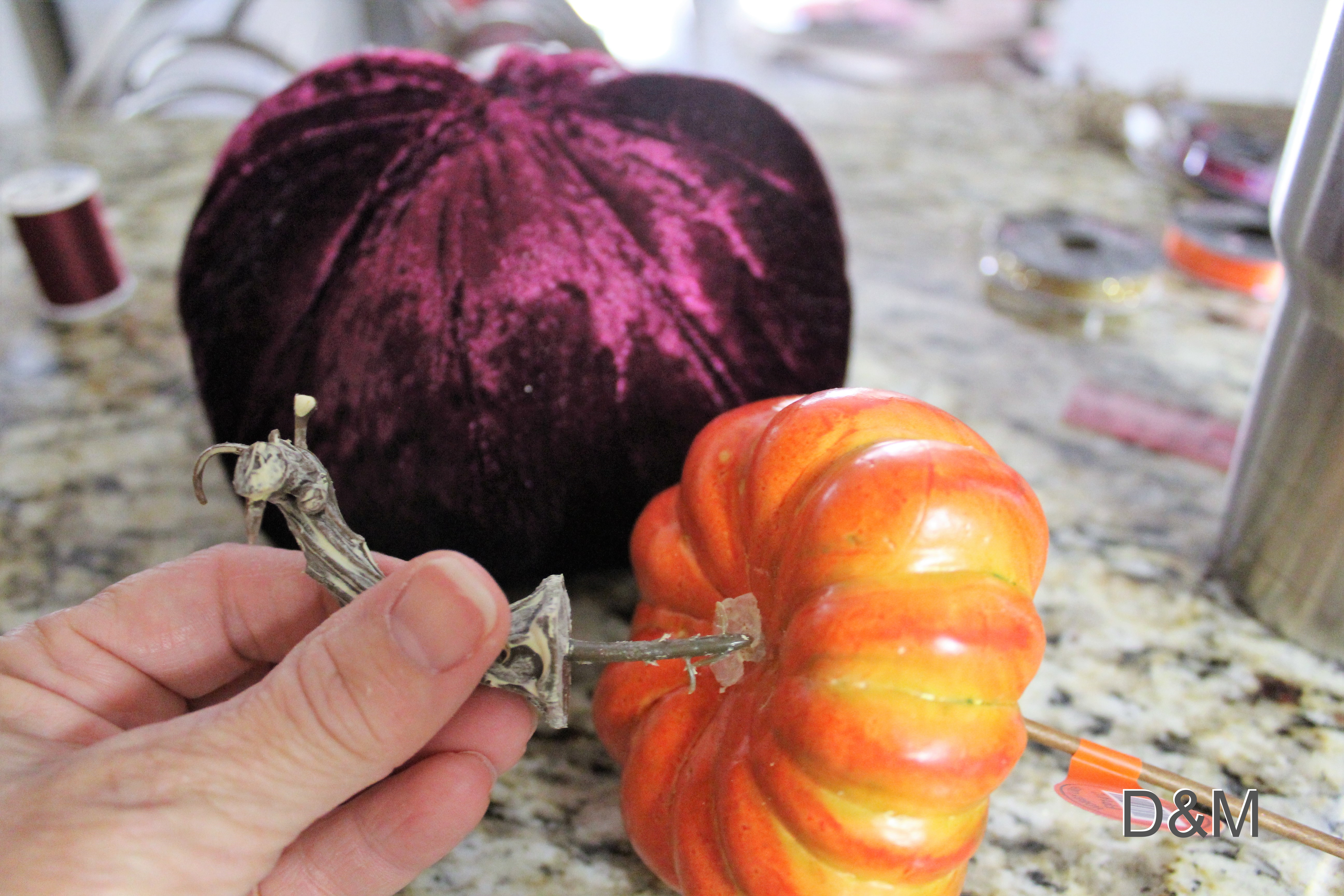 • pumpkin stems.  You could make your own which I will have a tutorial on that coming very soon or you can buy a pumpkin pick like I did for the two I am going to make.
